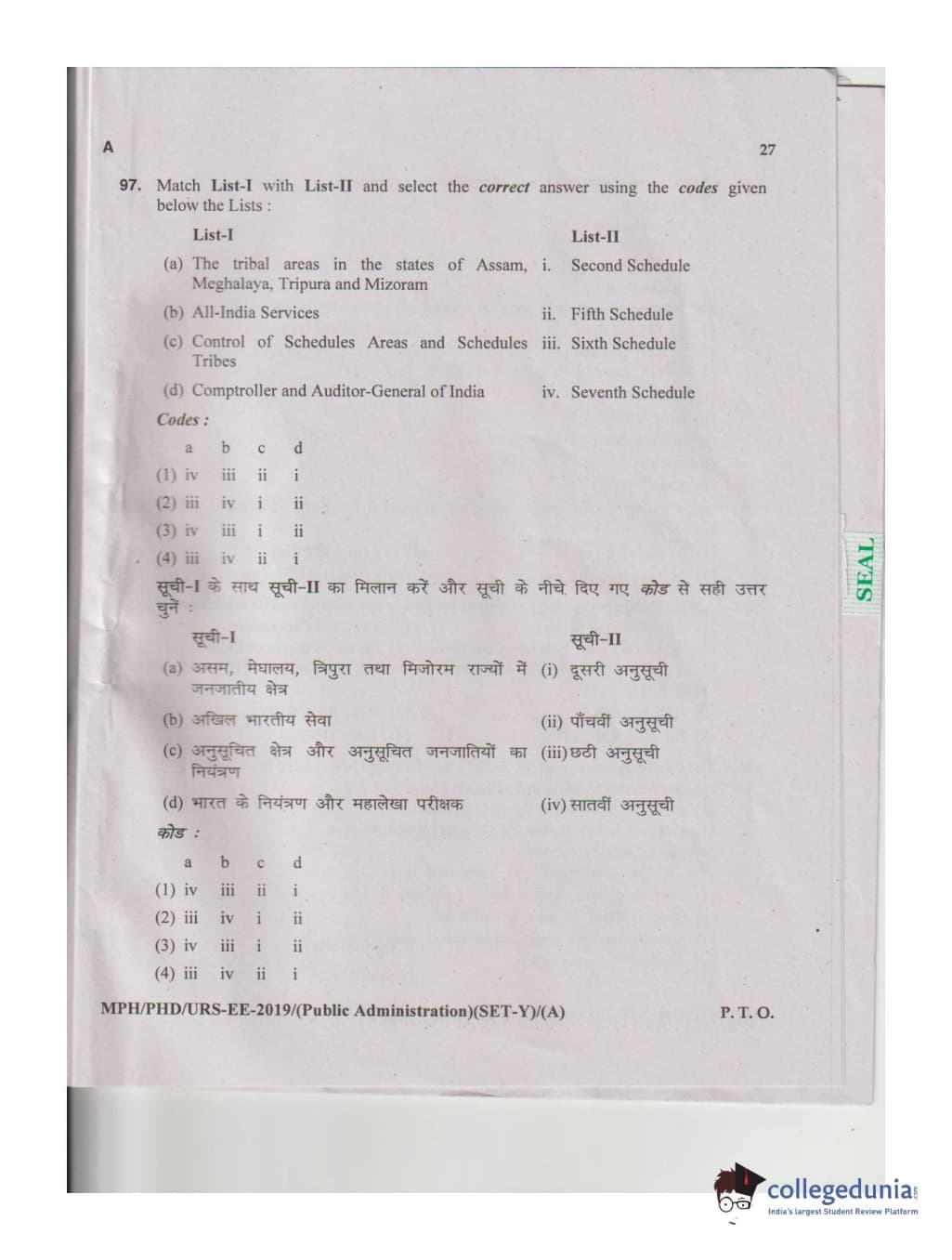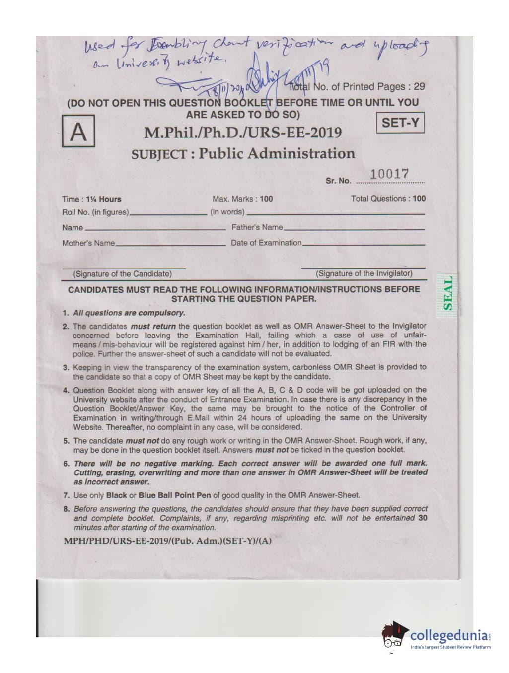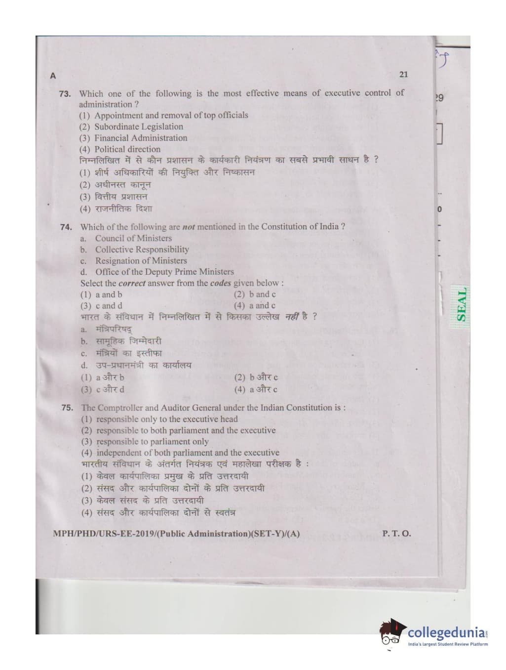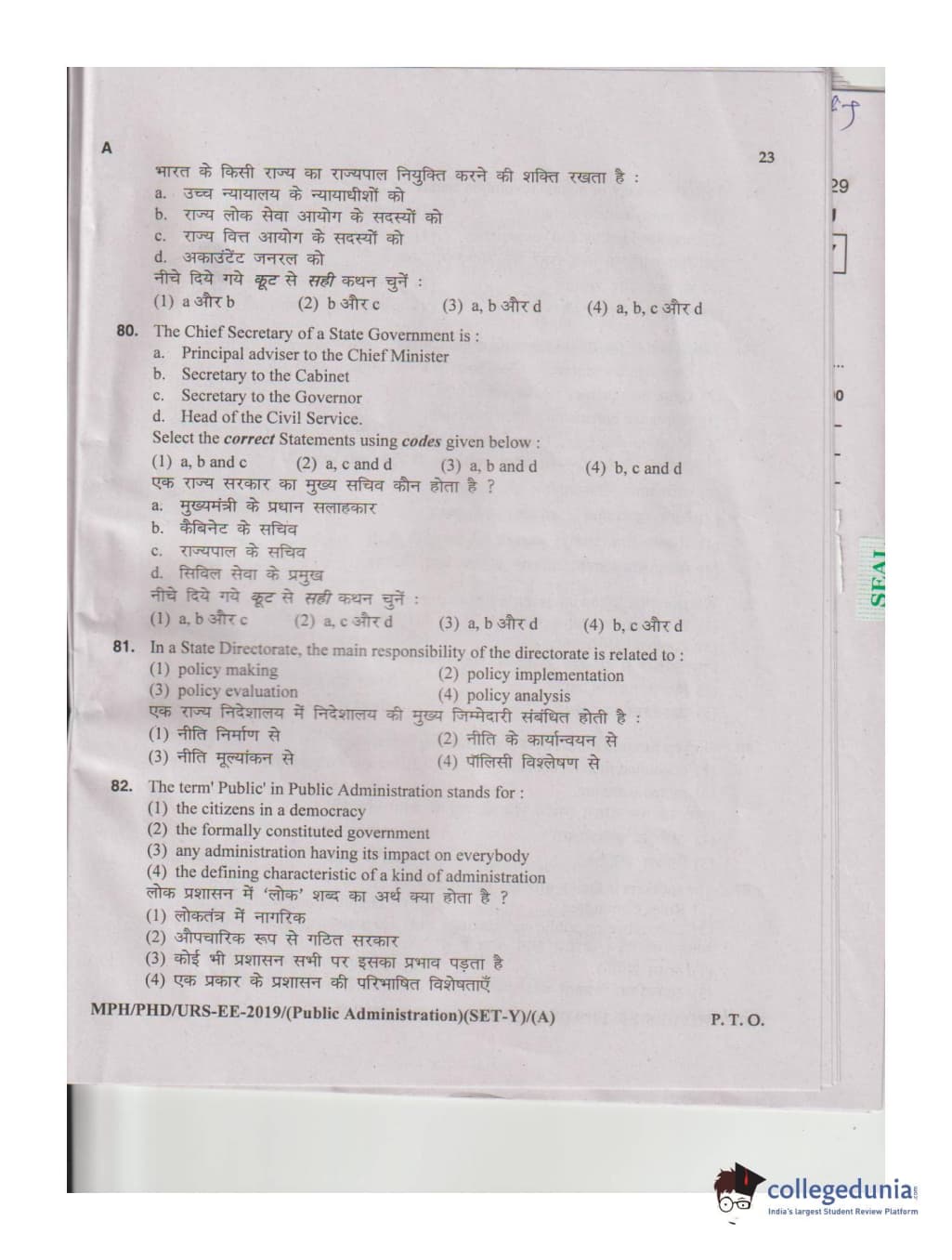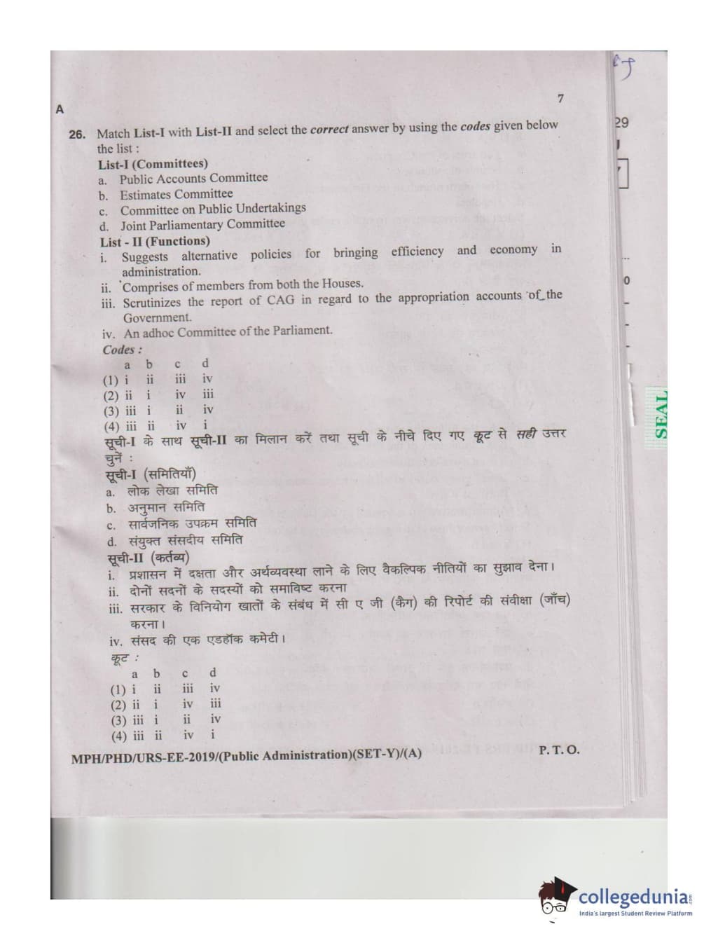 MDUCEE 2019 M.Phil. Public Administration Set A Question Paper with Answer Key PDFs
