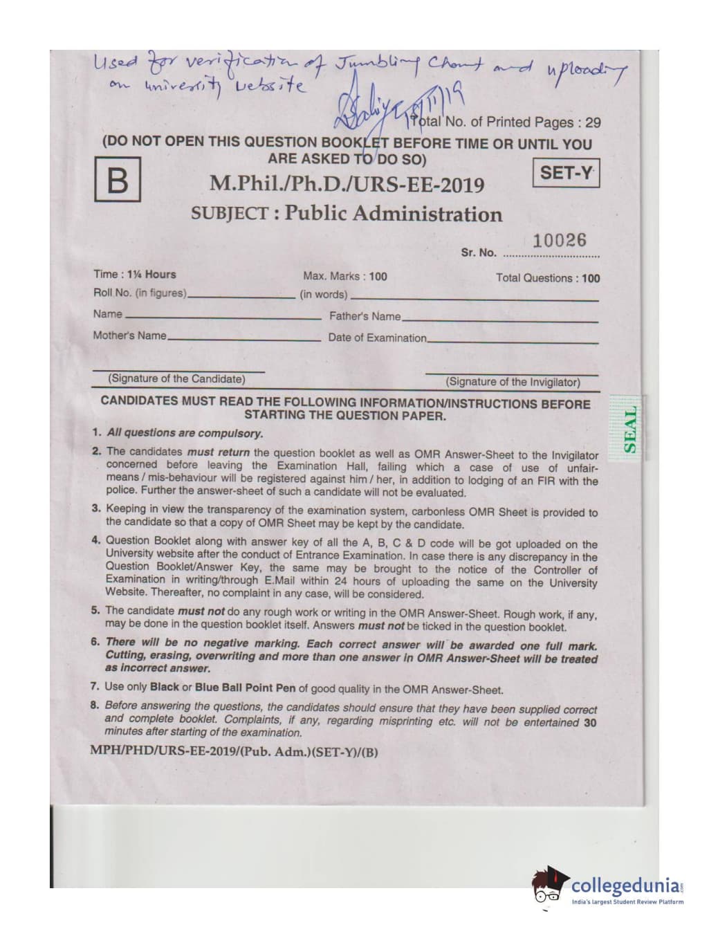 MDUCEE 2019 M.Phil. Public Administration Set B Question paper with answer key pdf is available for download. The exam was successfully organized by Maharishi Dayanand University. The question paper comprised a total of 100 questions.