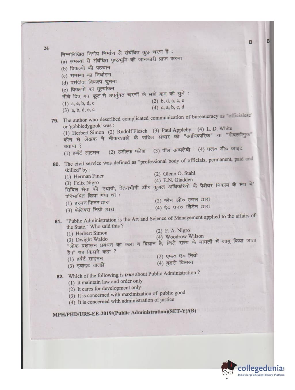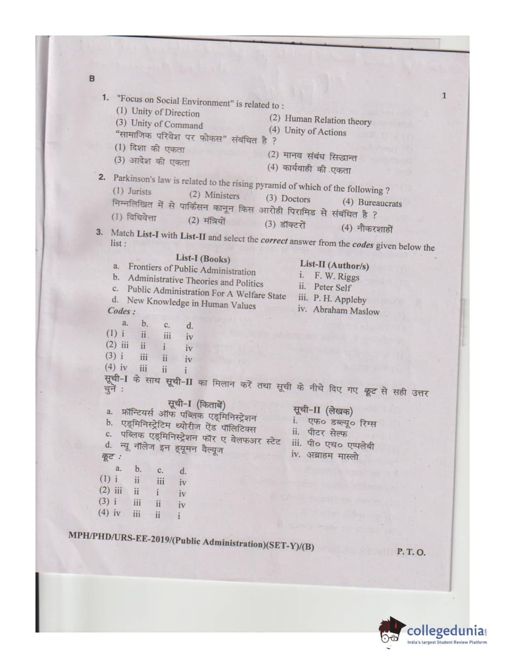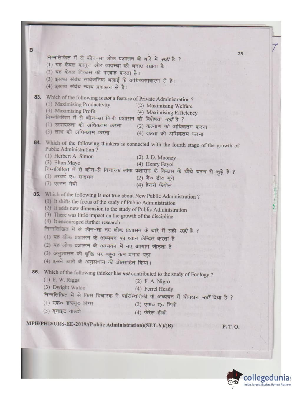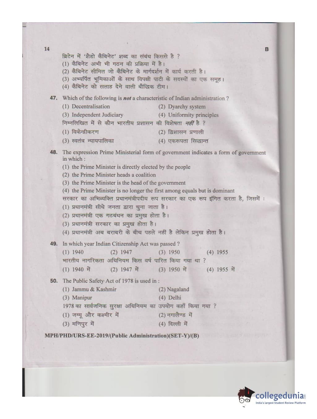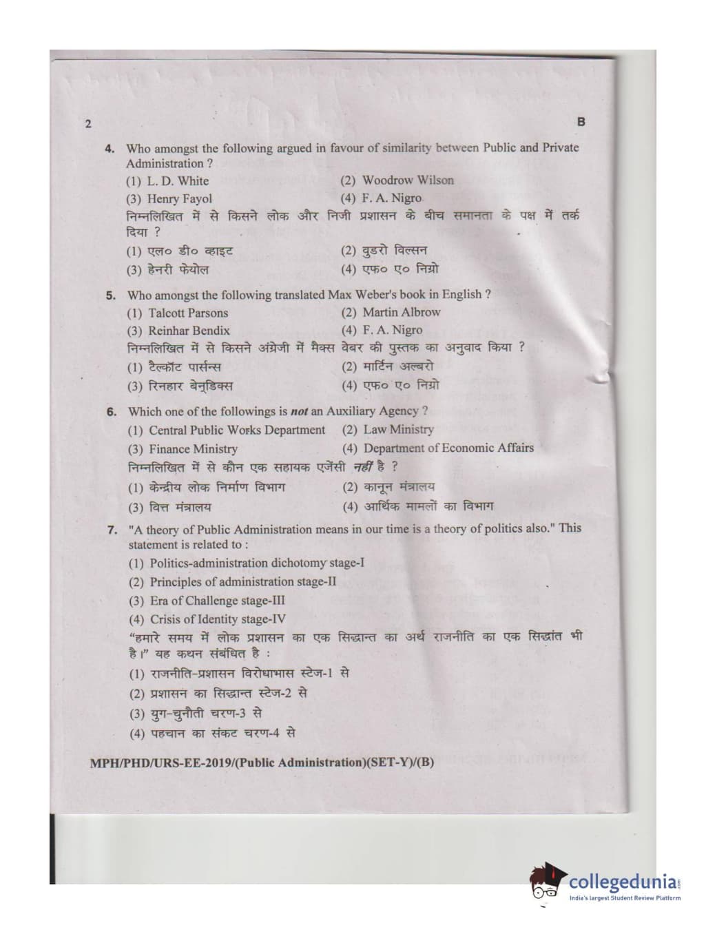 MDUCEE 2019 M.Phil. Public Administration Set B Question Paper with Answer Key PDFs
