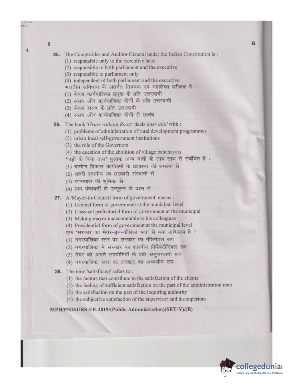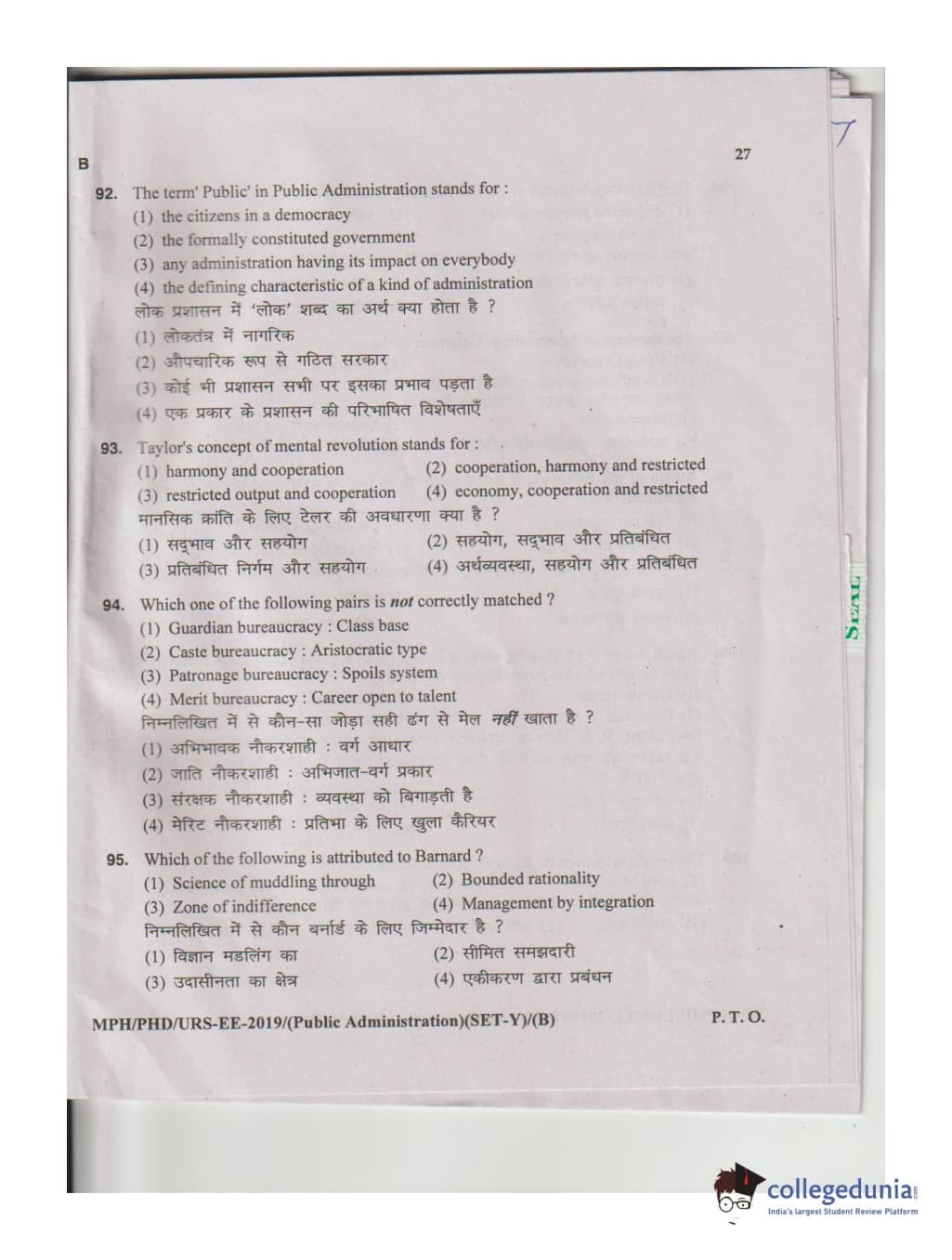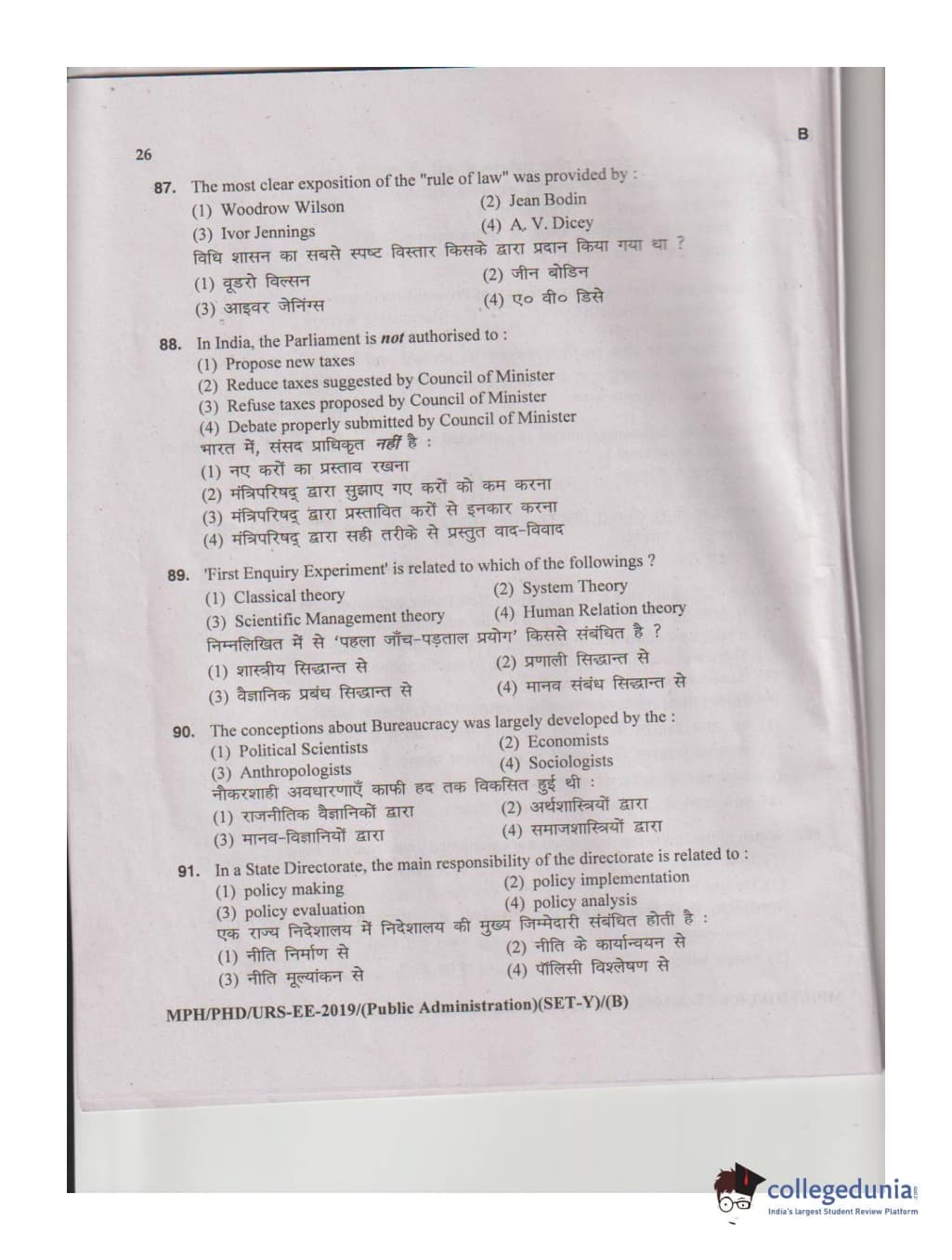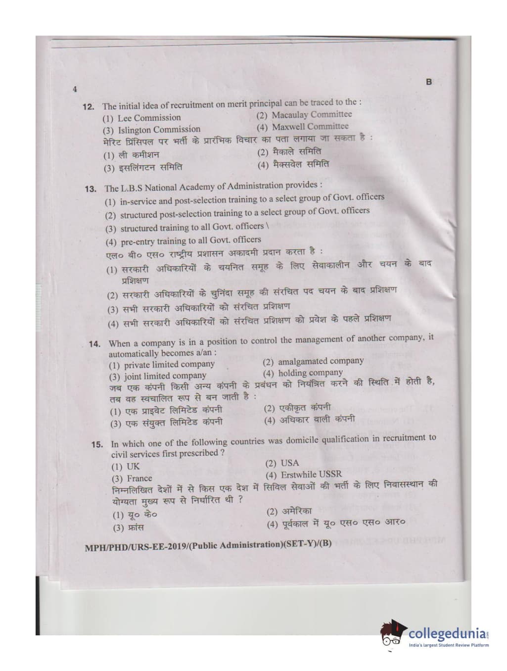 MDUCEE 2019 M.Phil. Public Administration Set B Question Paper with Answer Key PDFs