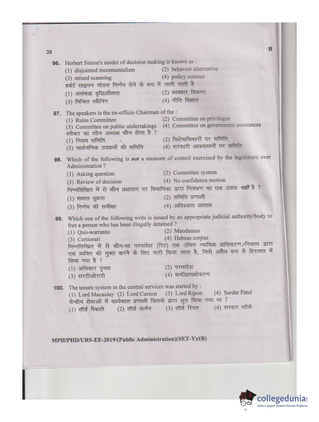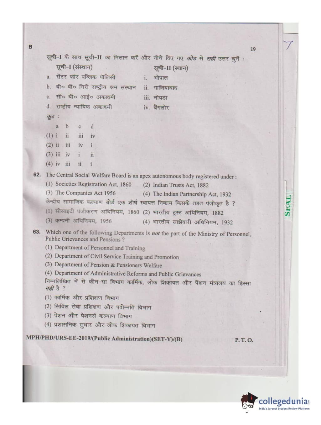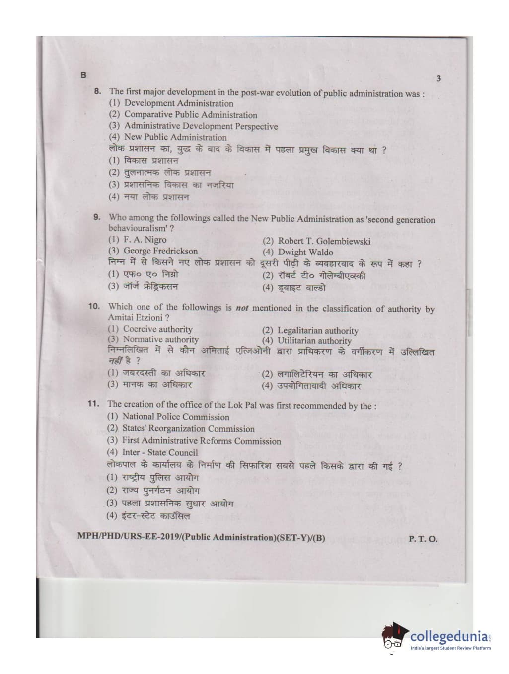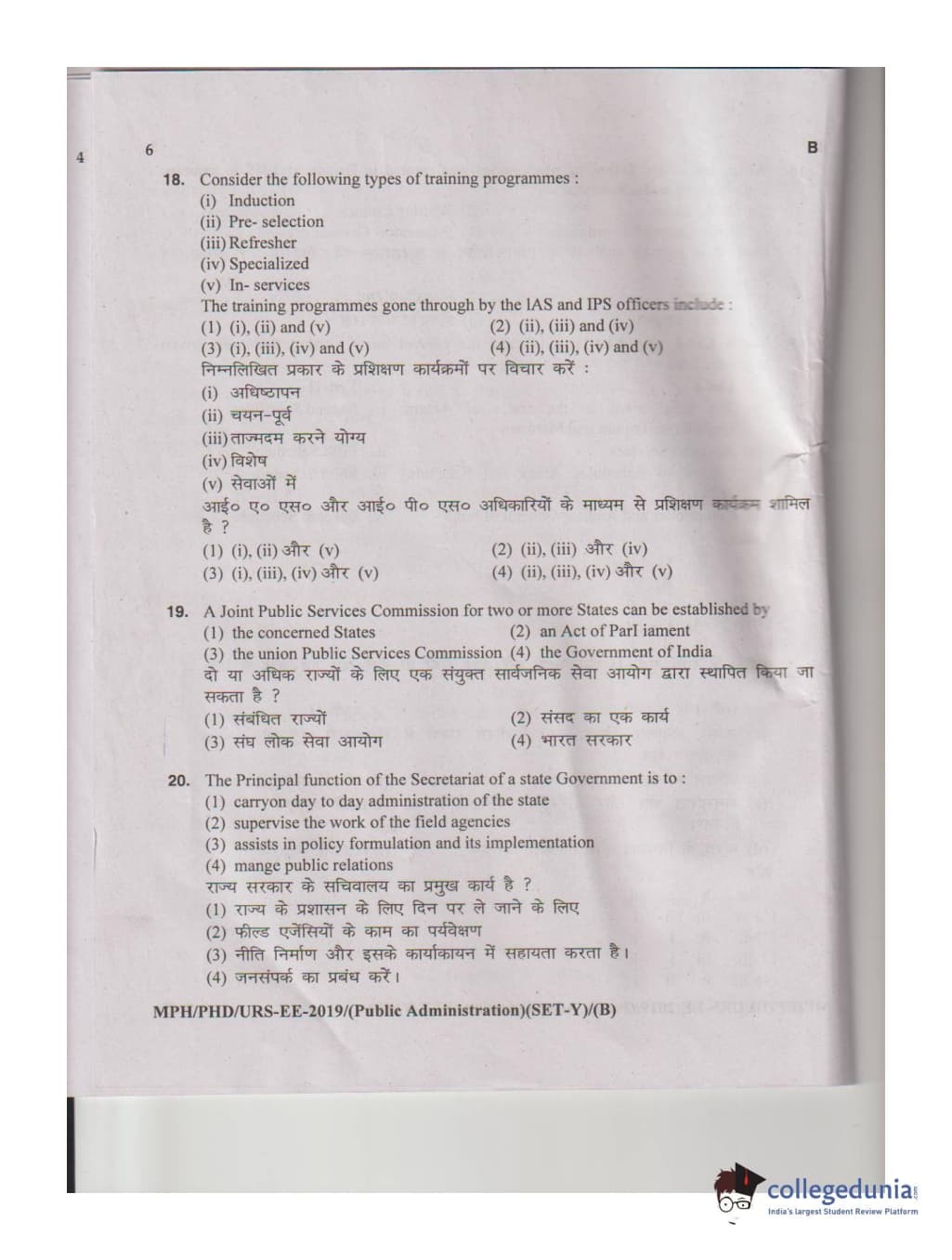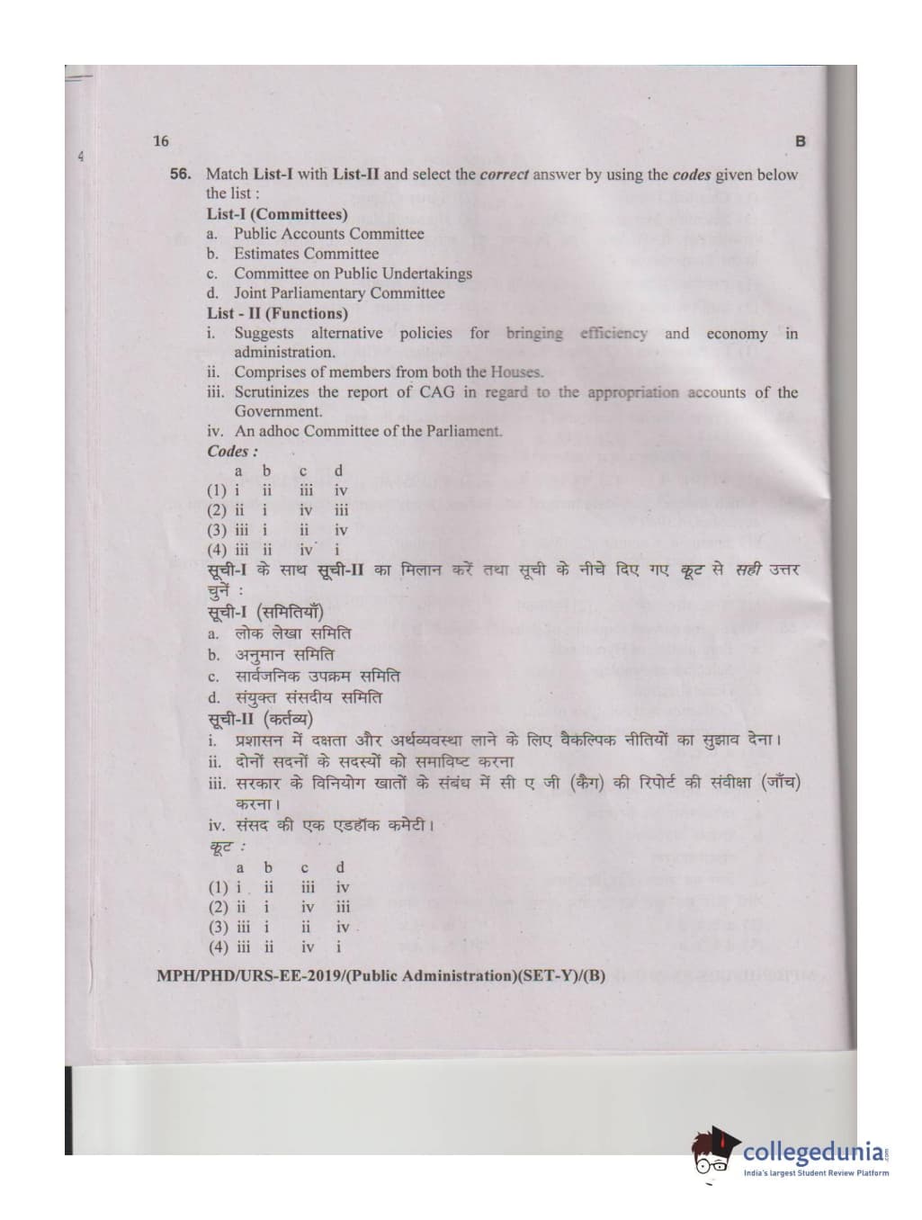 MDUCEE 2019 M.Phil. Public Administration Set B Question Paper with Answer Key PDFs