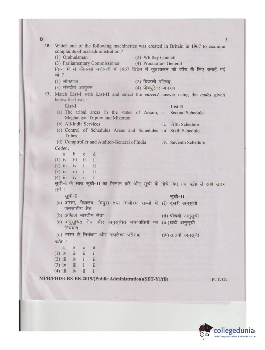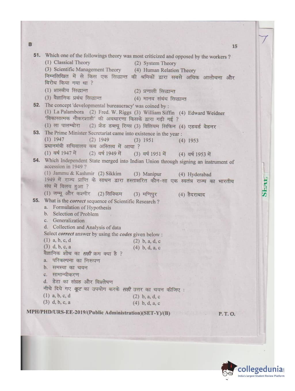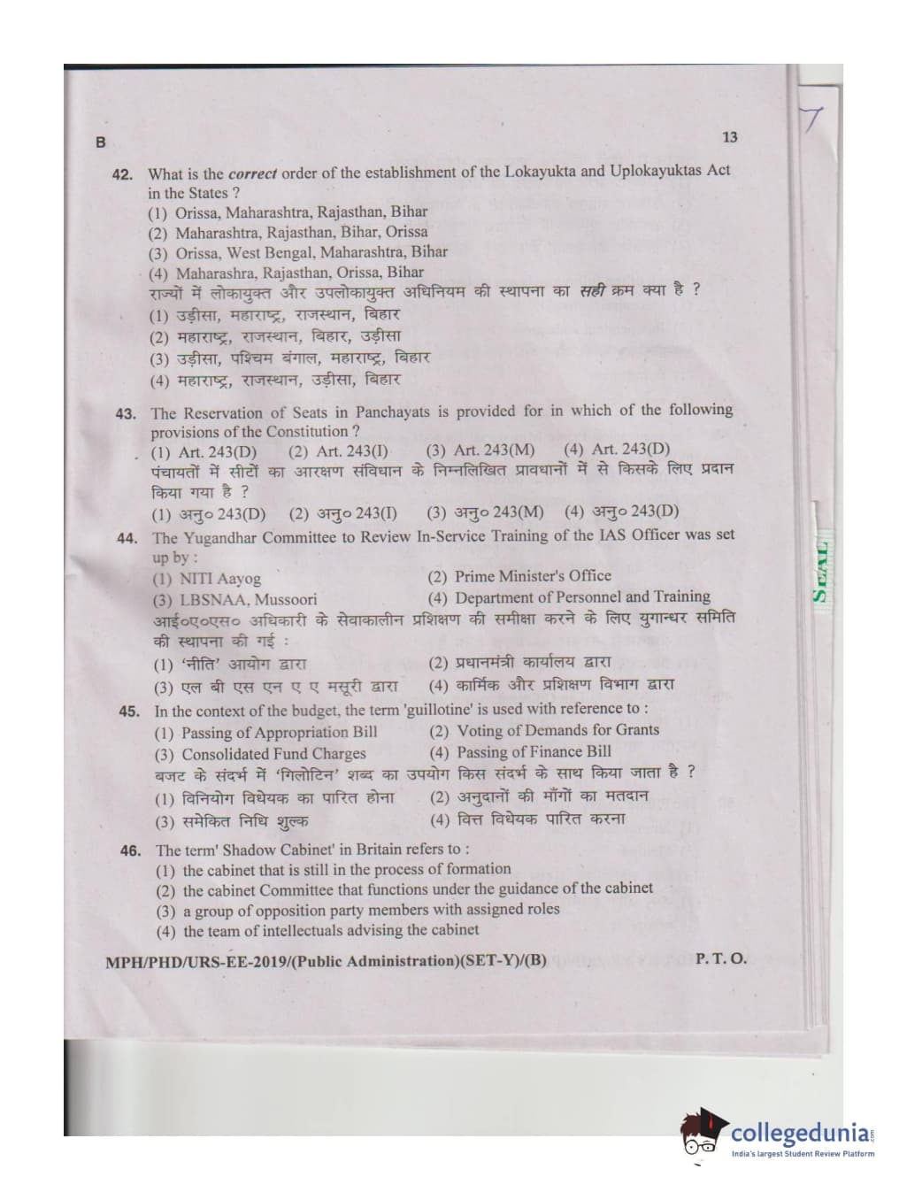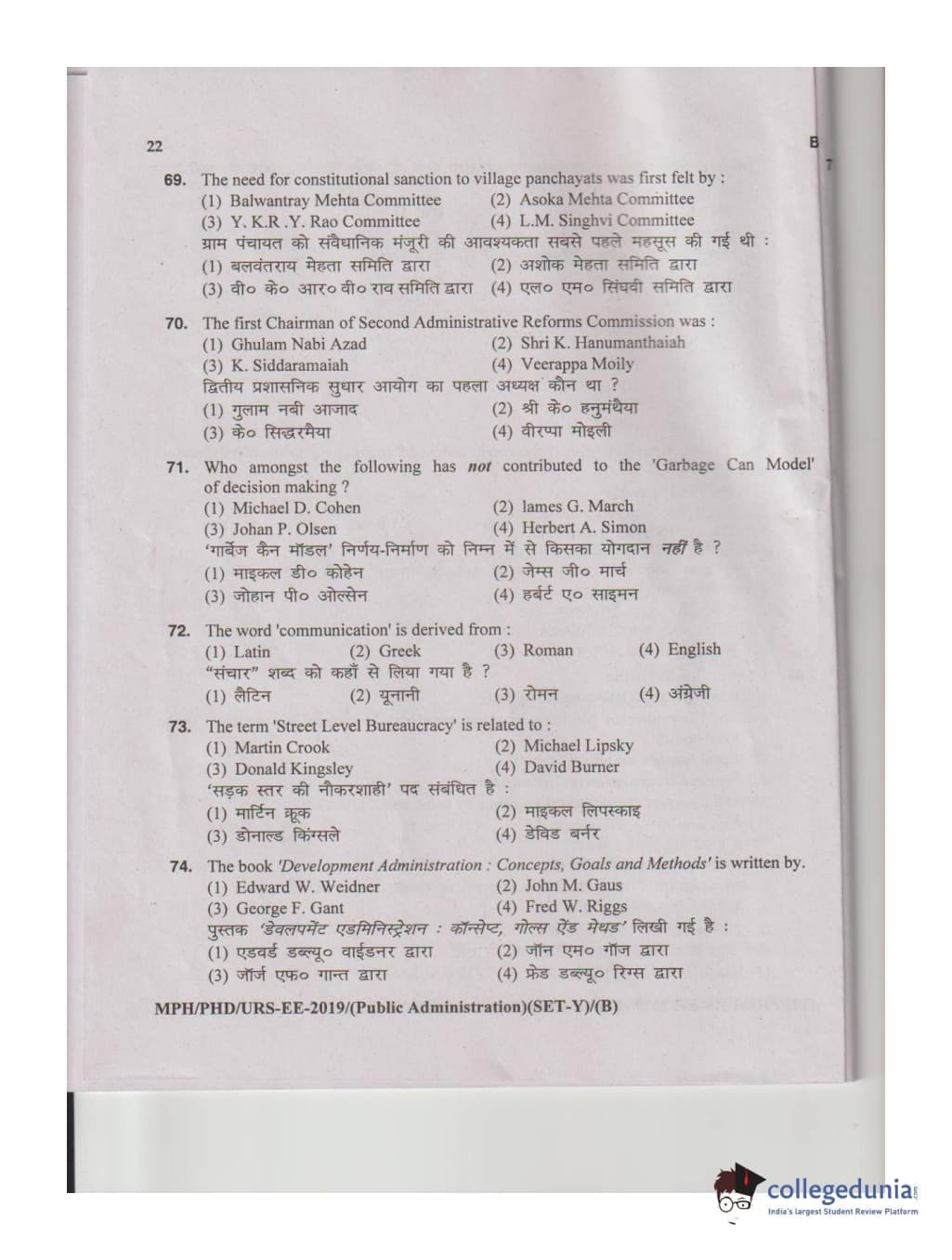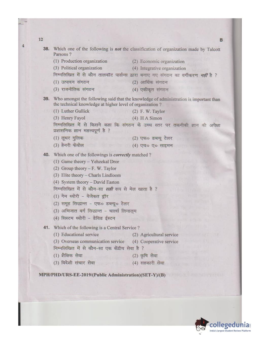 MDUCEE 2019 M.Phil. Public Administration Set B Question Paper with Answer Key PDFs