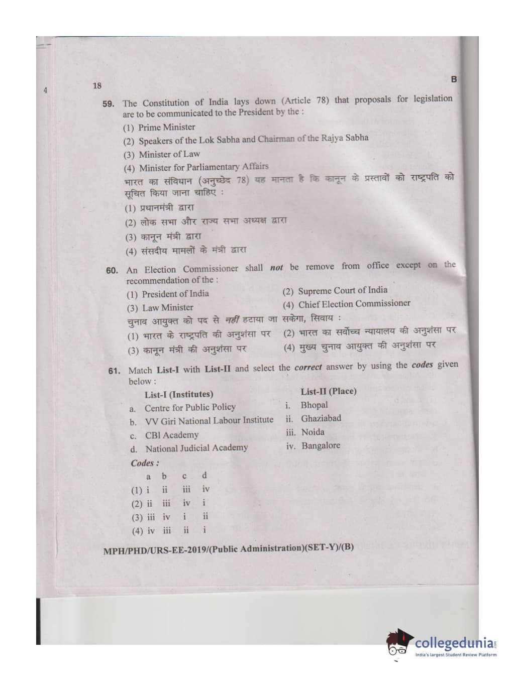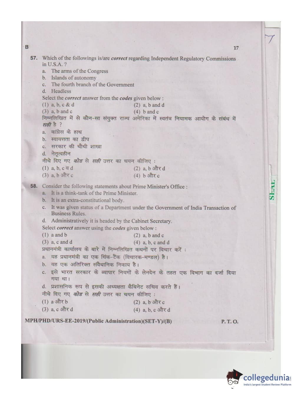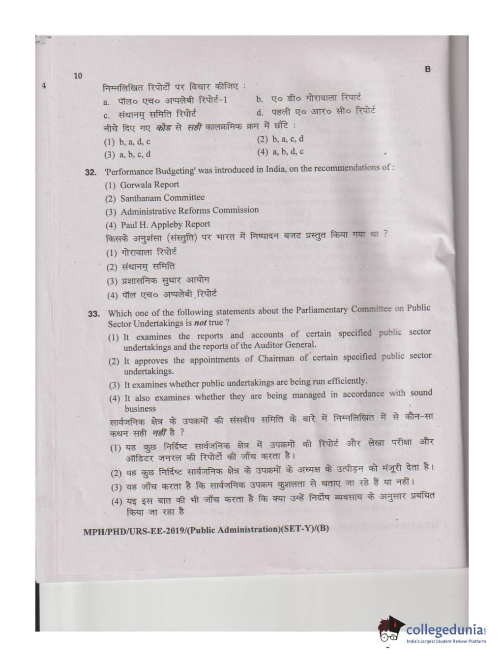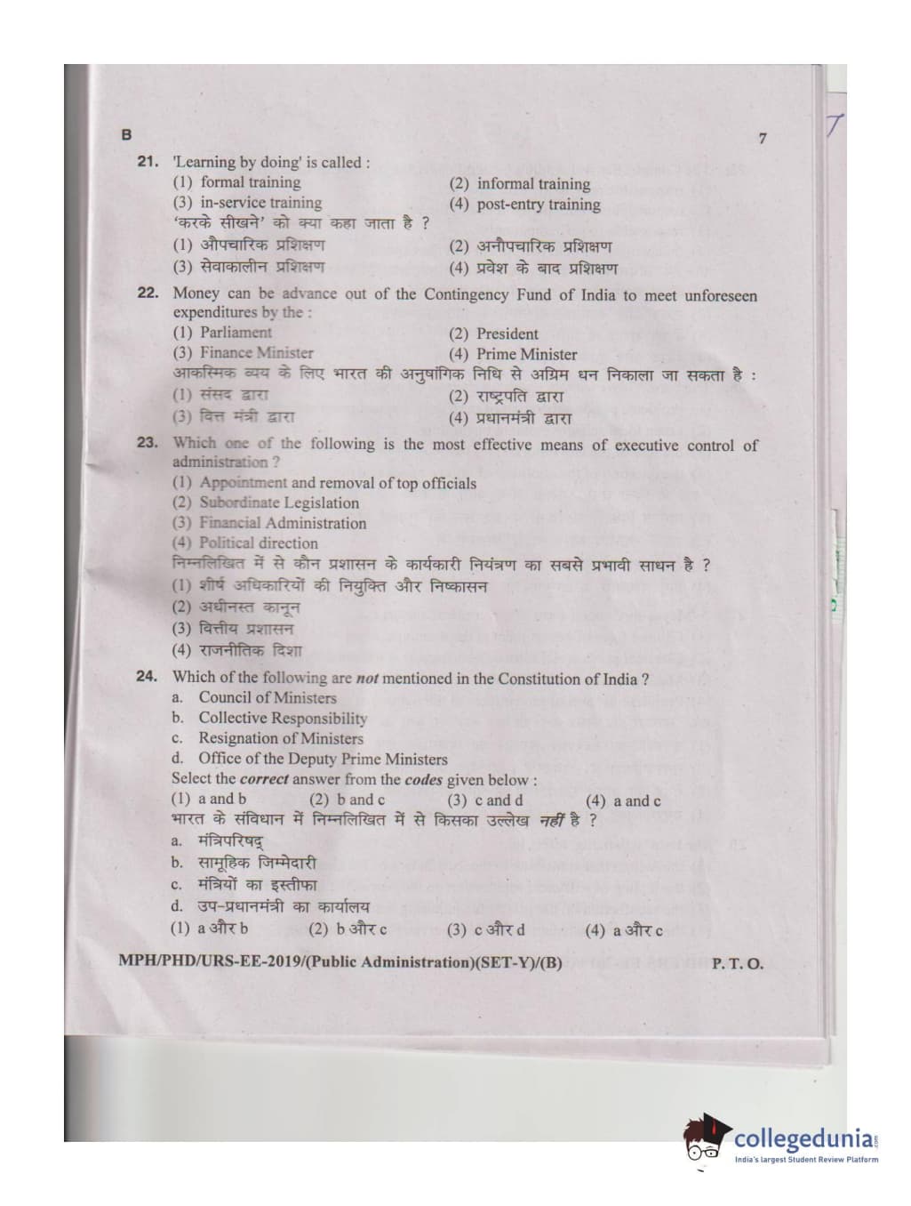 MDUCEE 2019 M.Phil. Public Administration Set B Question Paper with Answer Key PDFs