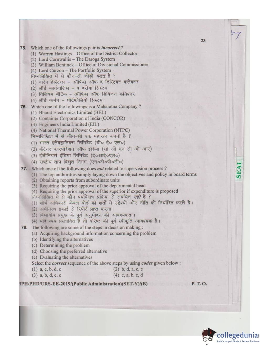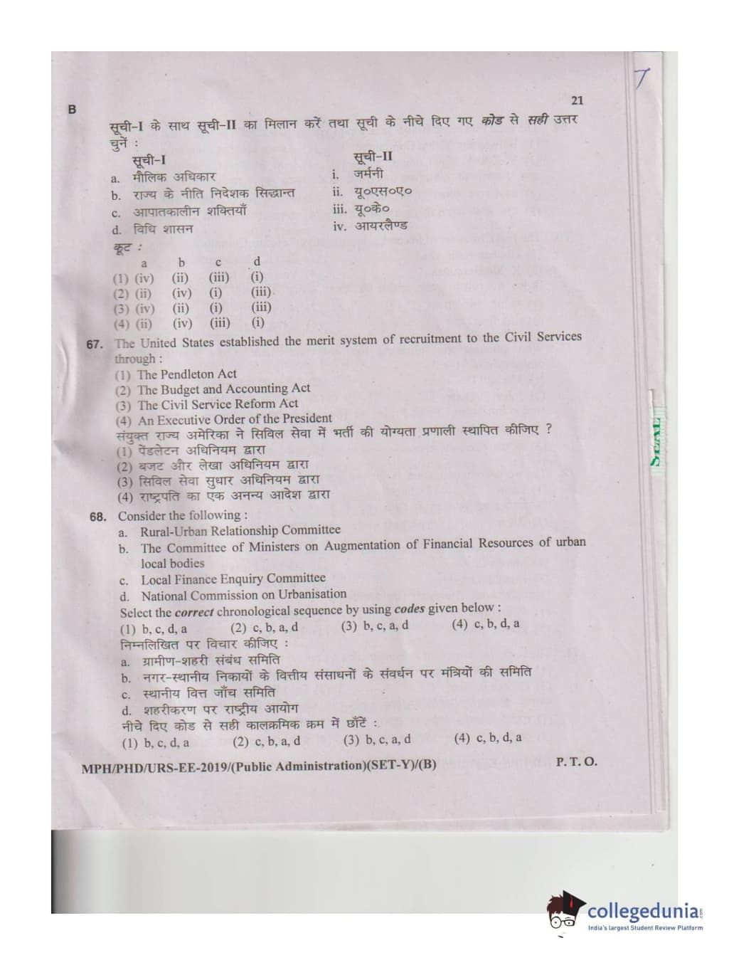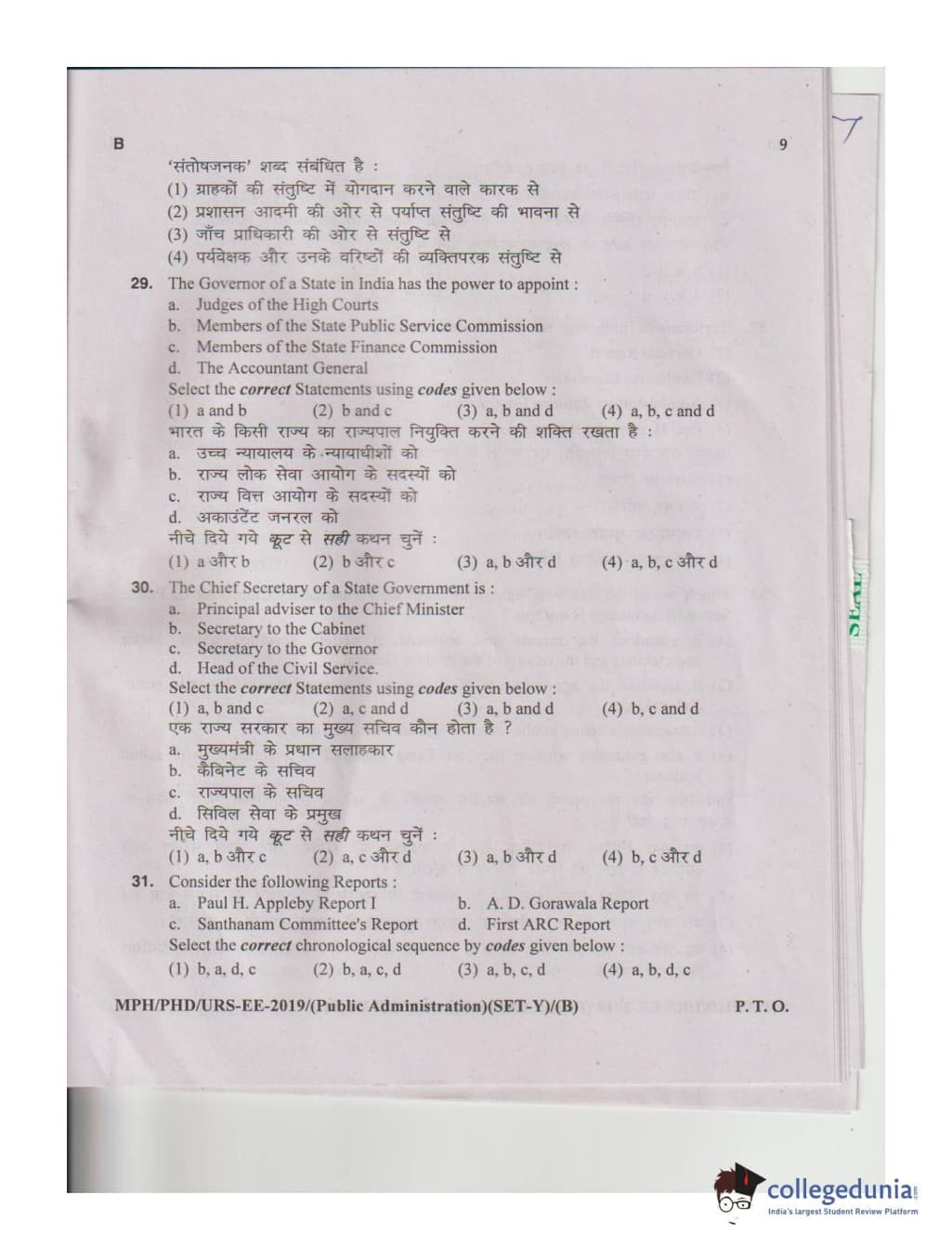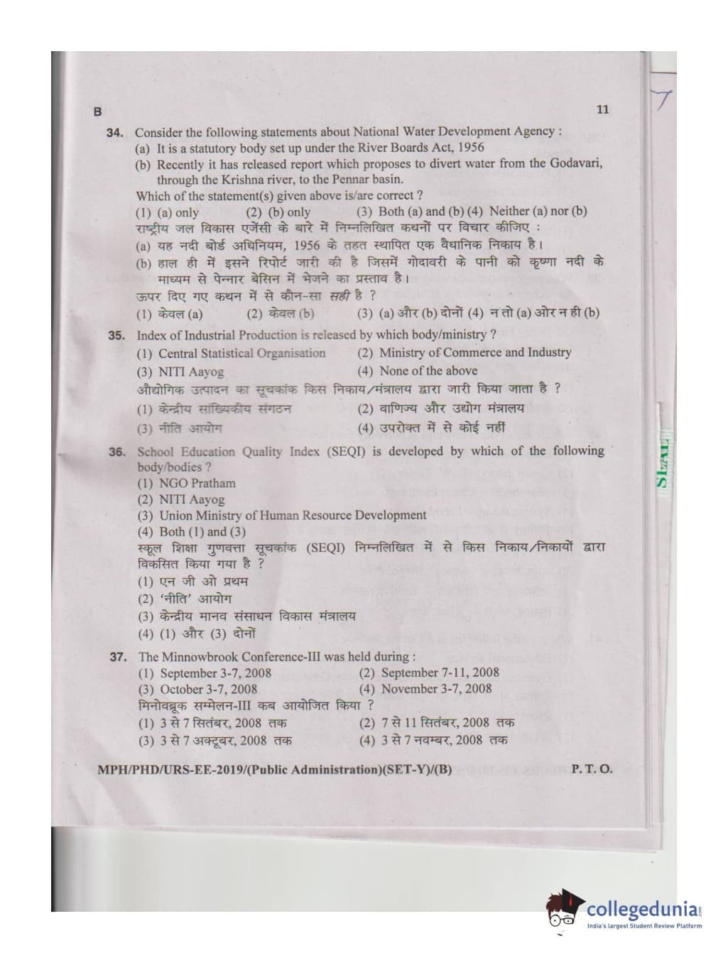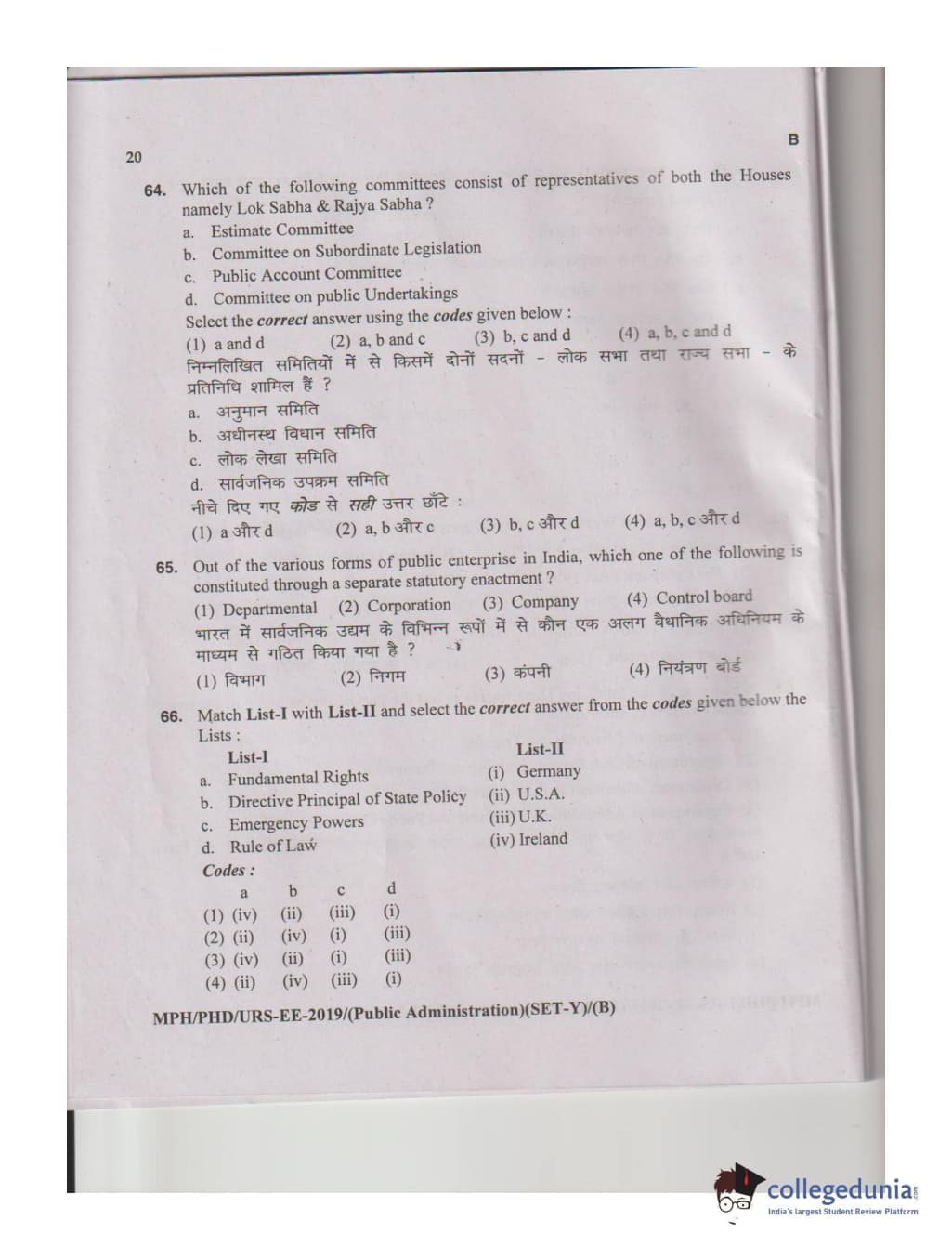 MDUCEE 2019 M.Phil. Public Administration Set B Question Paper with Answer Key PDFs