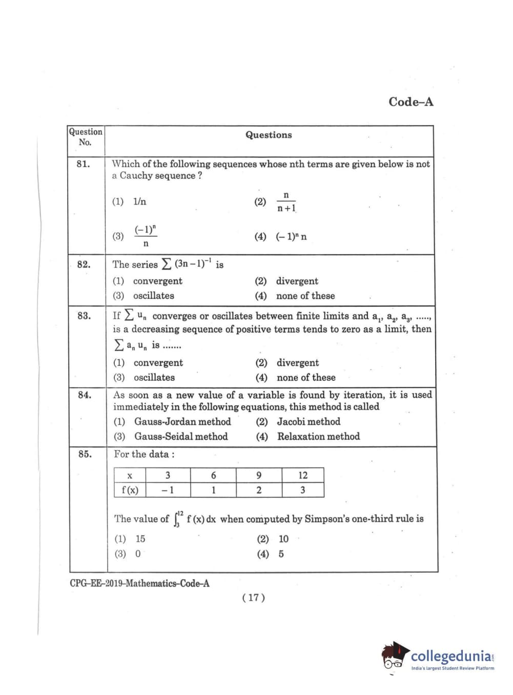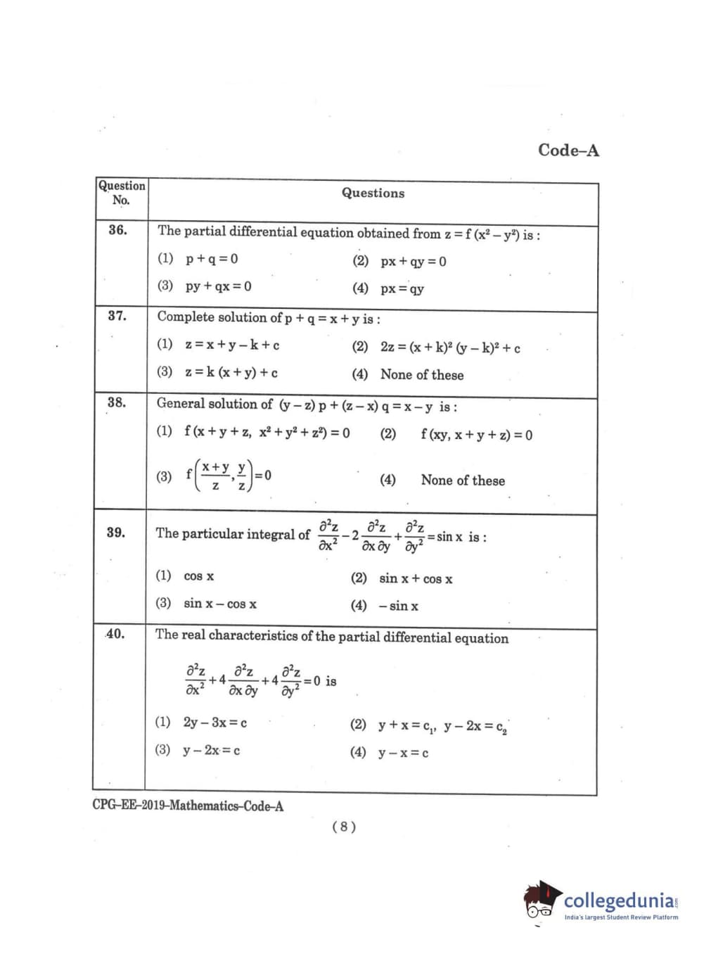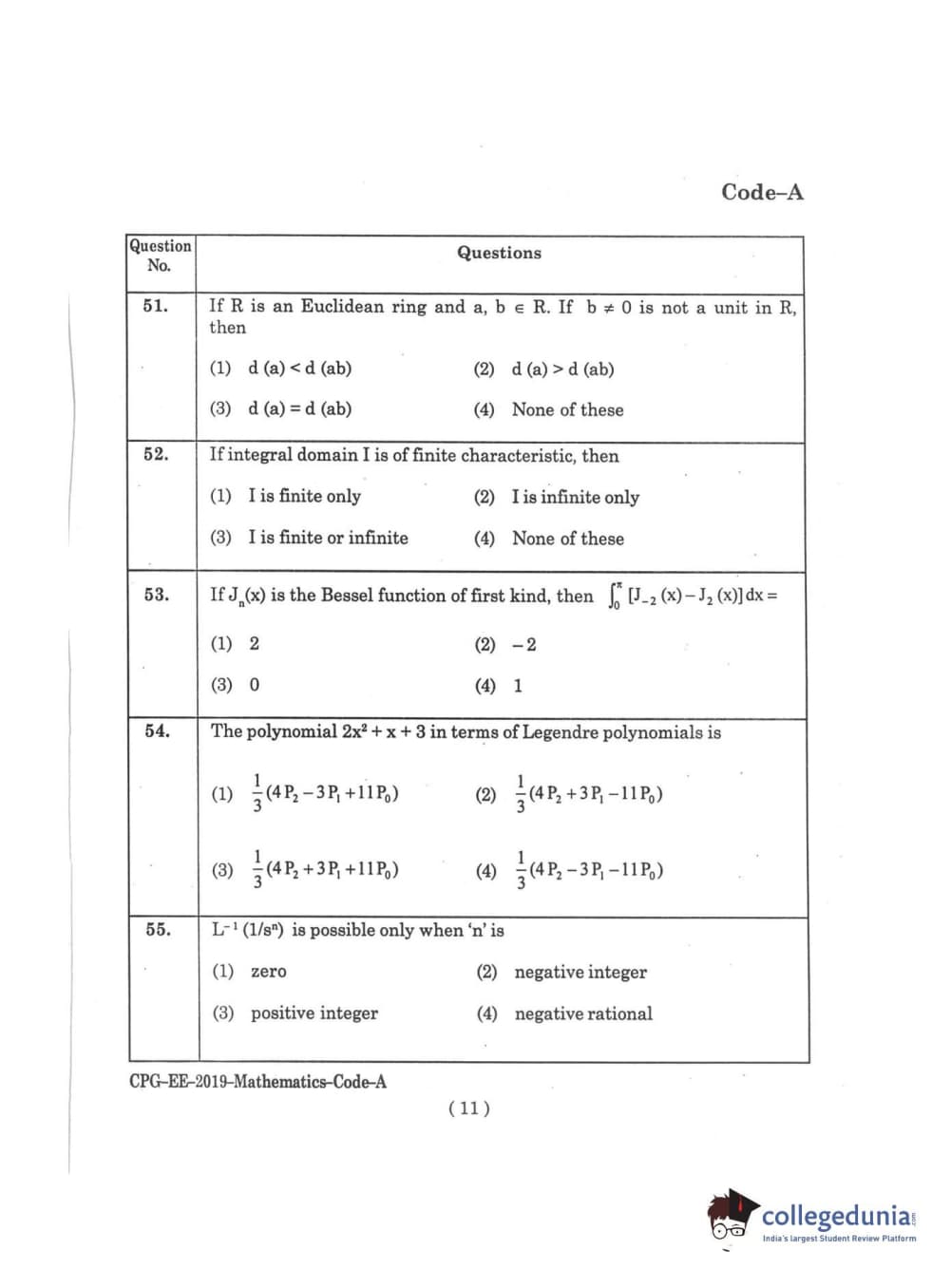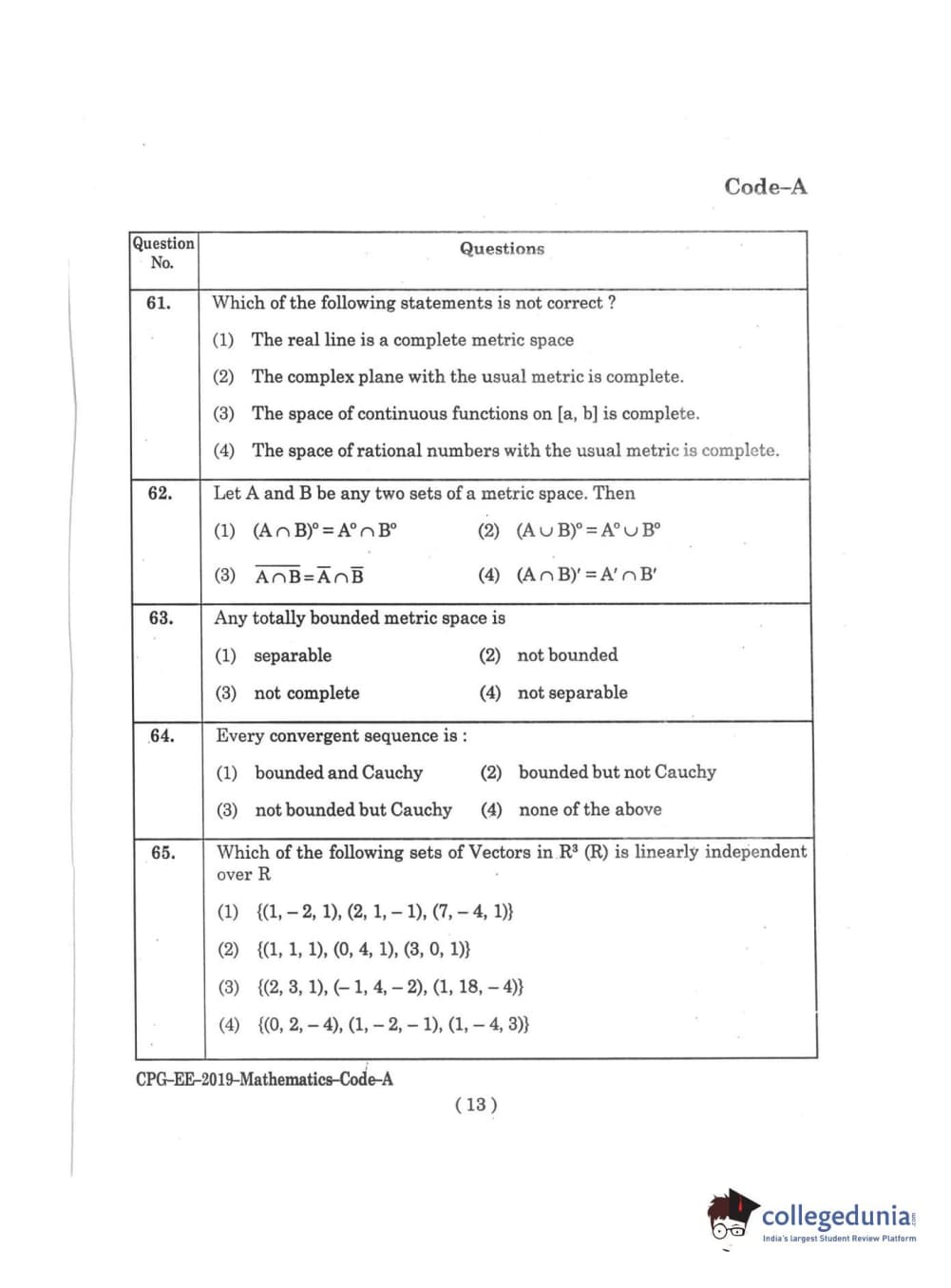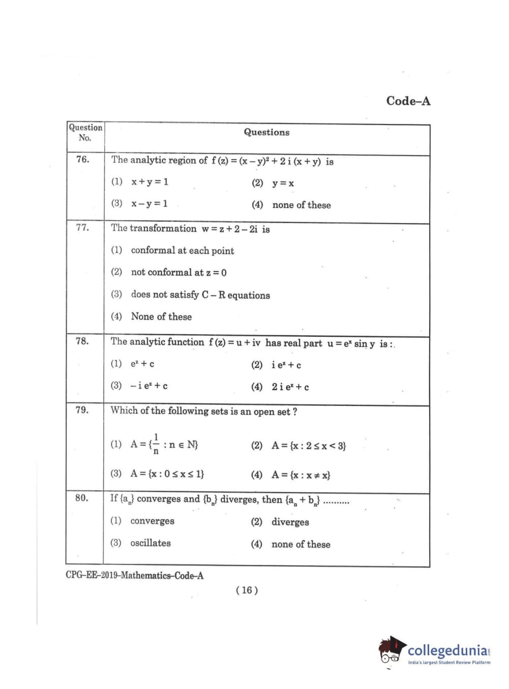 | MDUCEE 2019 M.Sc. Mathematics Set A Question Paper PDF | MDUCEE 2019 M.Sc. Mathematics Set A Answer Key PDF |