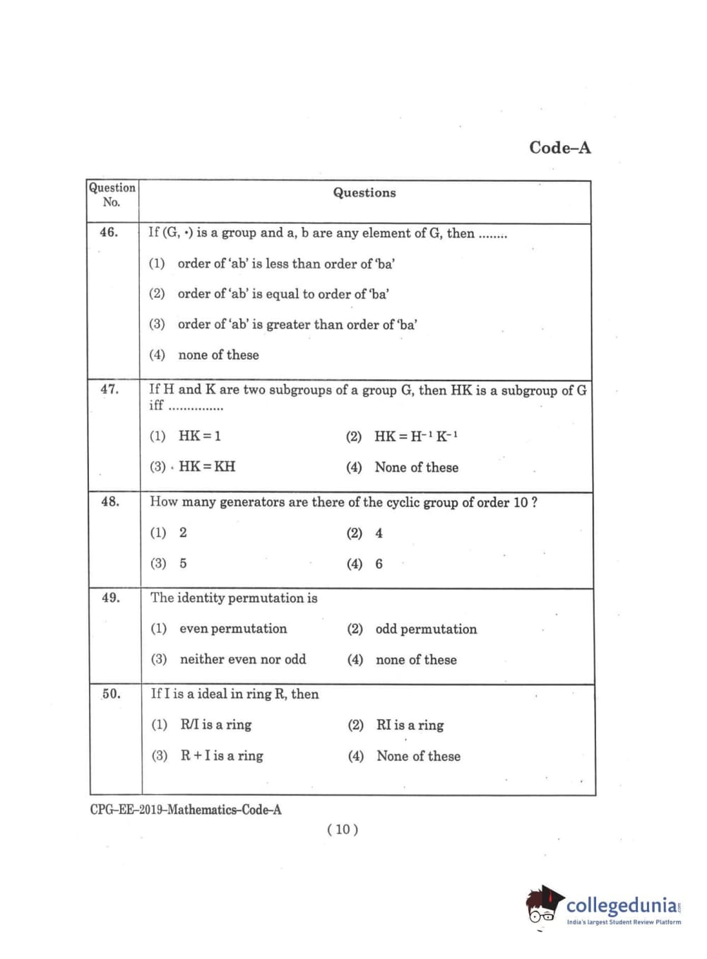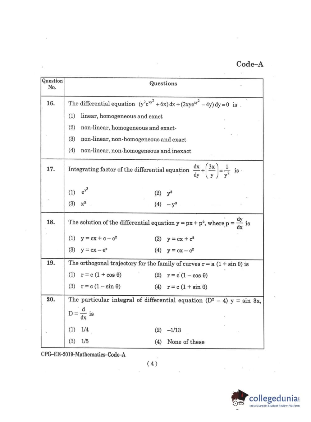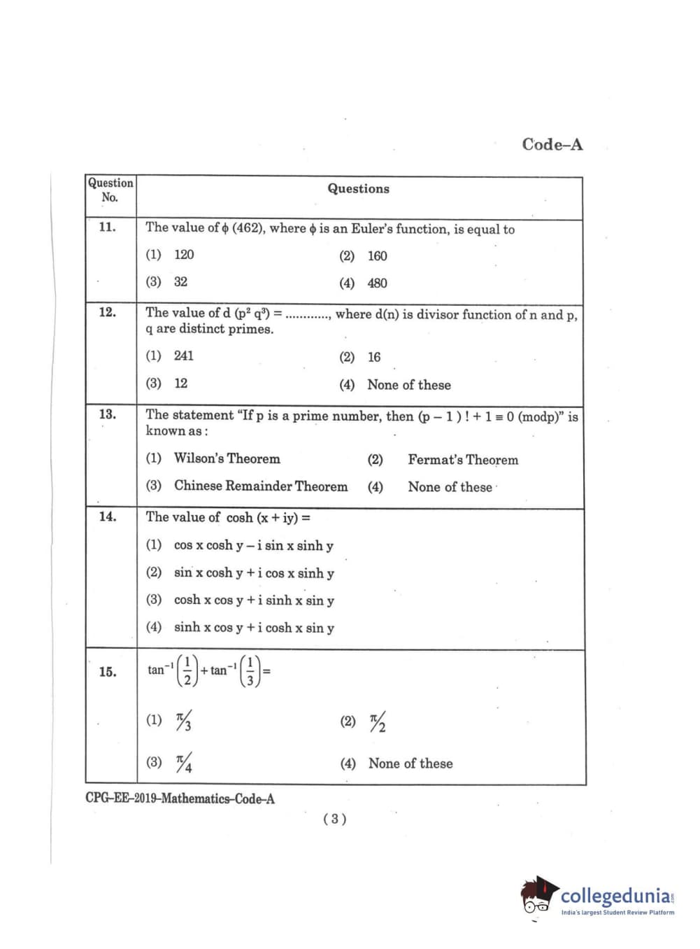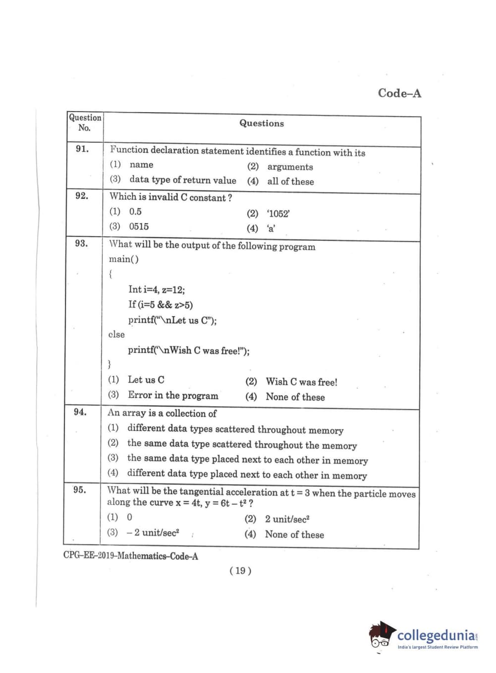 | MDUCEE 2019 M.Sc. Mathematics Set A Question Paper PDF | MDUCEE 2019 M.Sc. Mathematics Set A Answer Key PDF |