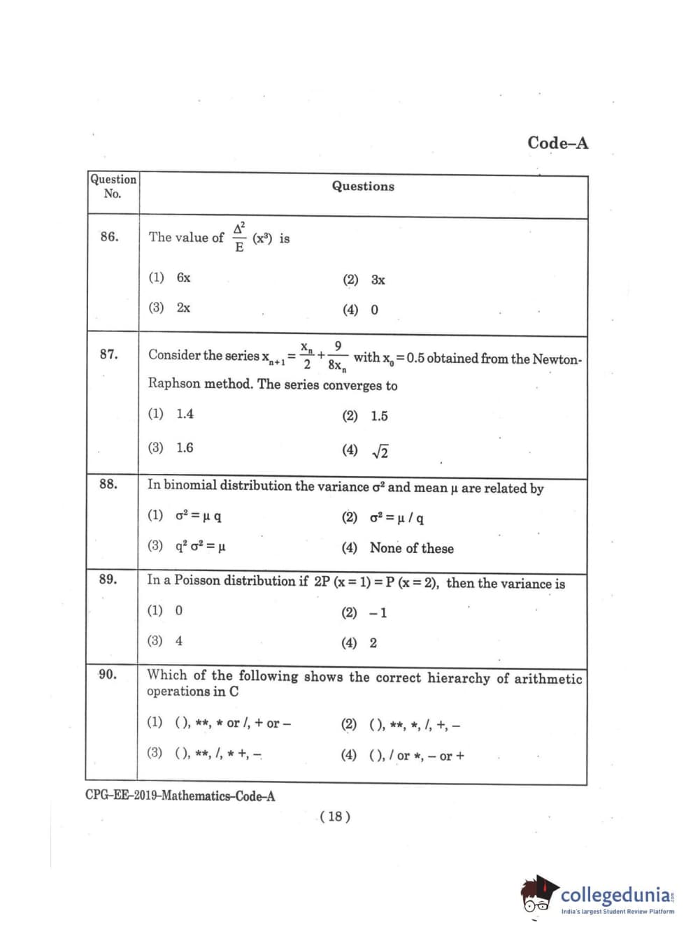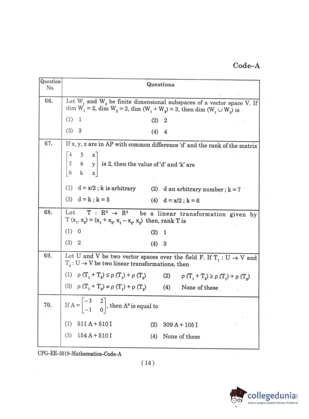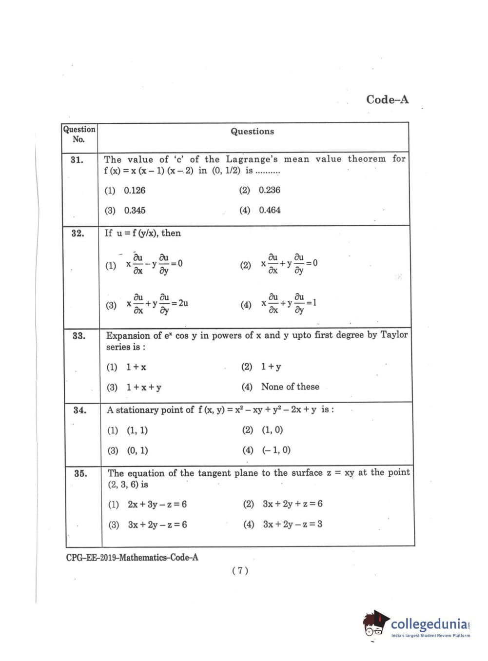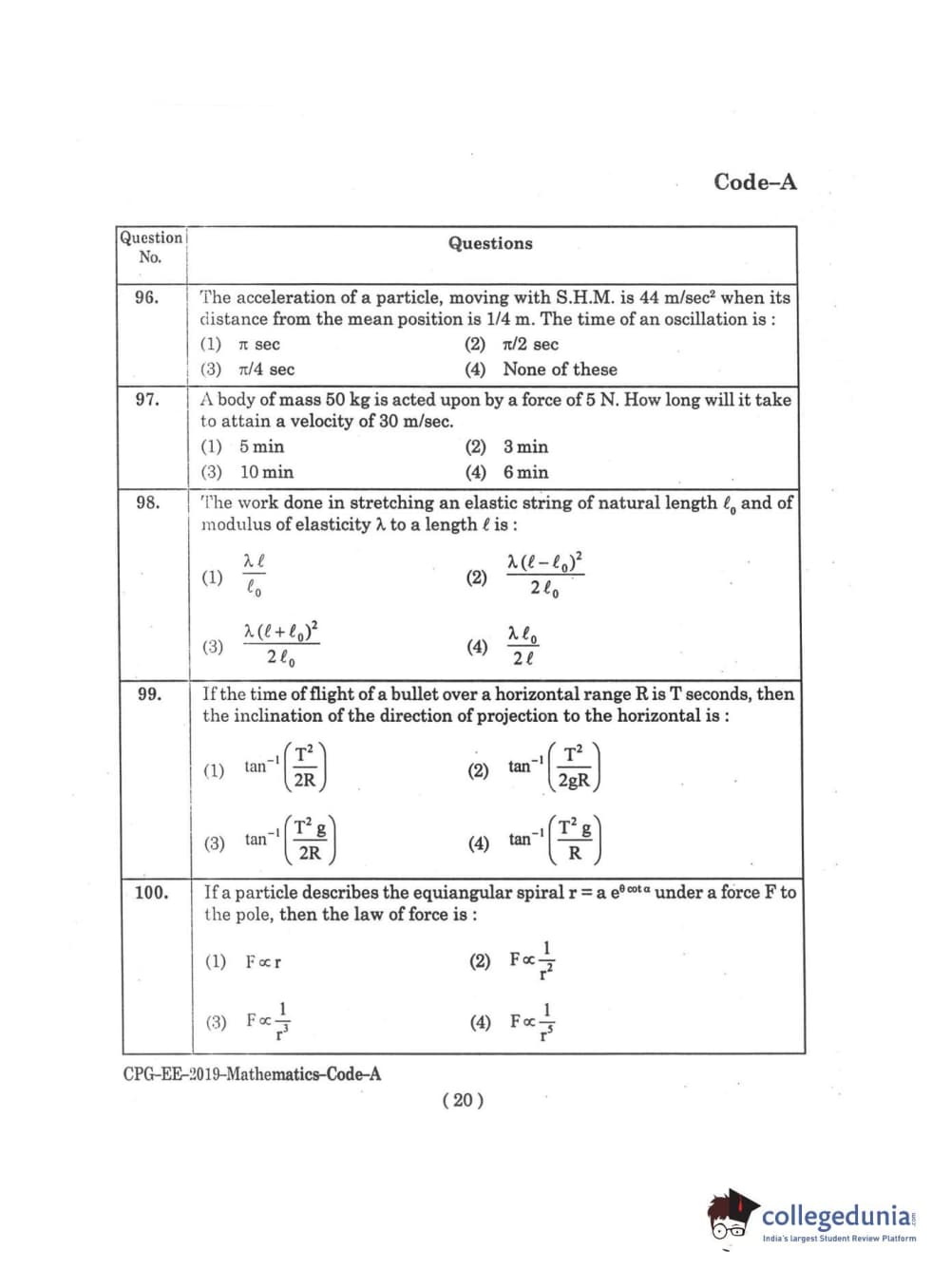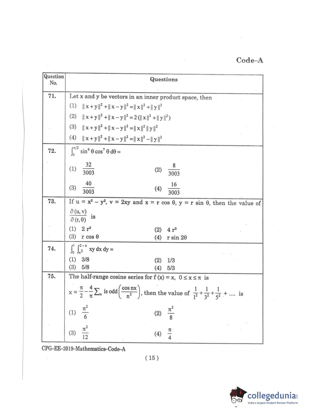 | MDUCEE 2019 M.Sc. Mathematics Set A Question Paper PDF | MDUCEE 2019 M.Sc. Mathematics Set A Answer Key PDF |