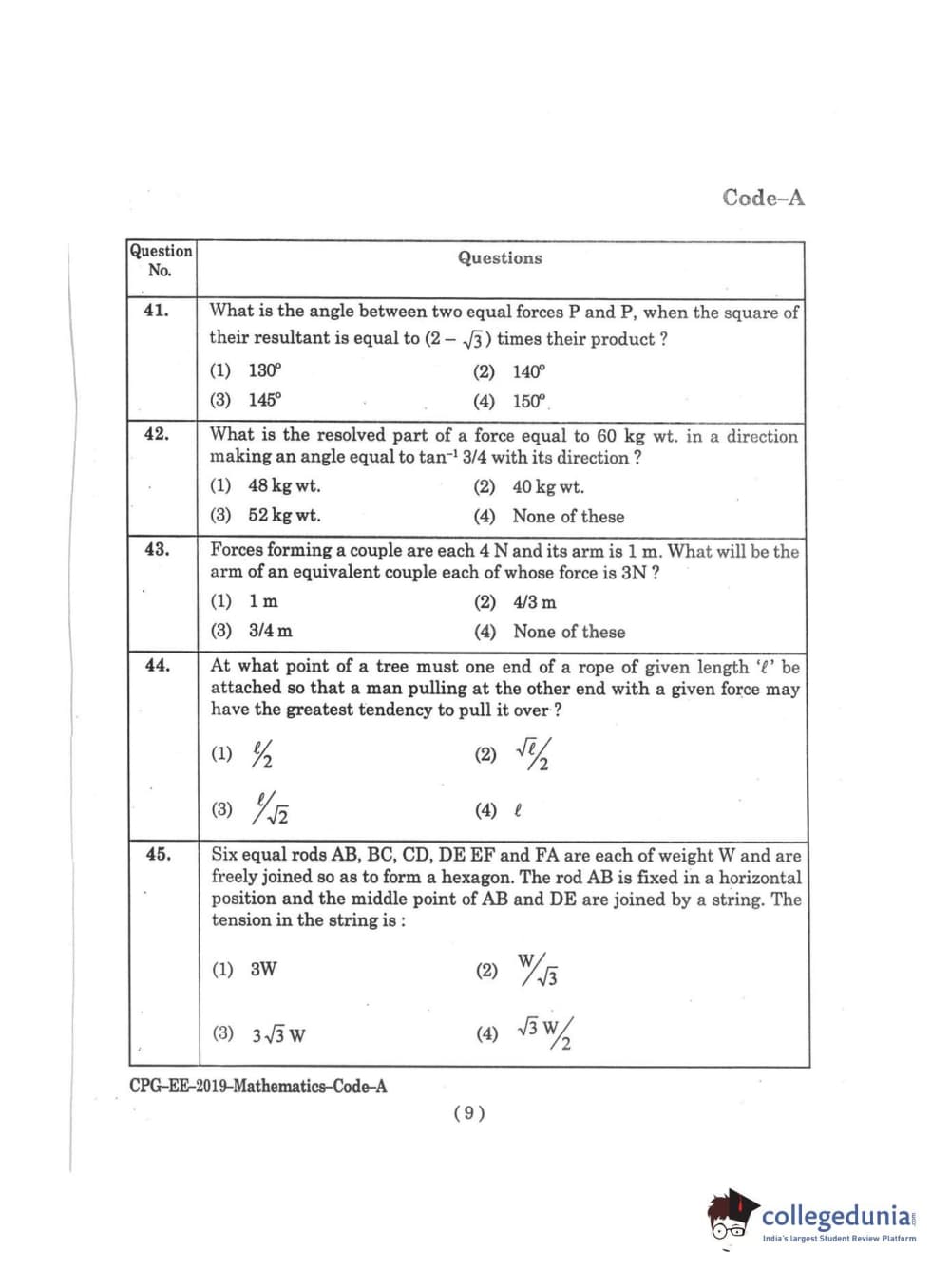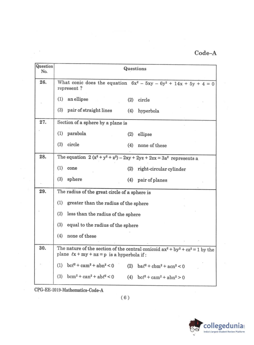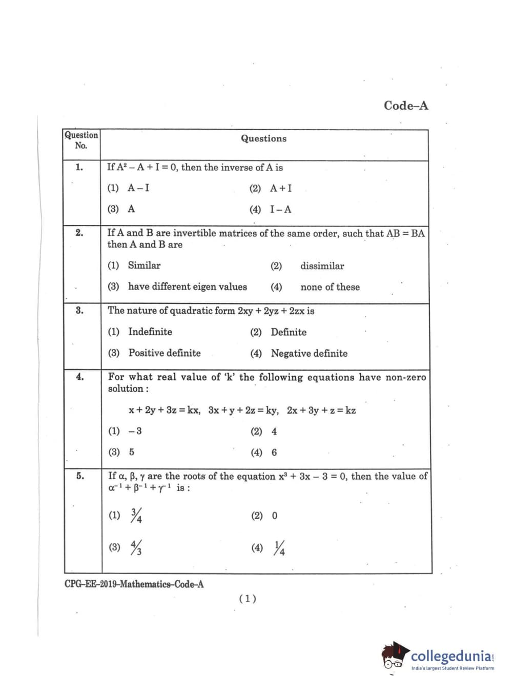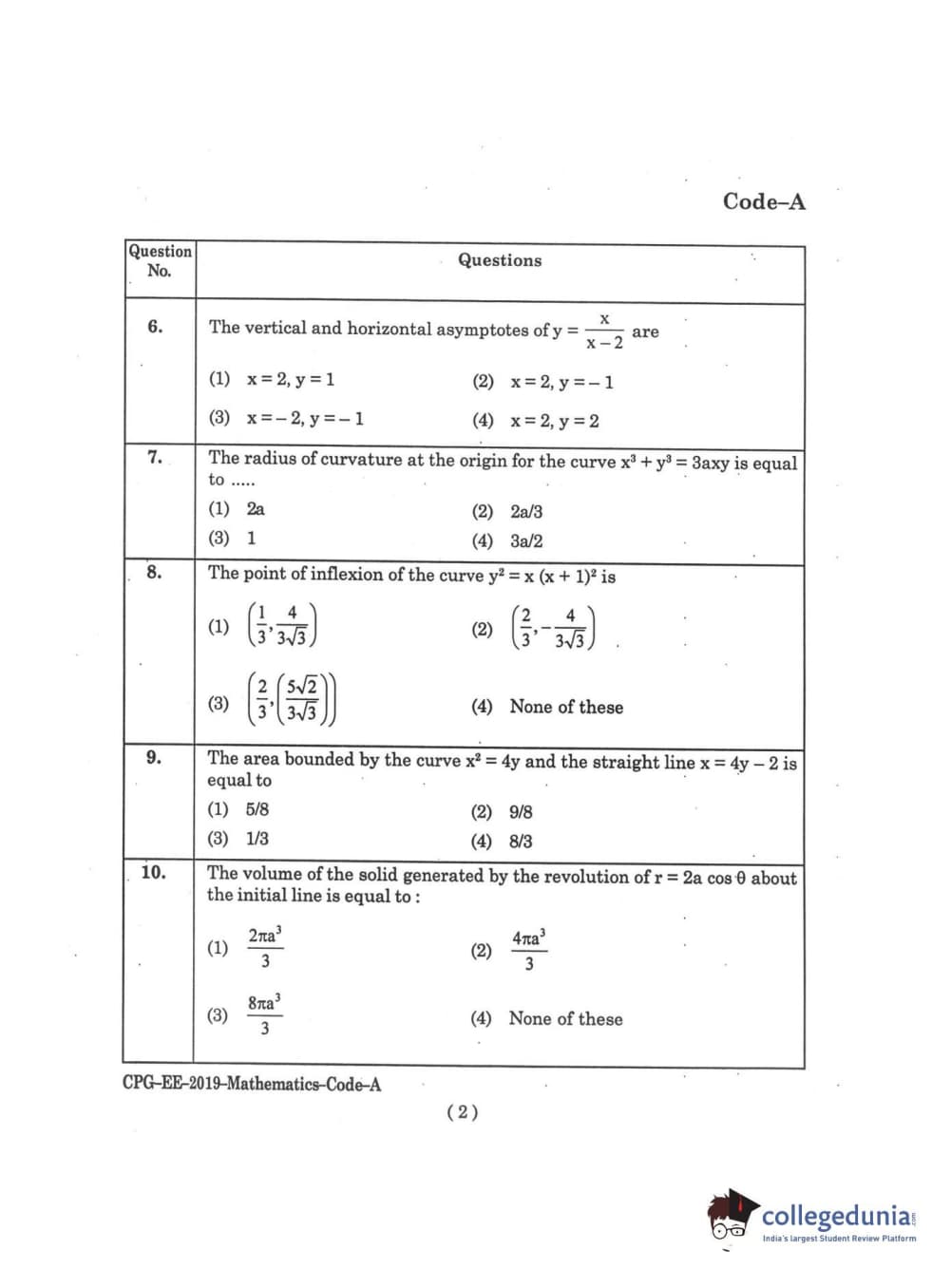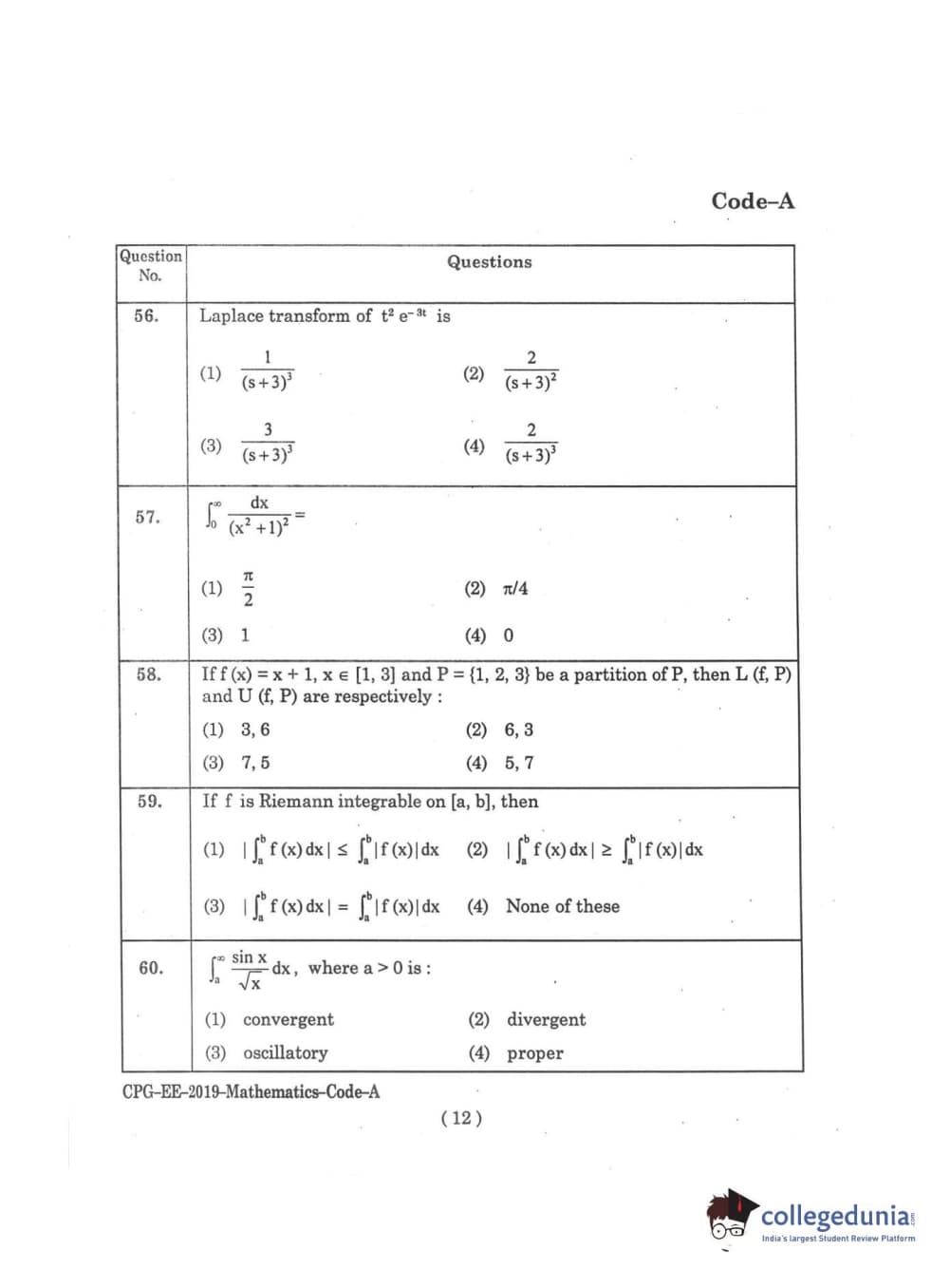 | MDUCEE 2019 M.Sc. Mathematics Set A Question Paper PDF | MDUCEE 2019 M.Sc. Mathematics Set A Answer Key PDF |