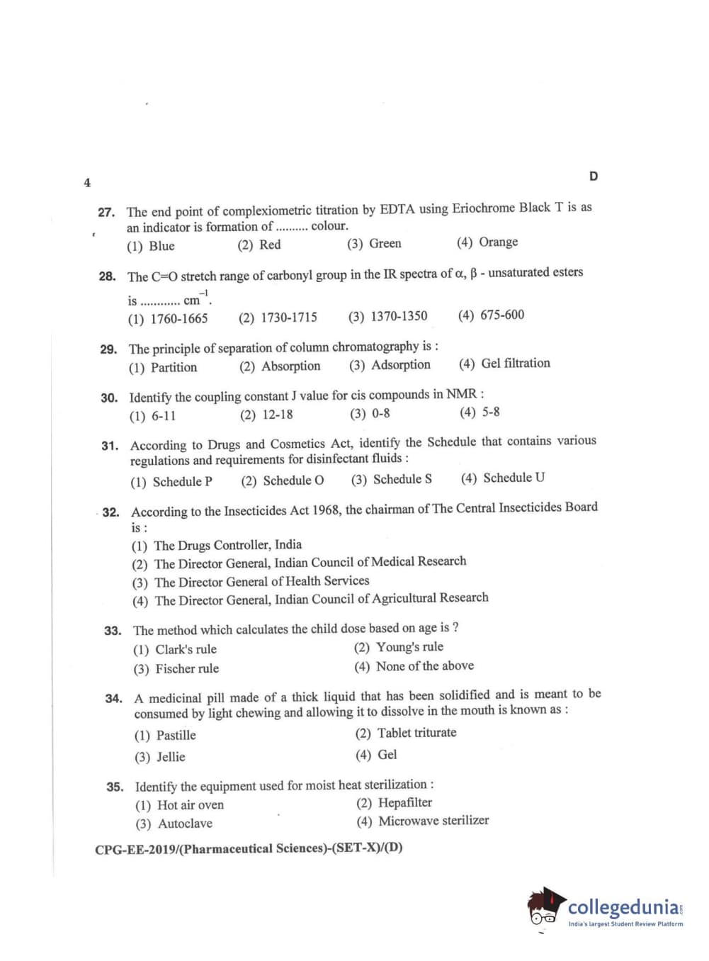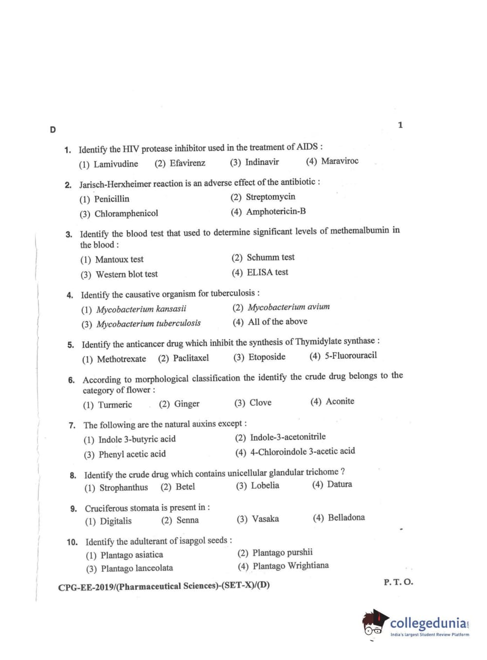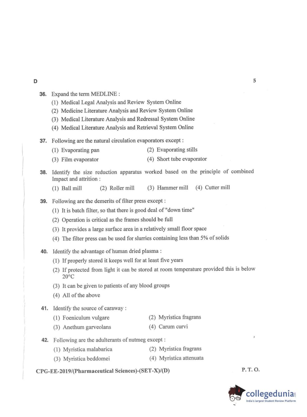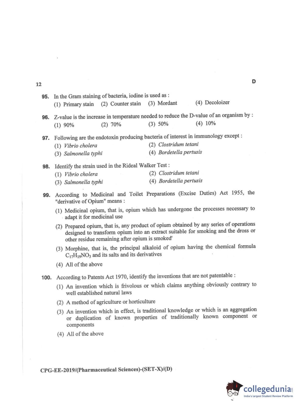 | MDUCEE 2019 Pharmaceutical Science Set D Question Paper PDF | MDUCEE 2019 Pharmaceutical Science Set D Answer Key PDF |