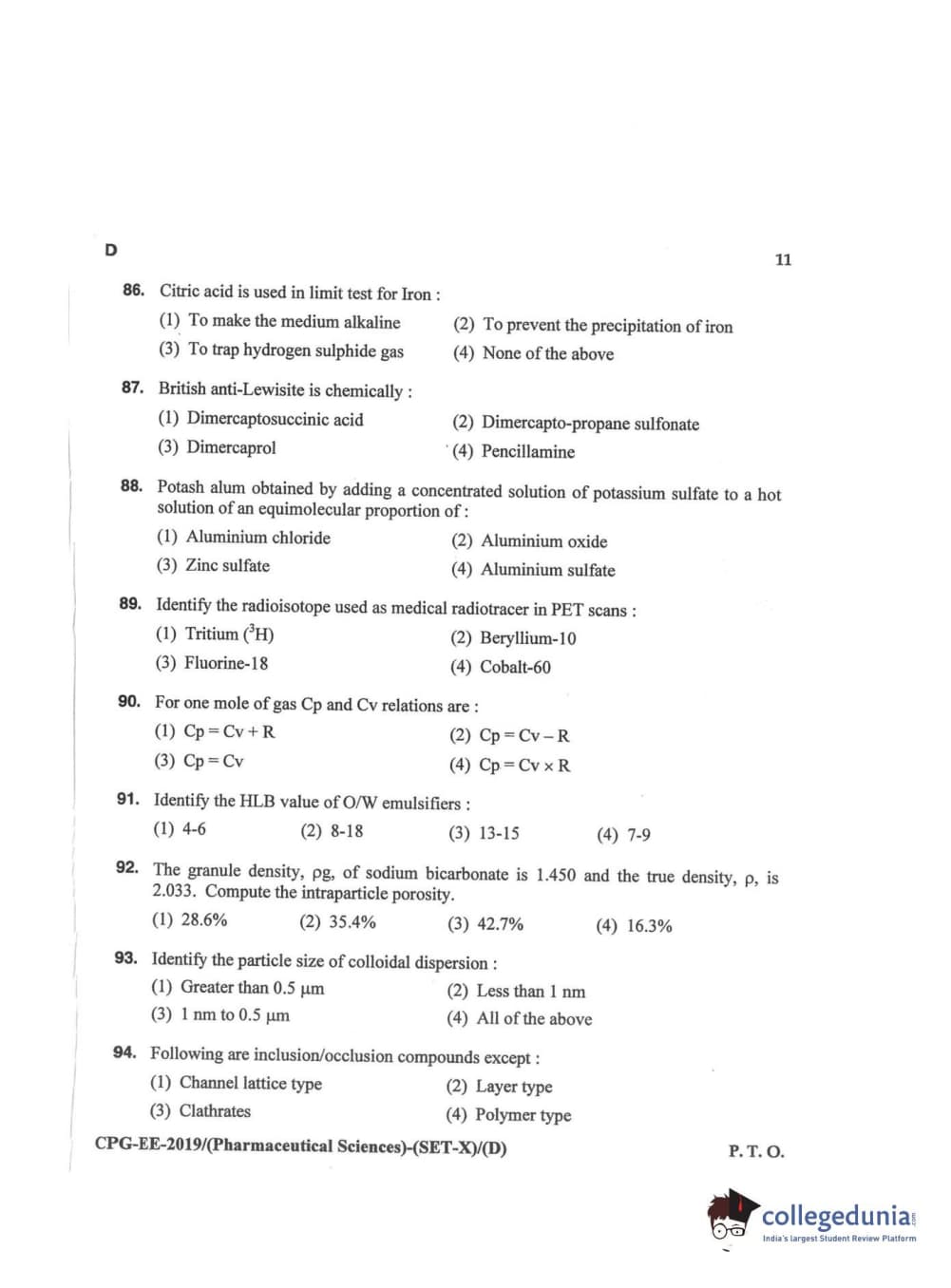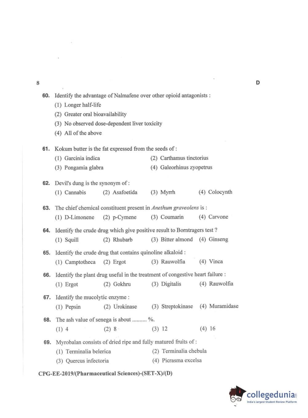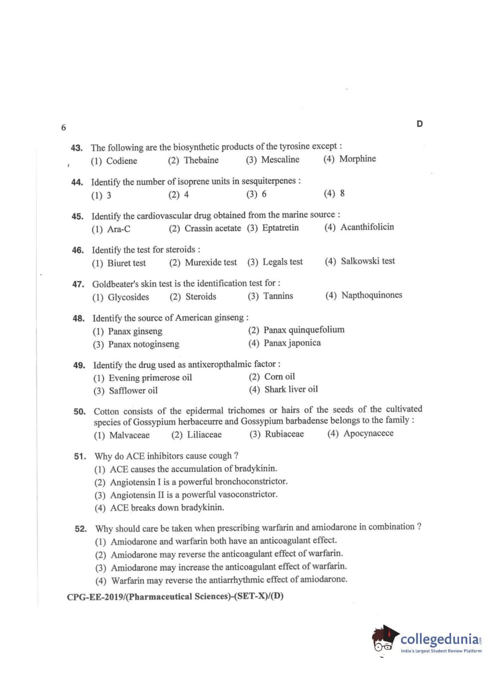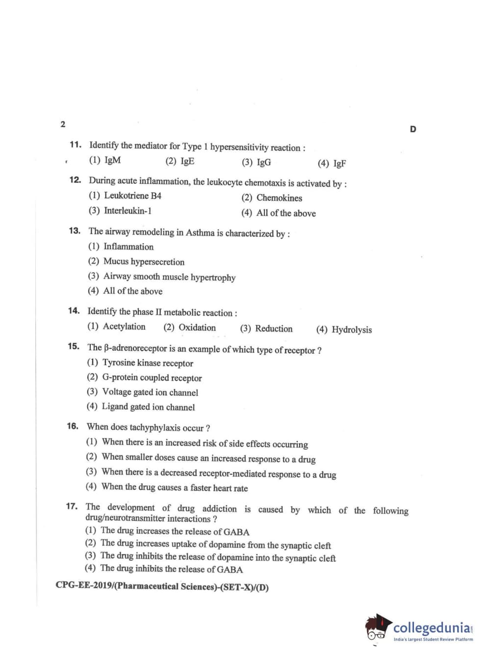 | MDUCEE 2019 Pharmaceutical Science Set D Question Paper PDF | MDUCEE 2019 Pharmaceutical Science Set D Answer Key PDF |