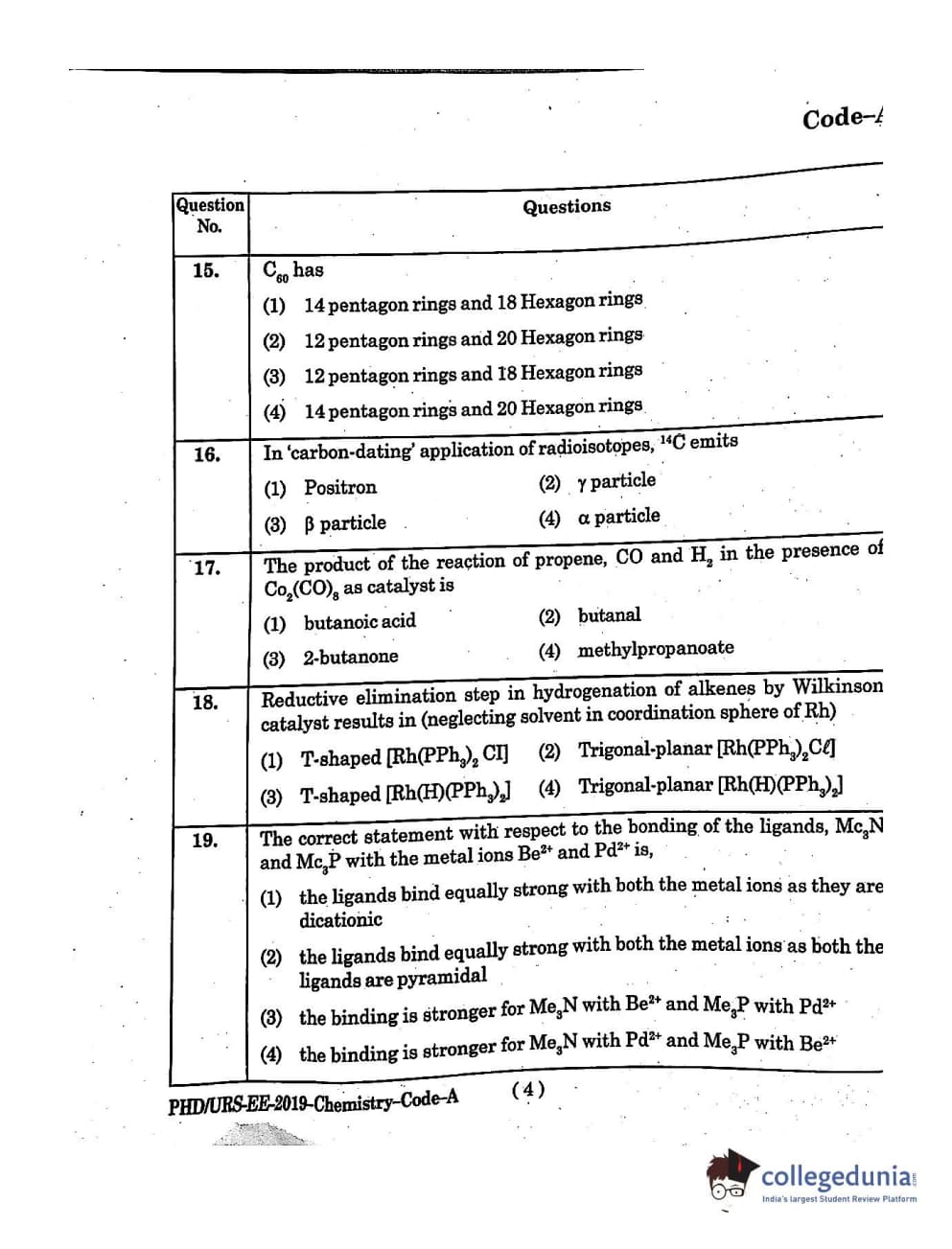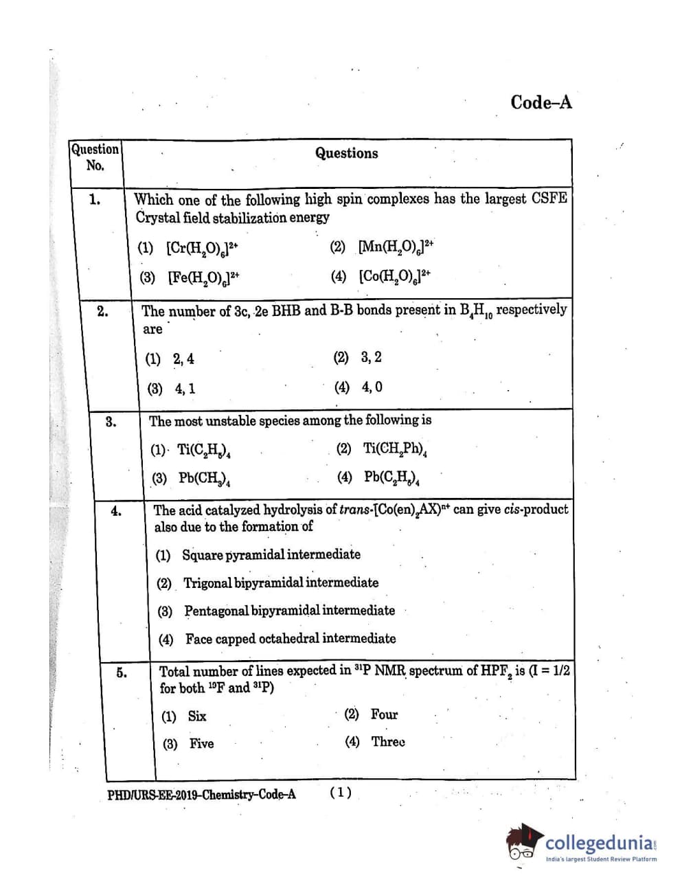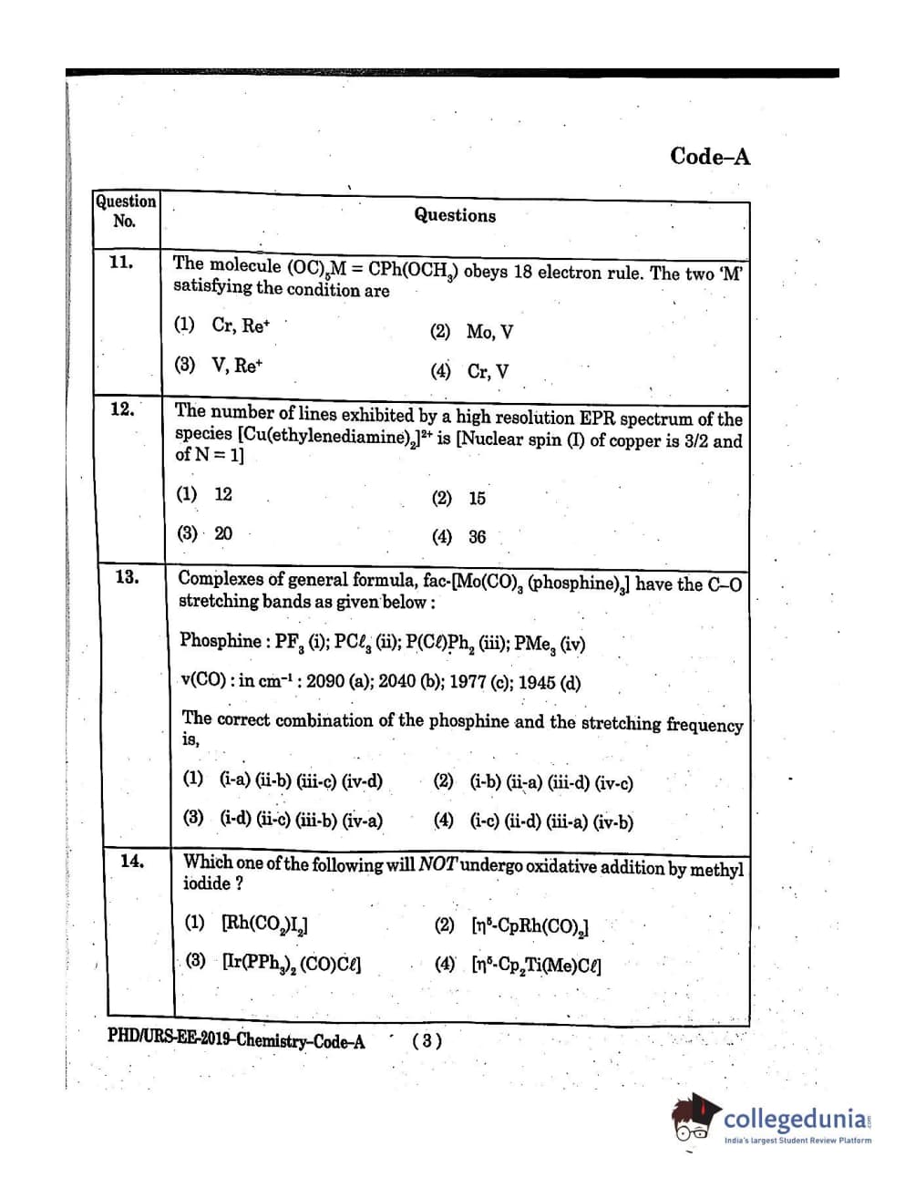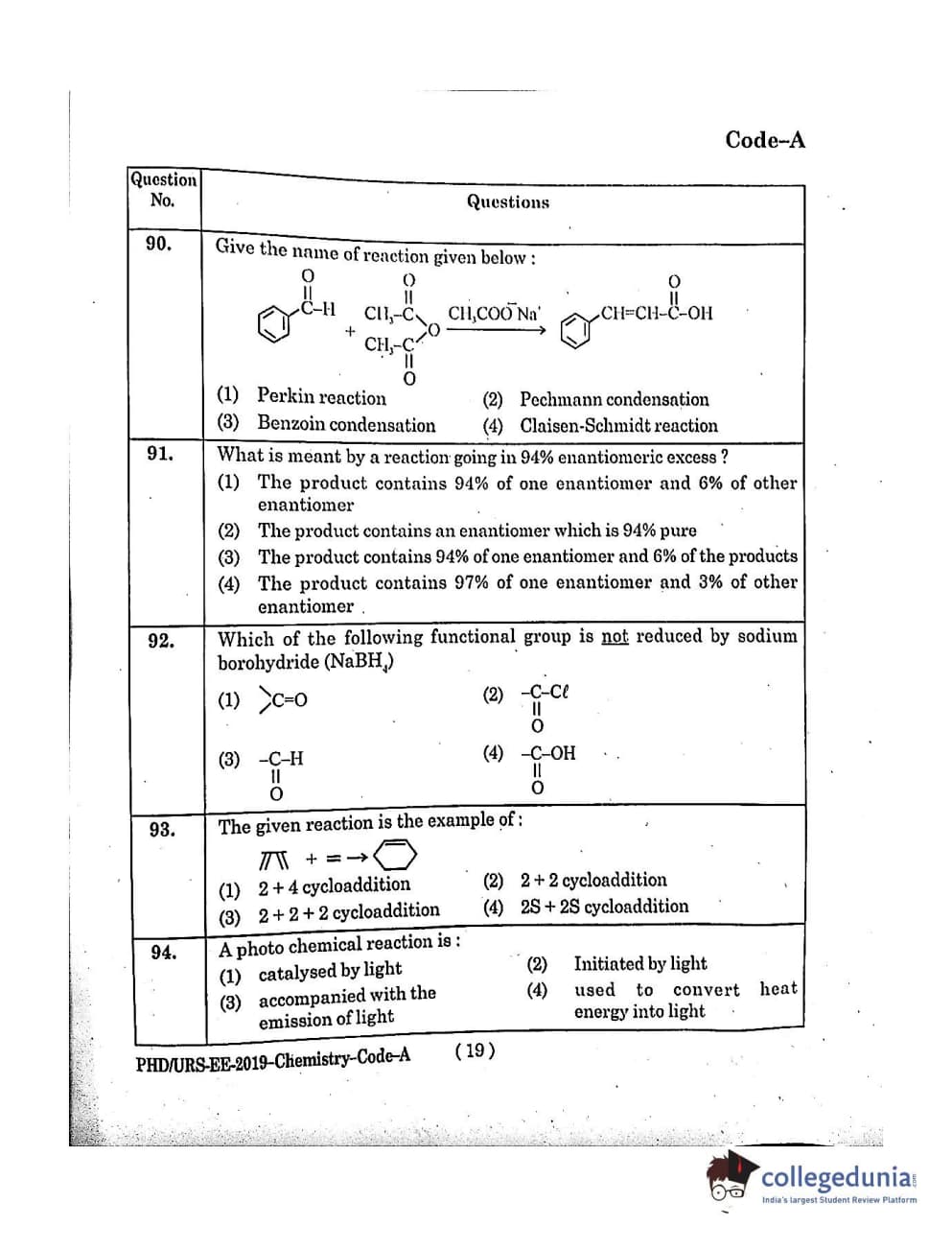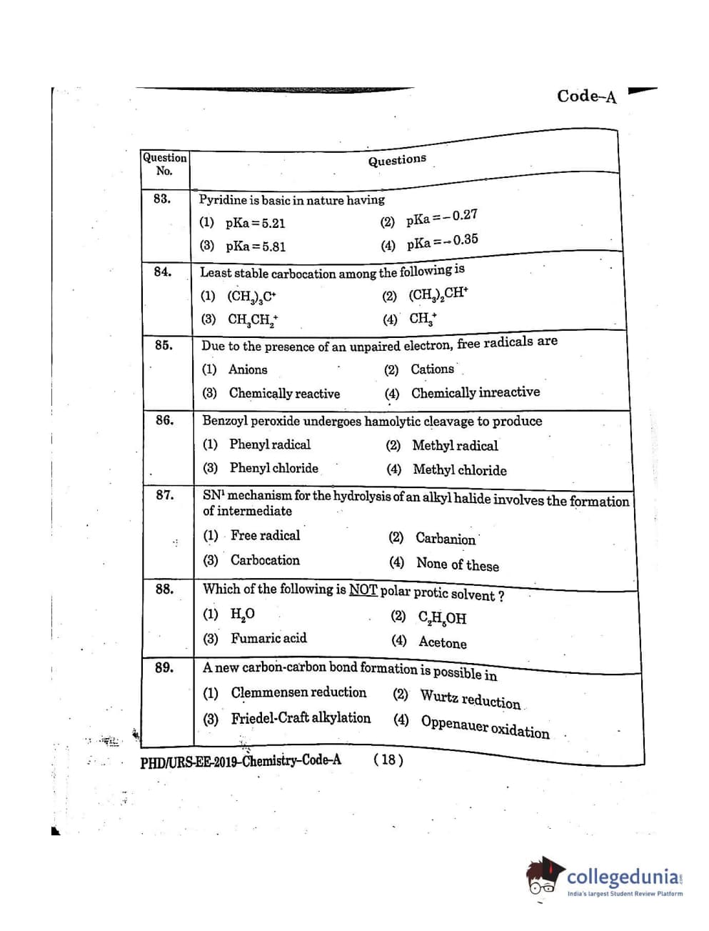 MDUCEE 2019 Ph.D./M.Phil./URS Chemistry Set A Question Paper with Answer Key PDFs