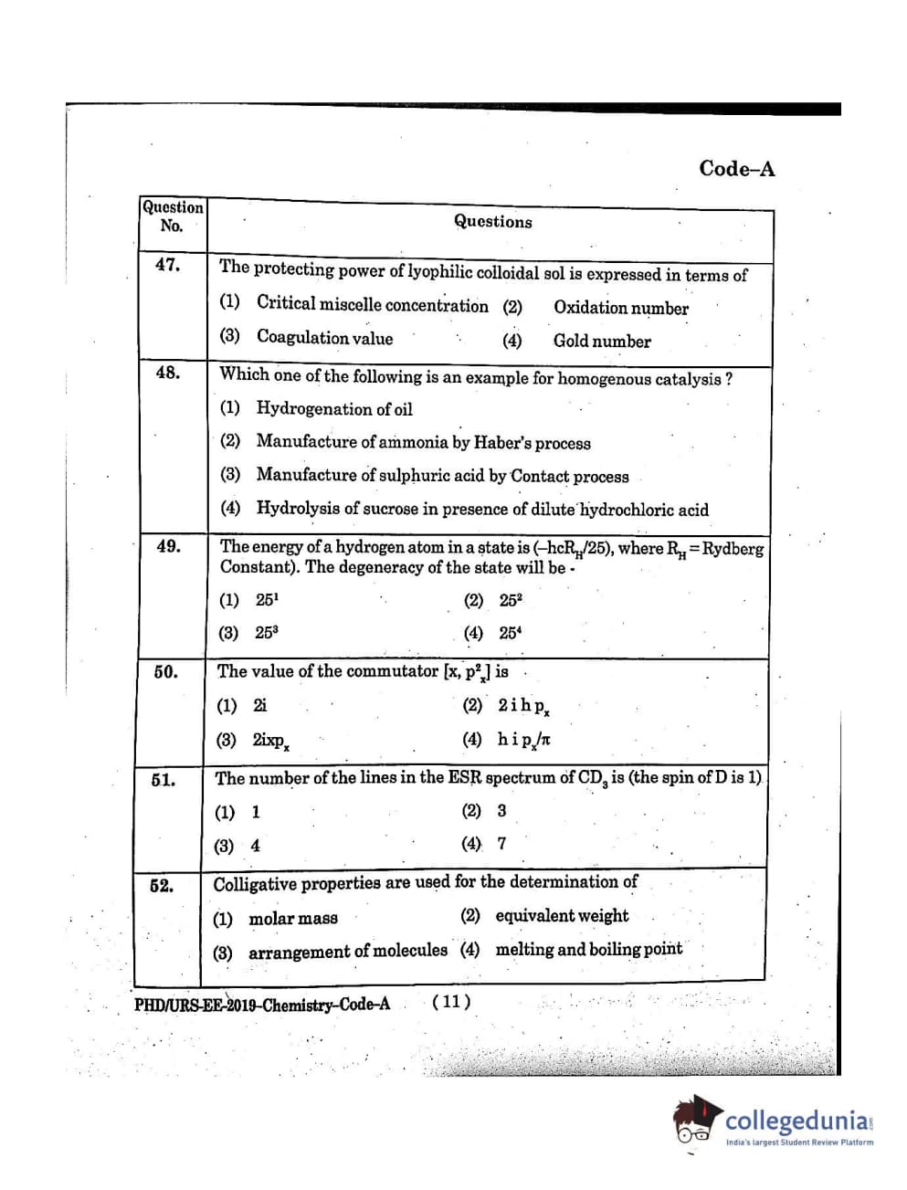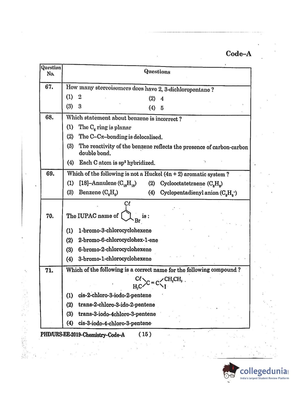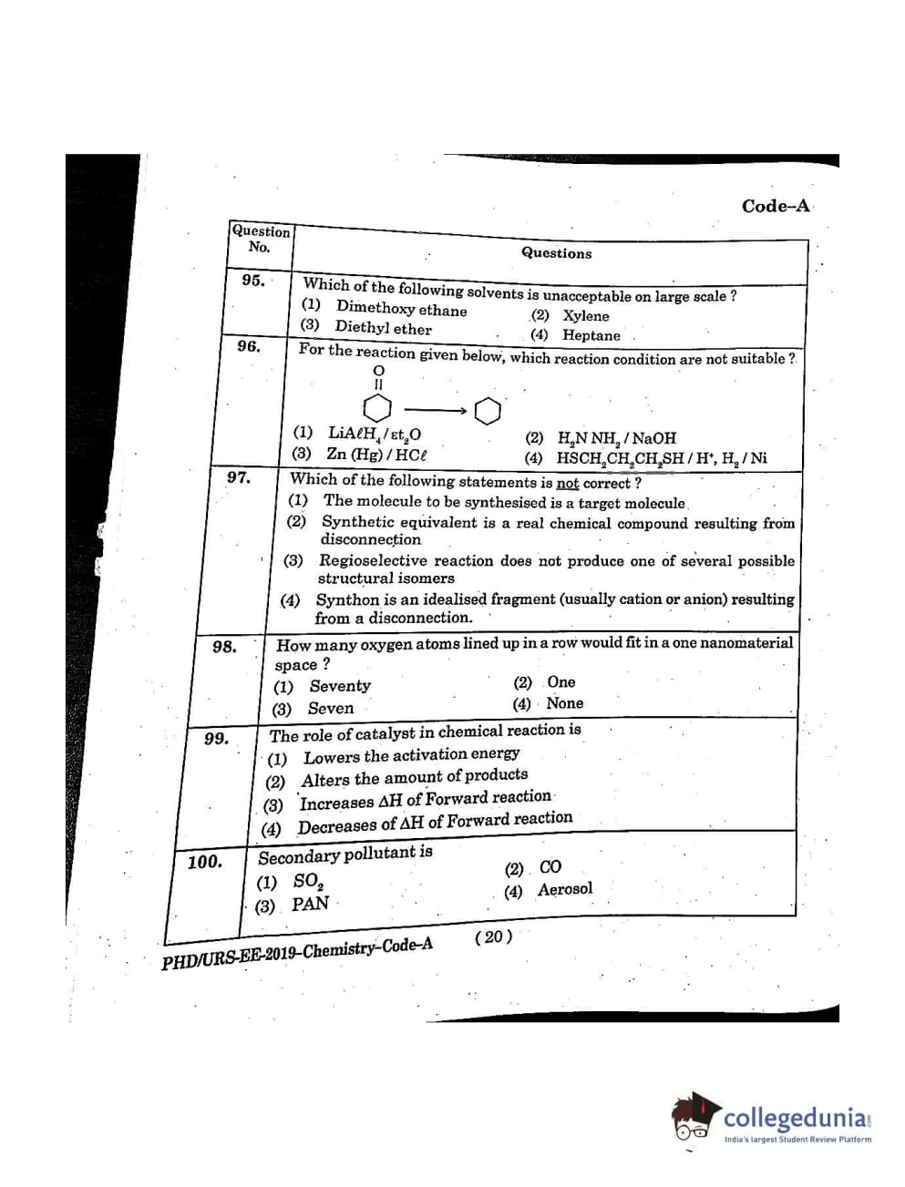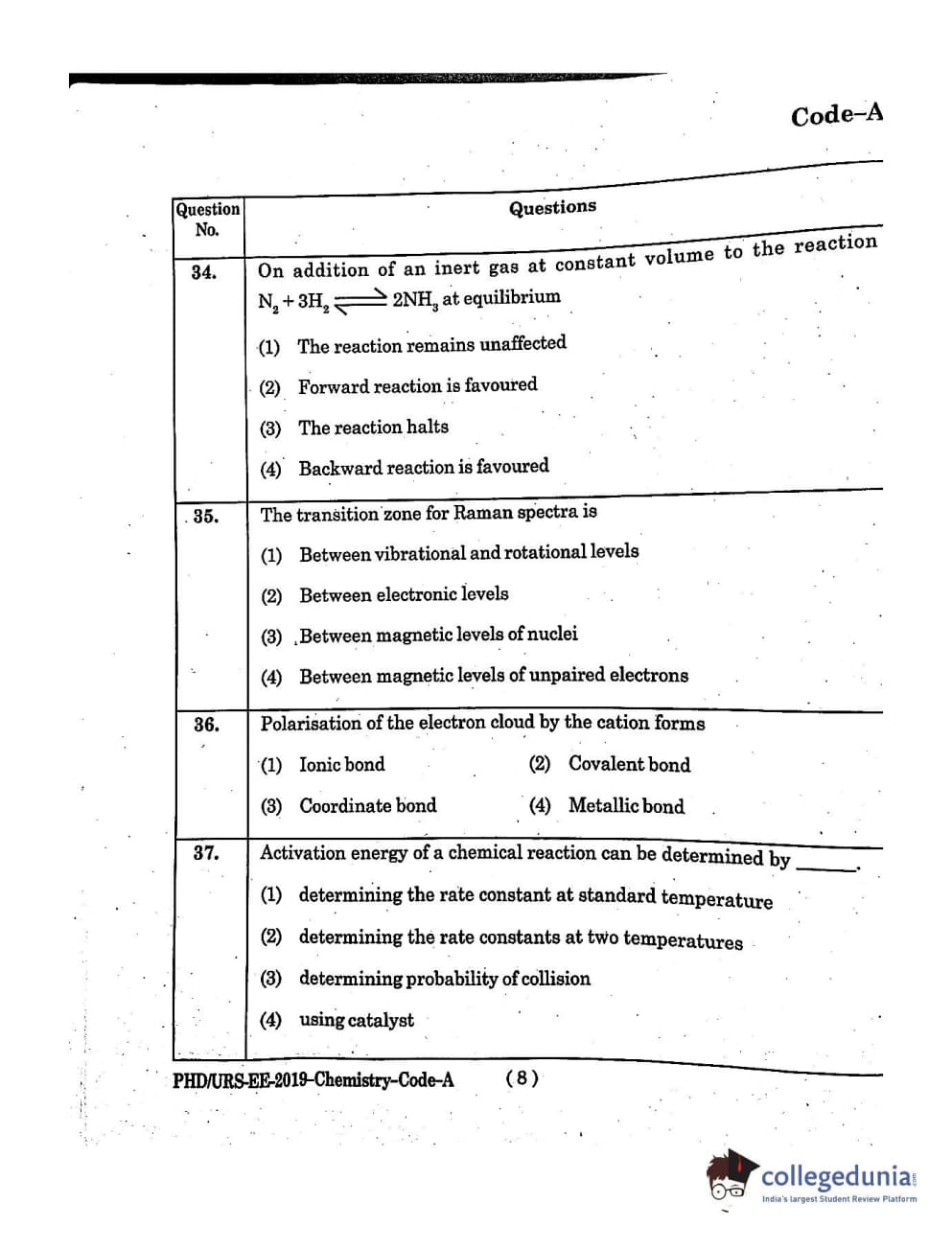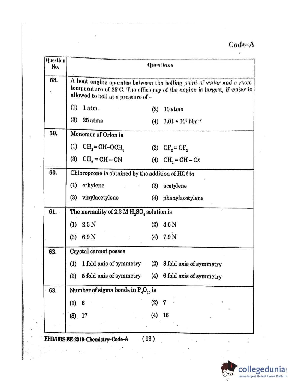 MDUCEE 2019 Ph.D./M.Phil./URS Chemistry Set A Question Paper with Answer Key PDFs