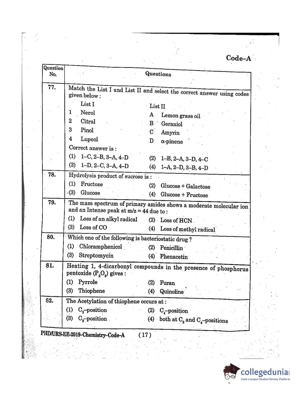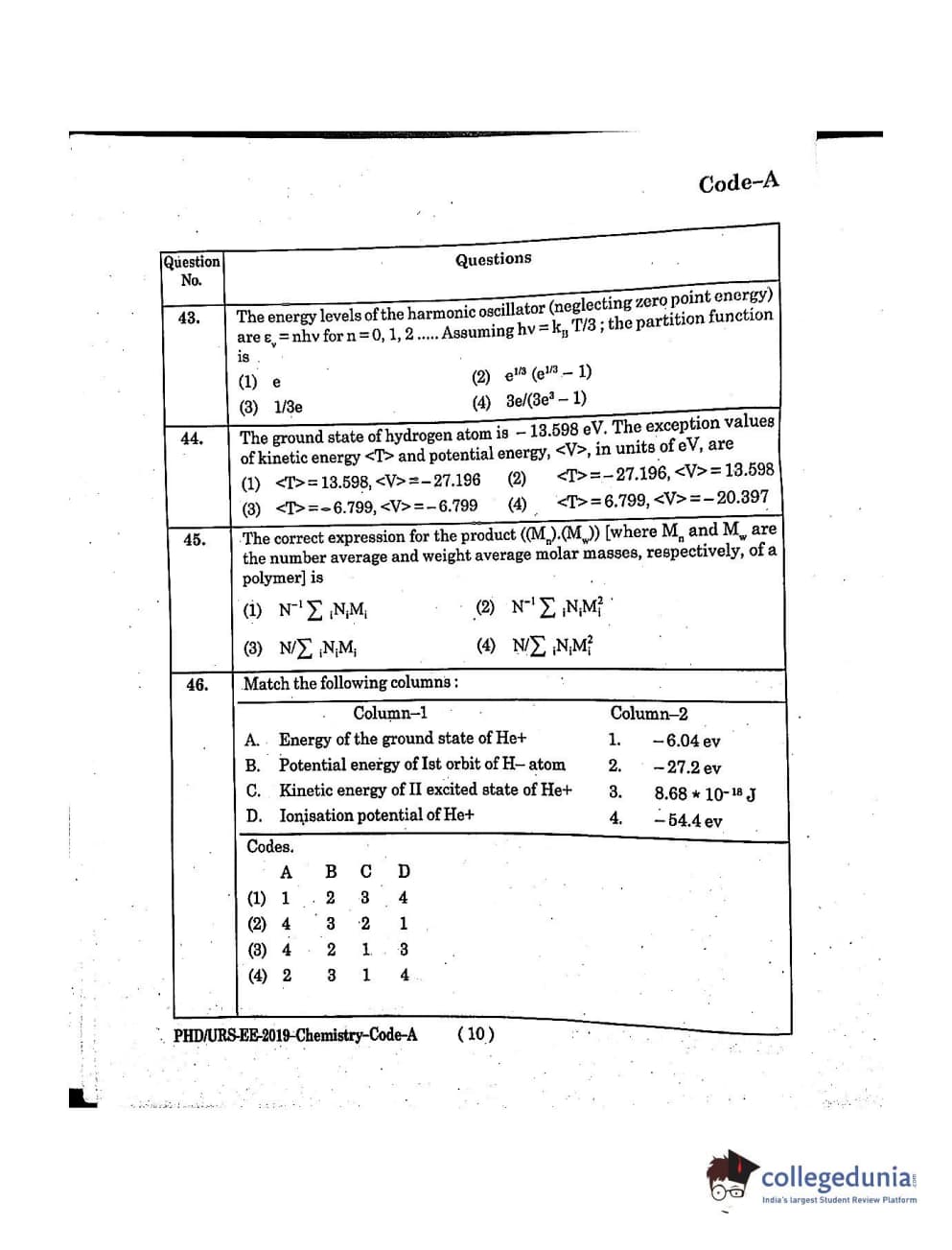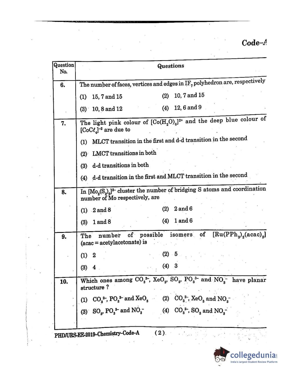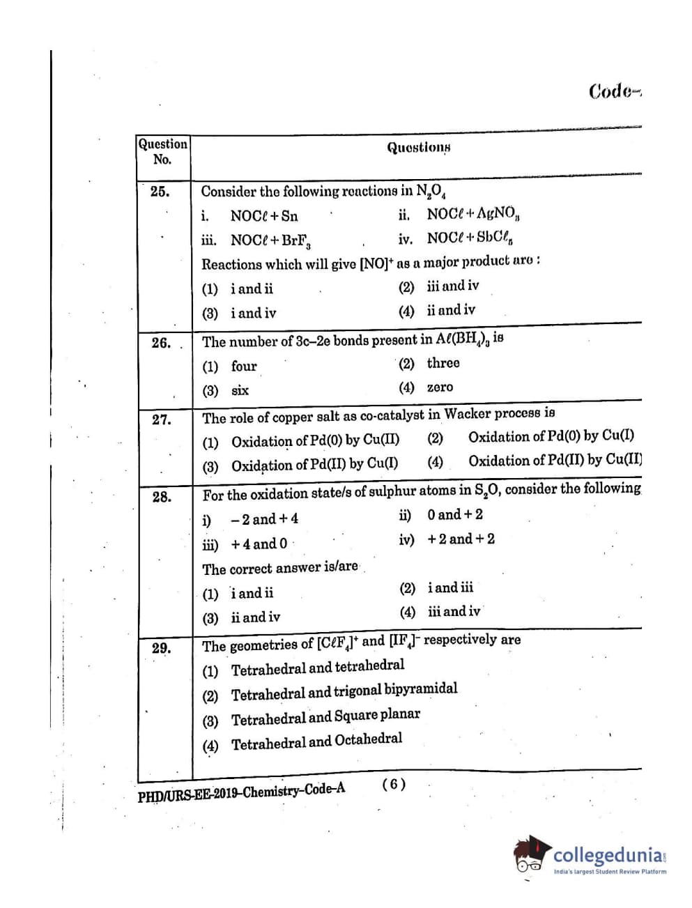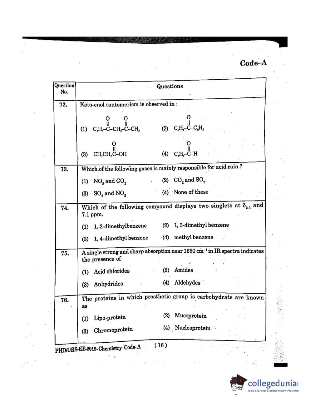 MDUCEE 2019 Ph.D./M.Phil./URS Chemistry Set A Question Paper with Answer Key PDFs