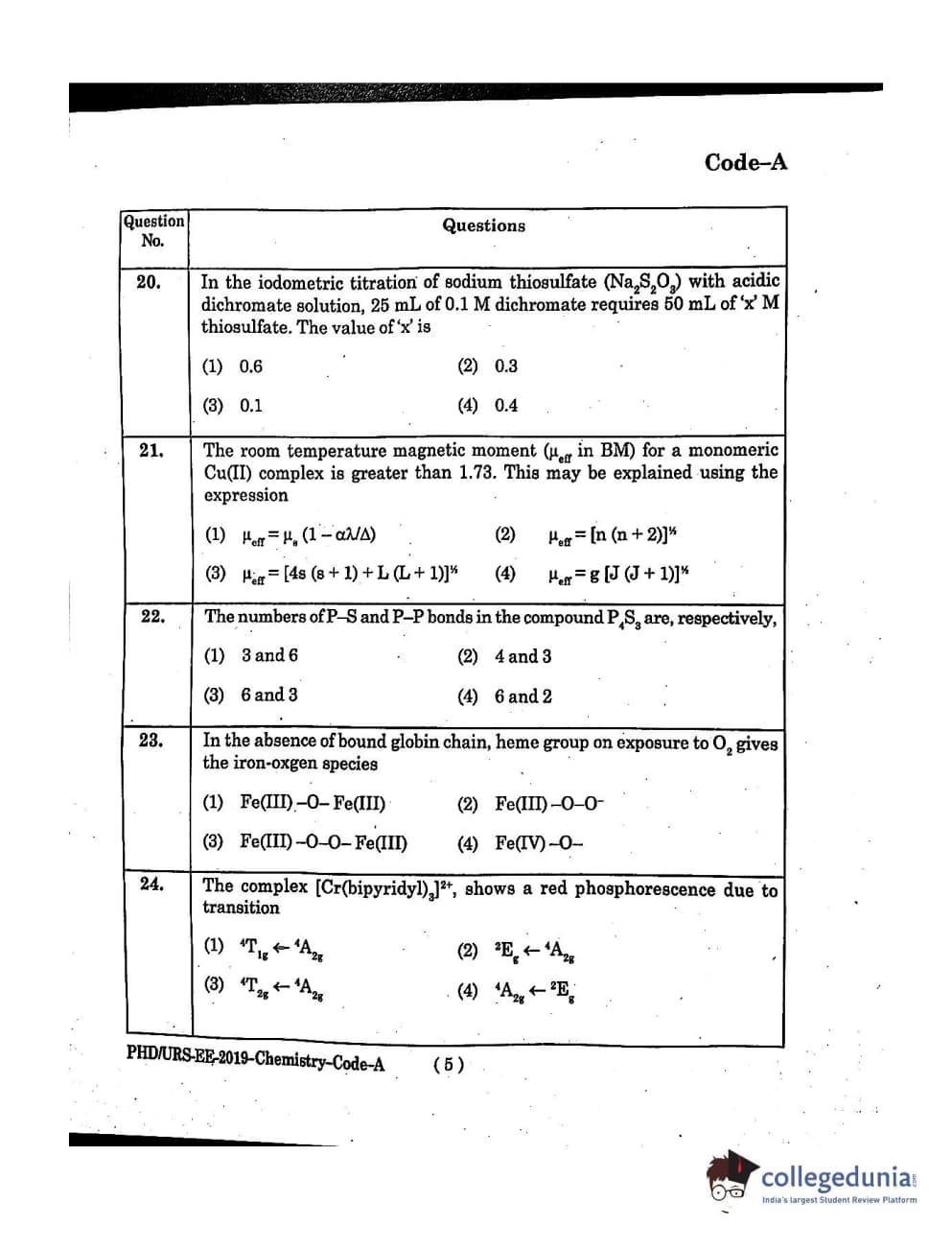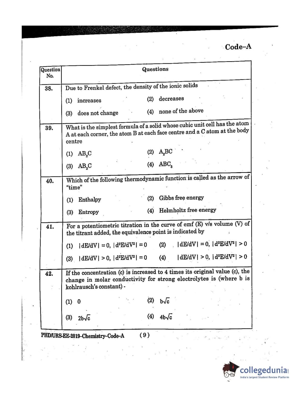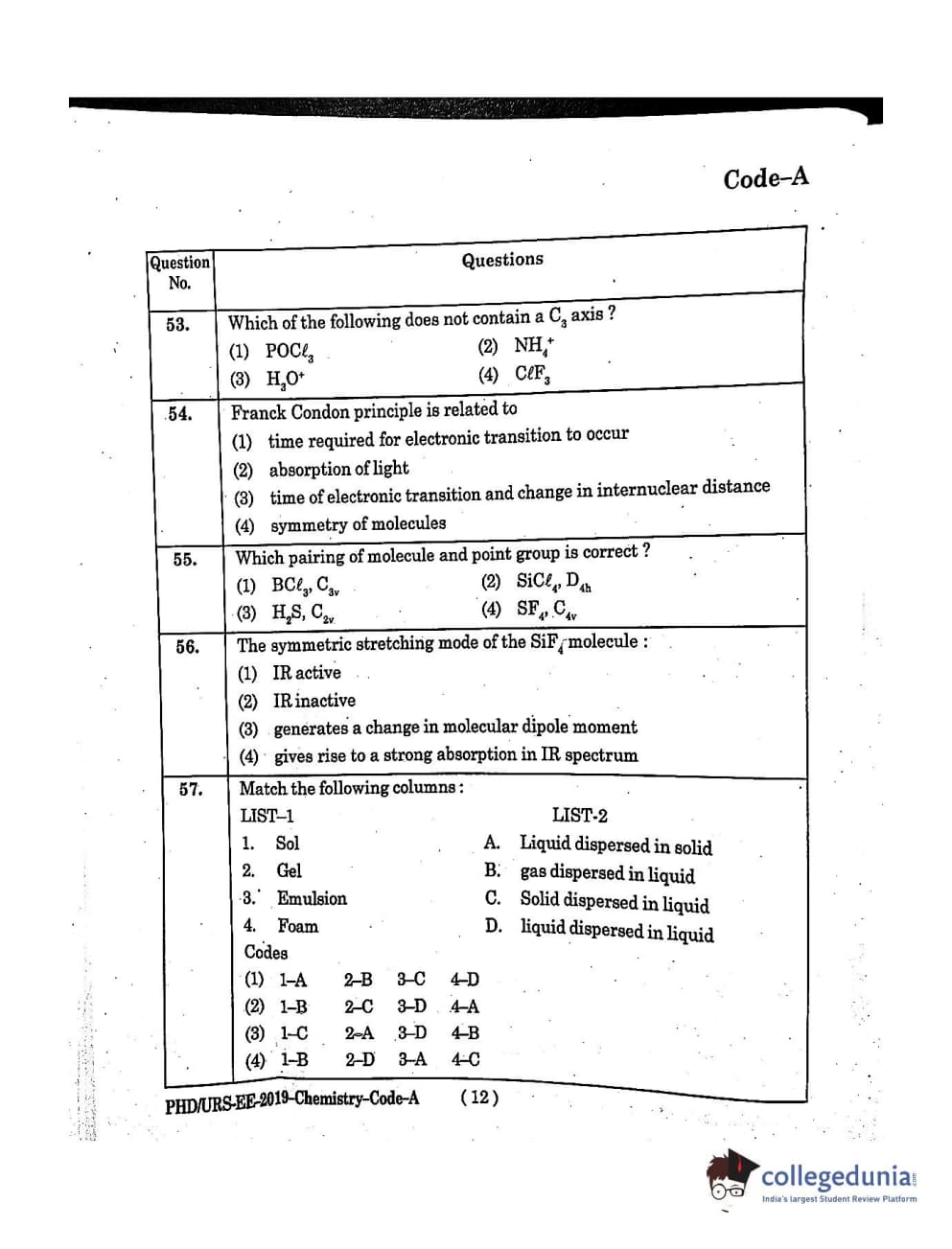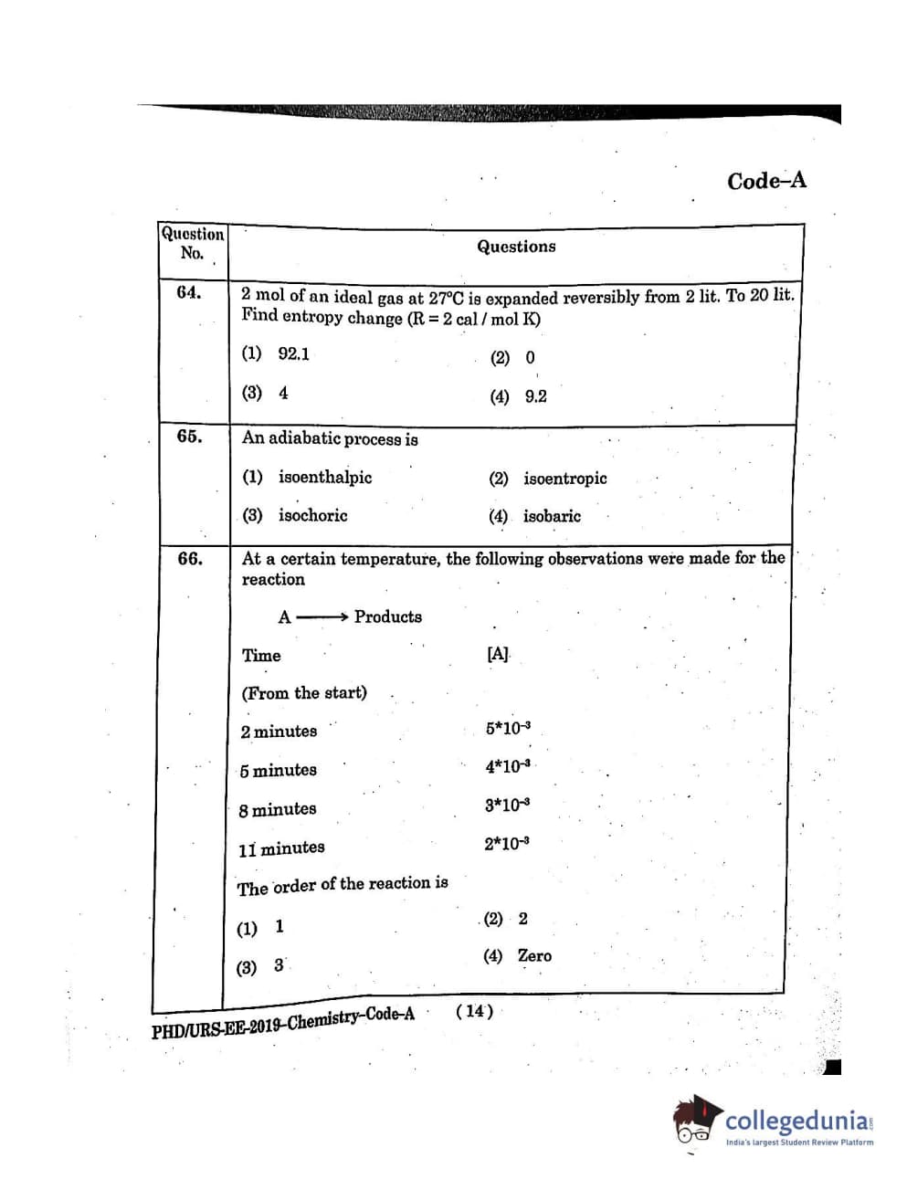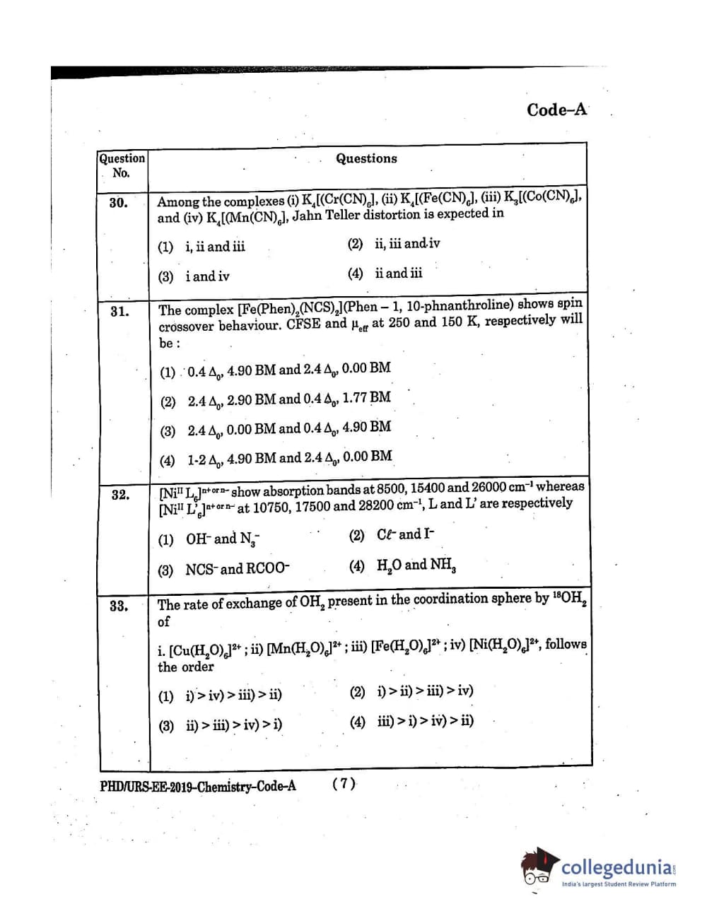 MDUCEE 2019 Ph.D./M.Phil./URS Chemistry Set A Question Paper with Answer Key PDFs