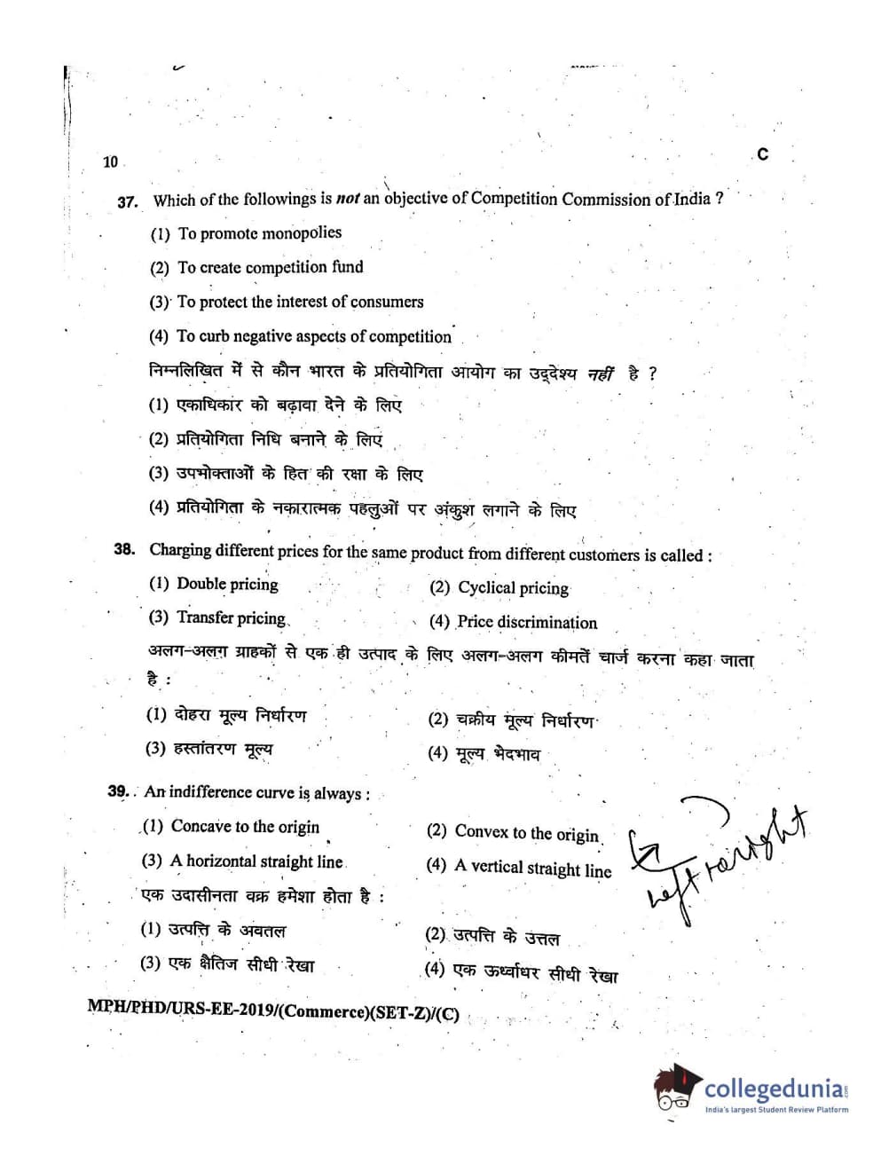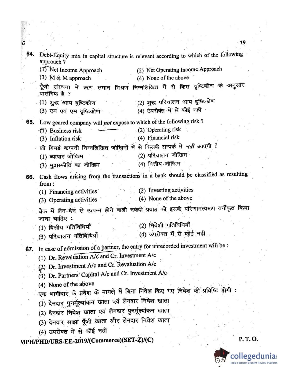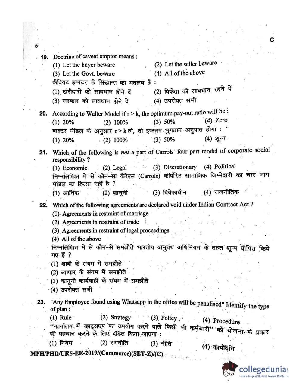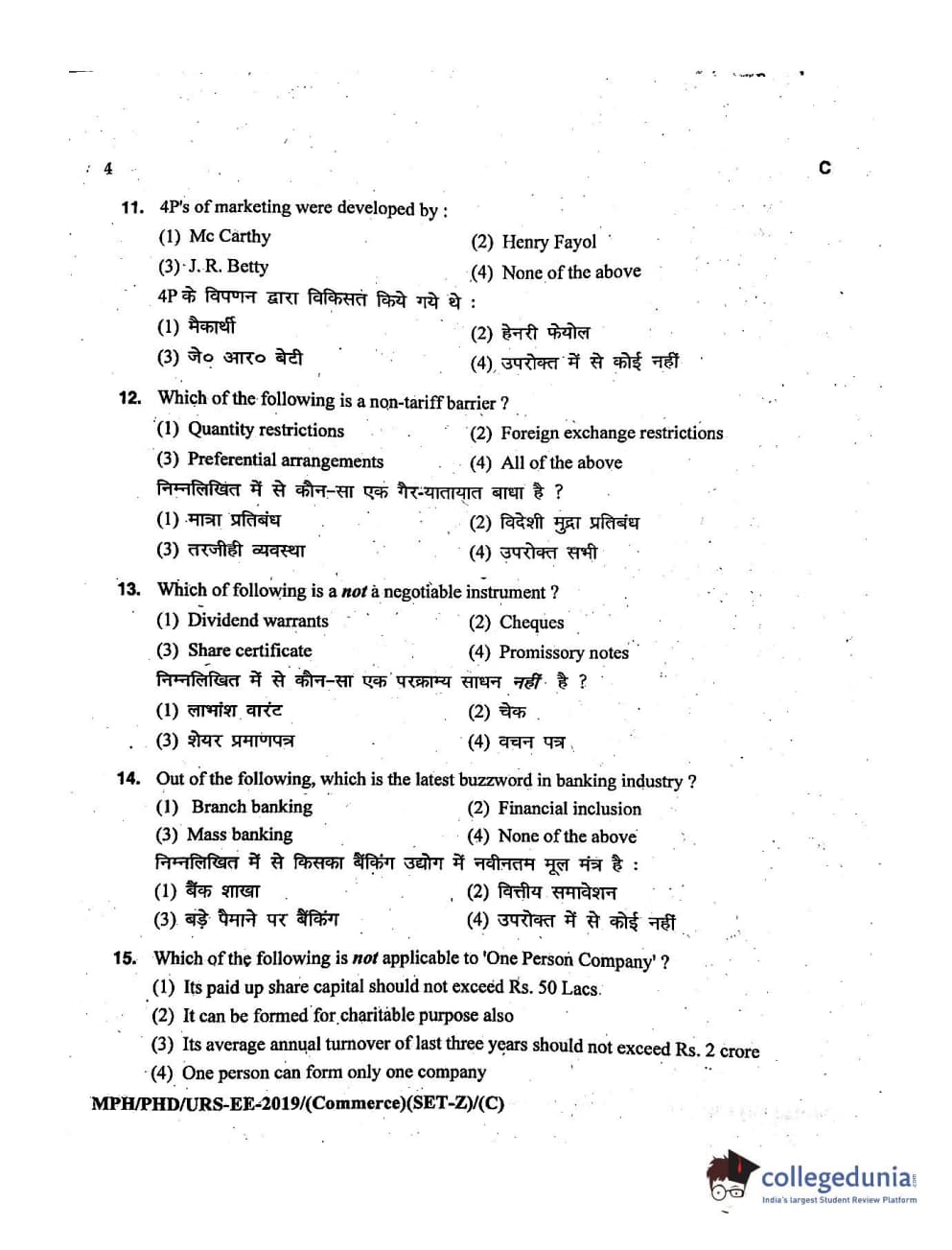 MDUCEE 2019 Ph.D./M.Phil./URS Commerce Question Paper with Answer Key PDFs