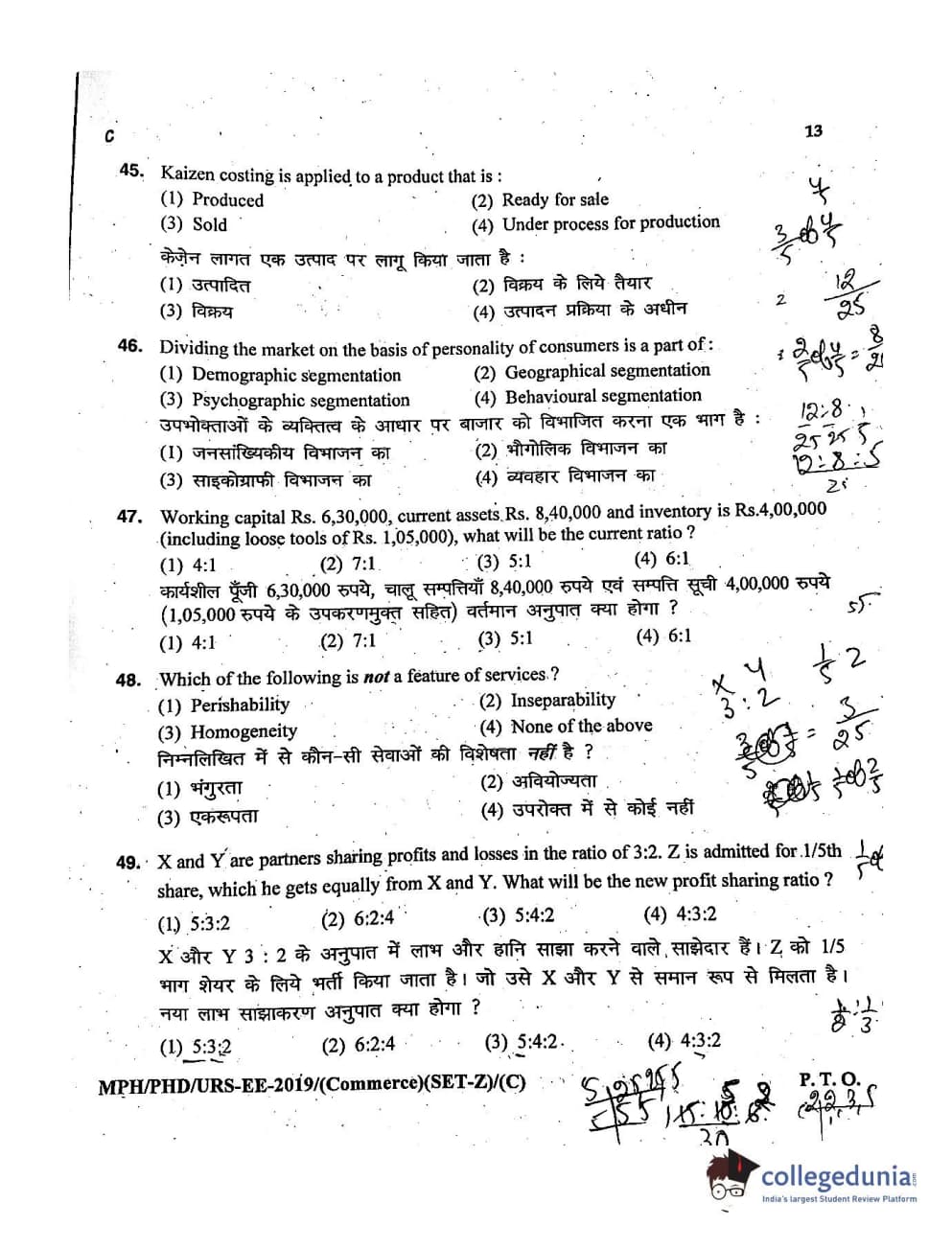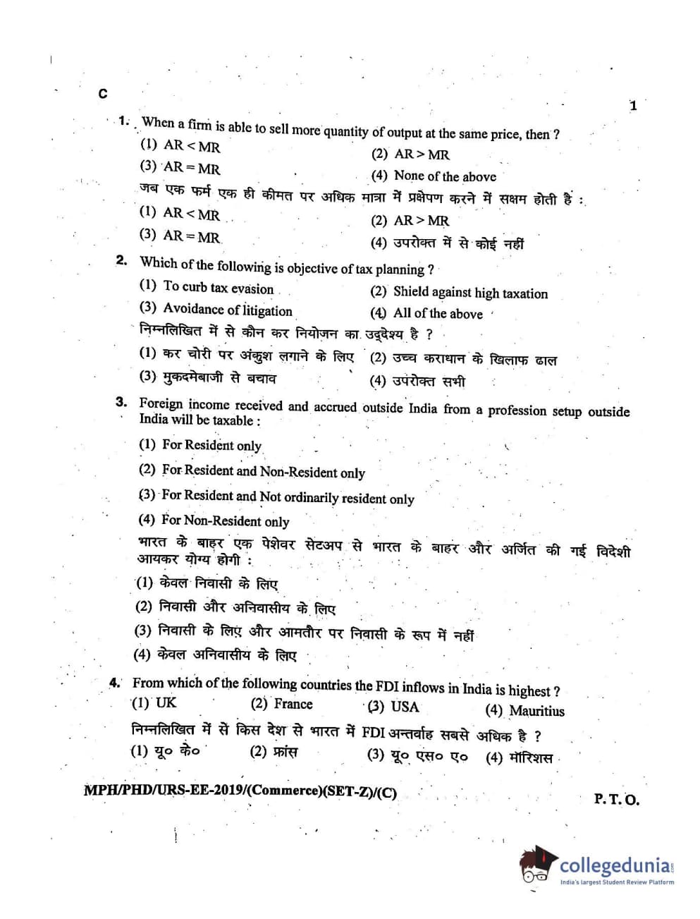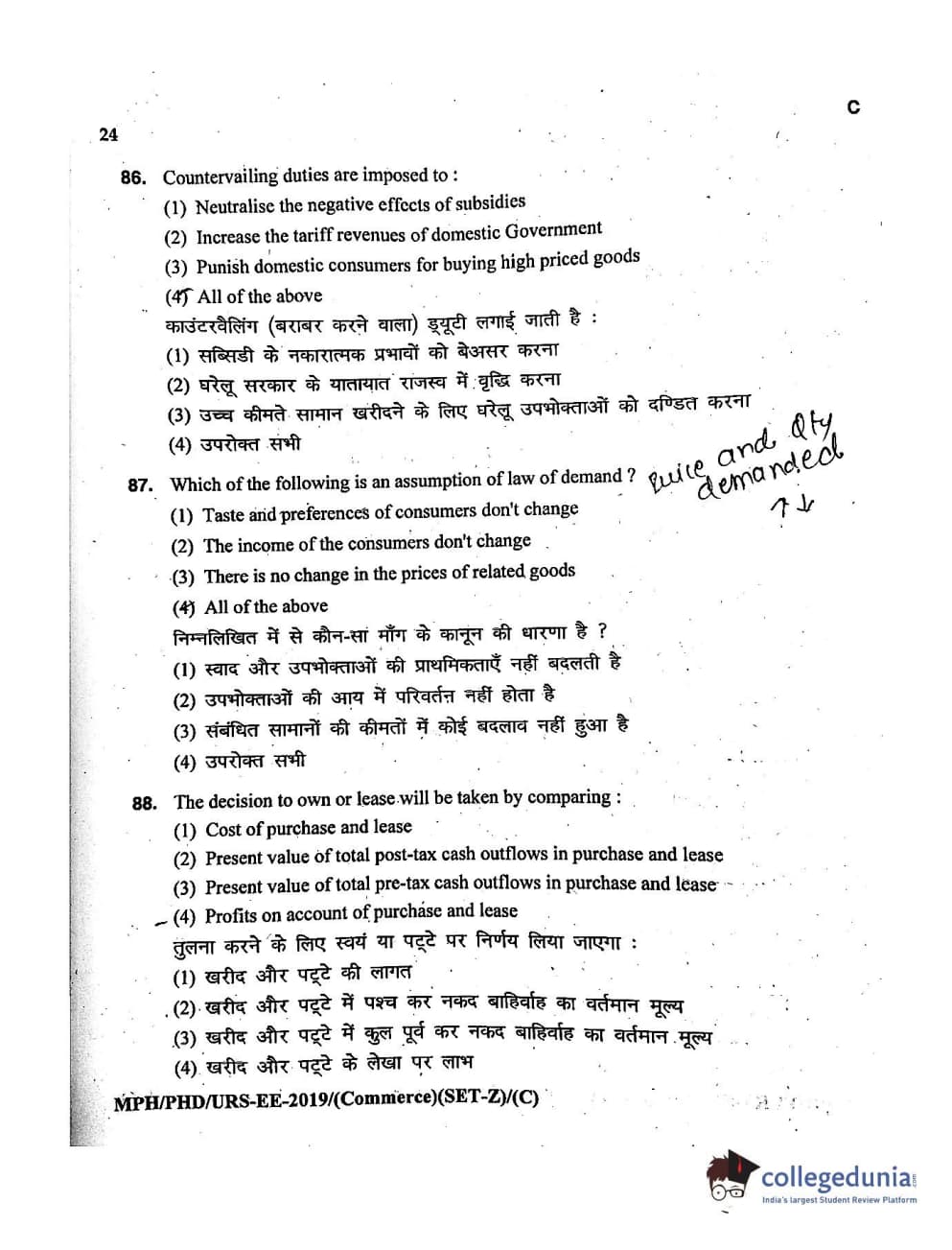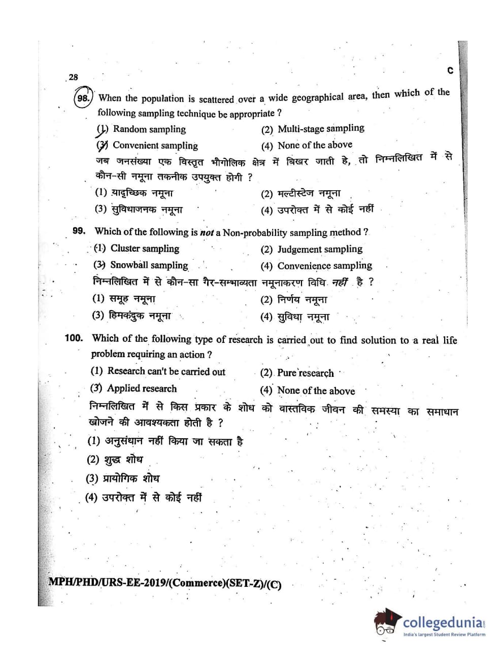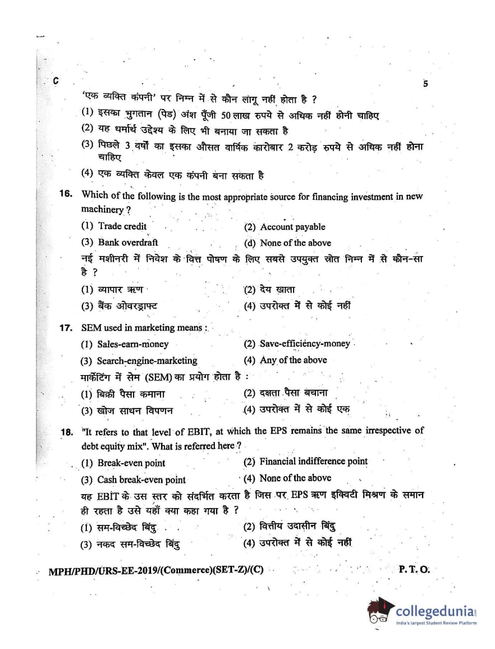 MDUCEE 2019 Ph.D./M.Phil./URS Commerce Question Paper with Answer Key PDFs