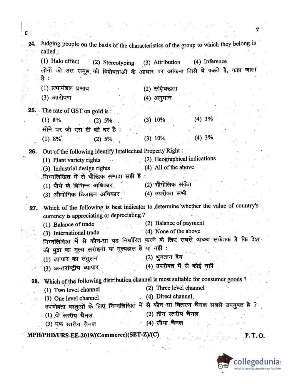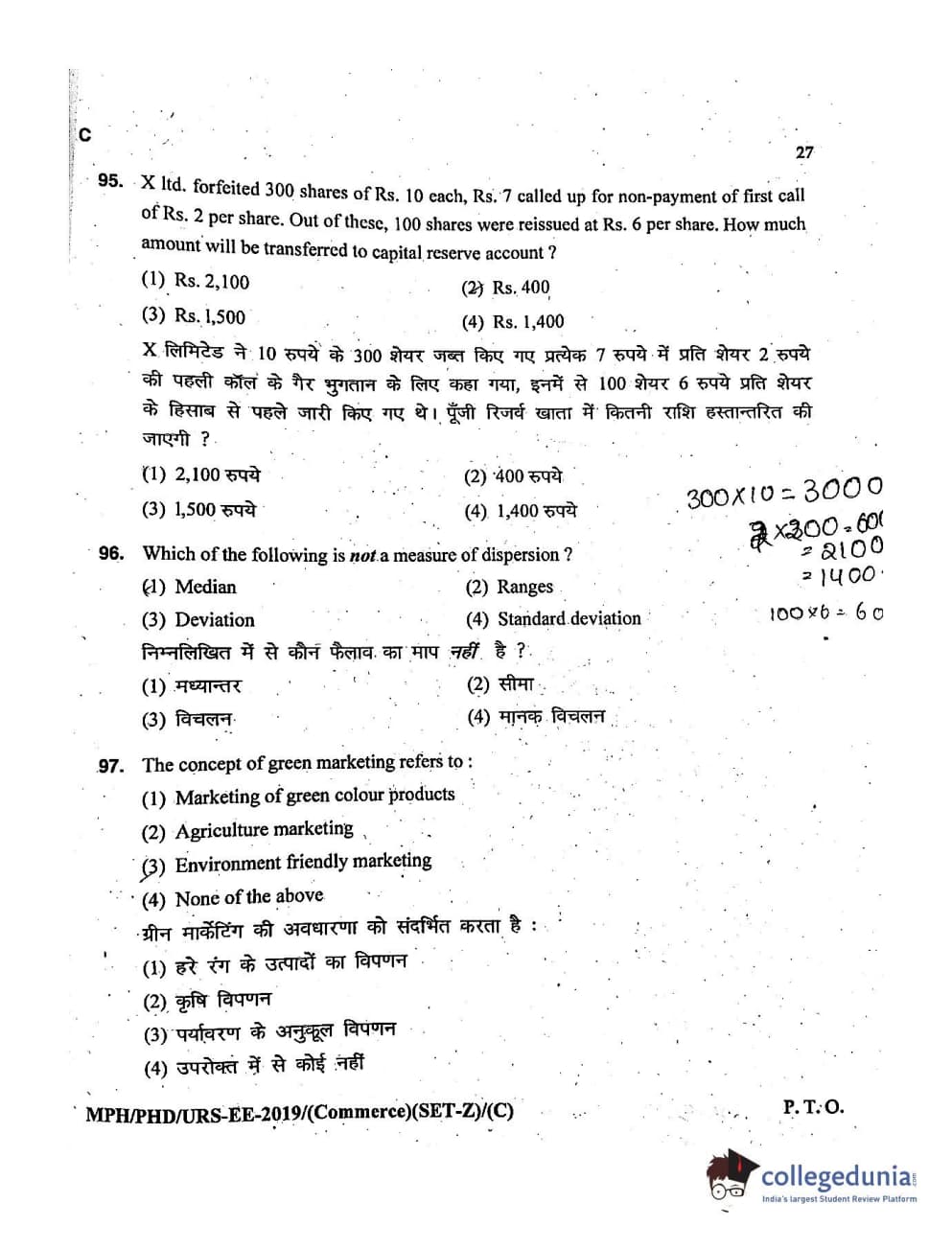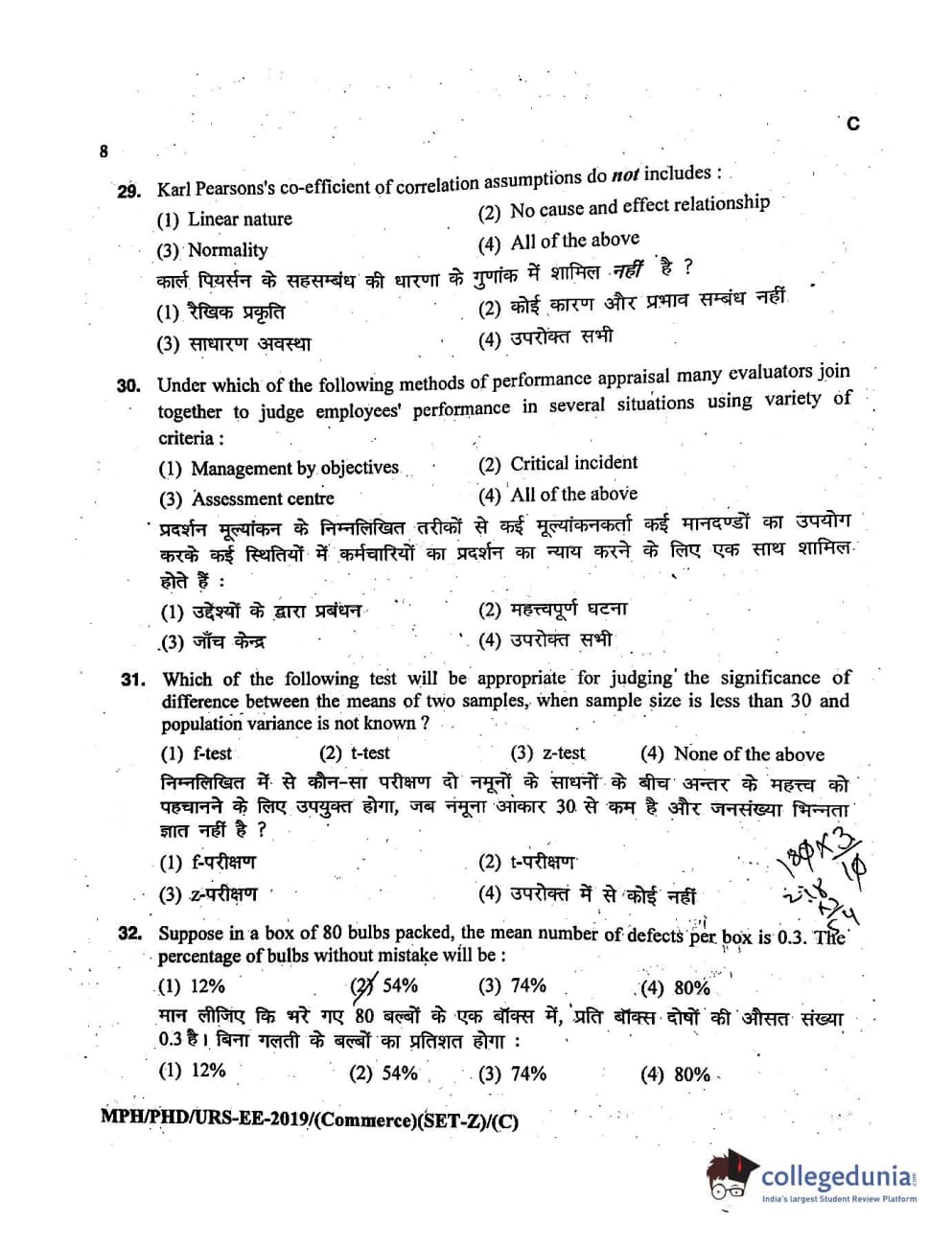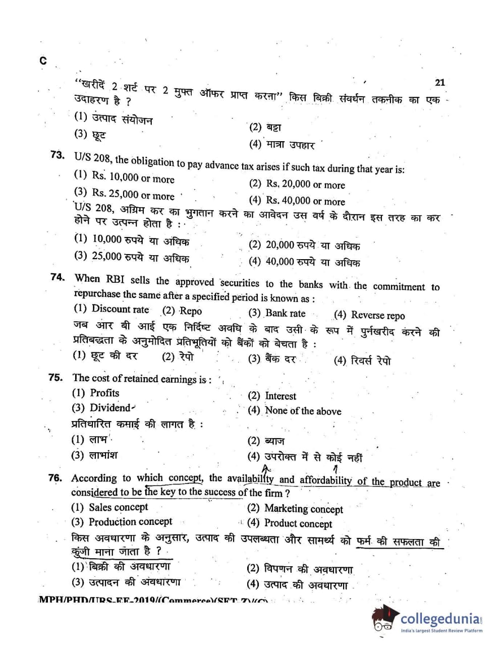 MDUCEE 2019 Ph.D./M.Phil./URS Commerce Question Paper with Answer Key PDFs