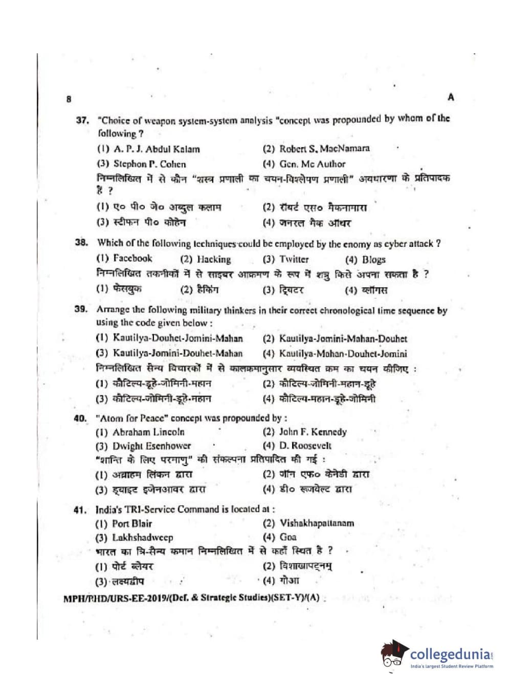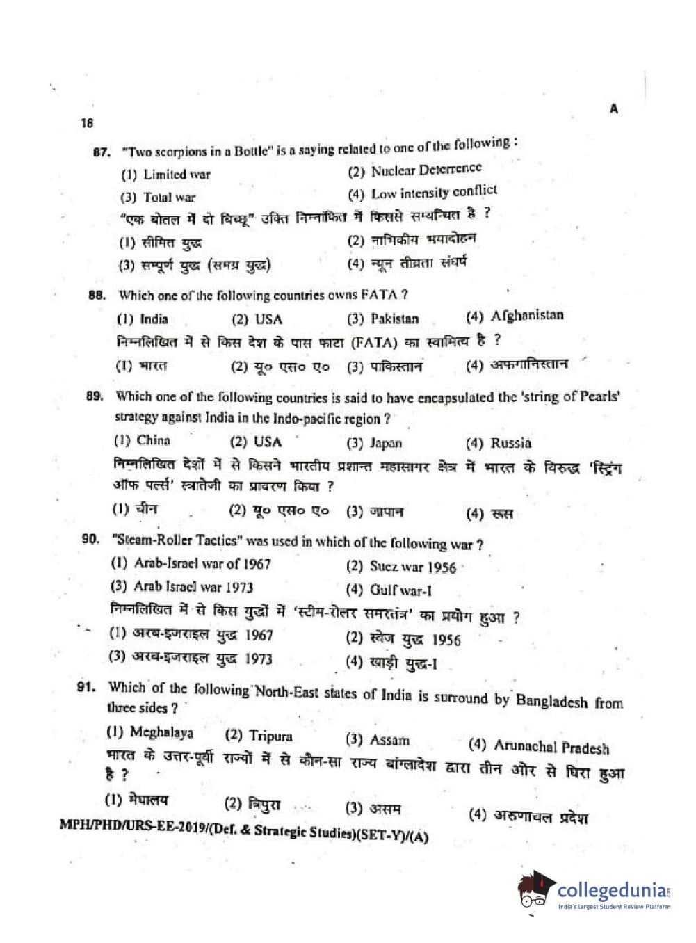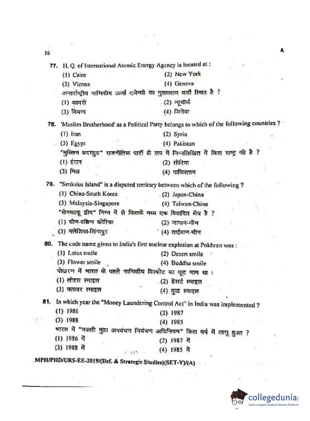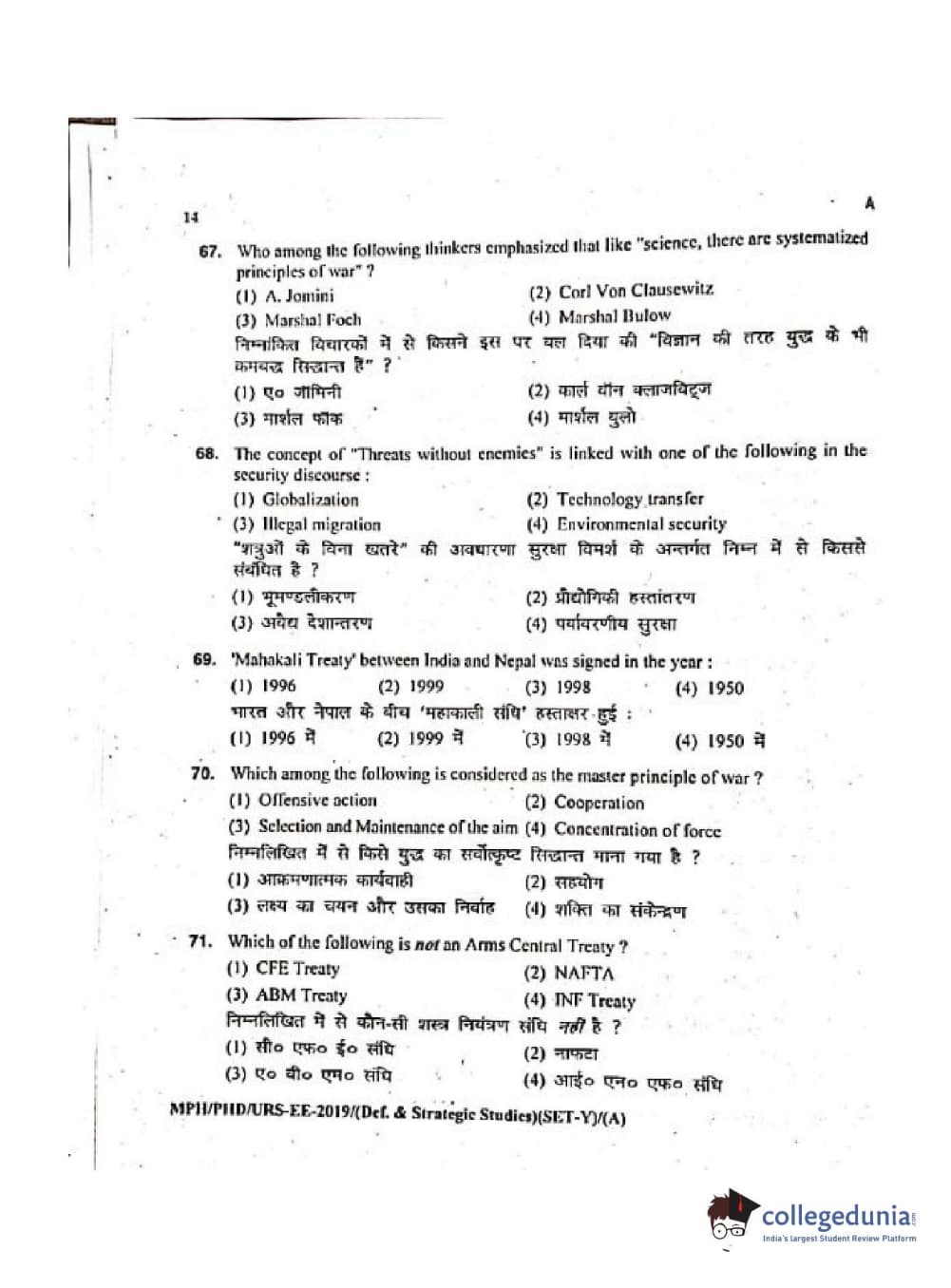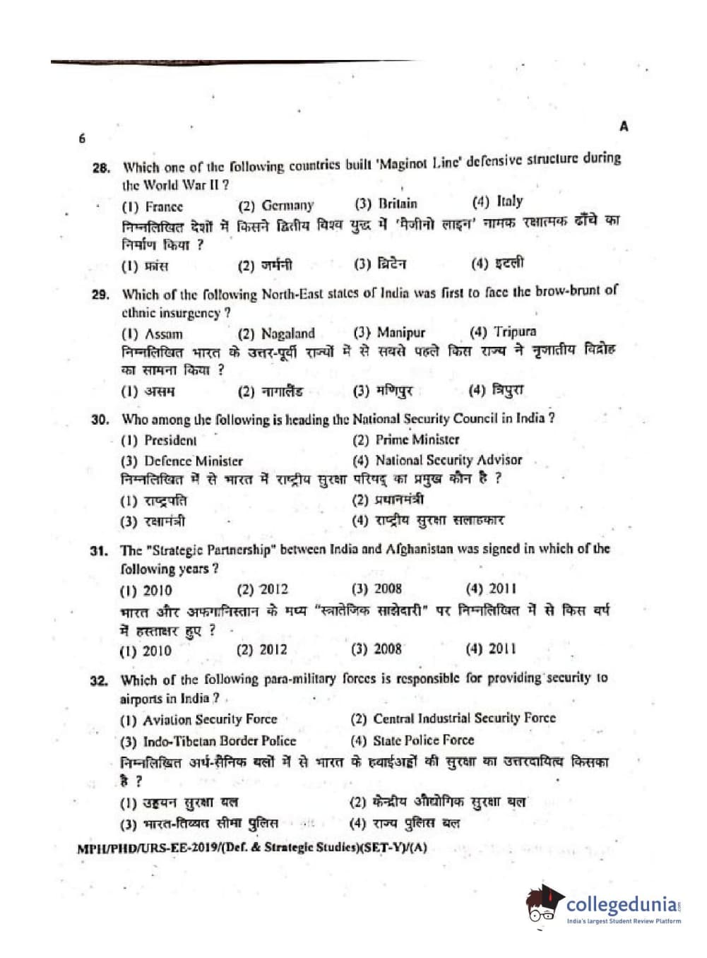 MDUCEE 2019 Ph.D./M.Phil./URS Defence Strategic Studies Set A Question Paper with Answer Key PDFs