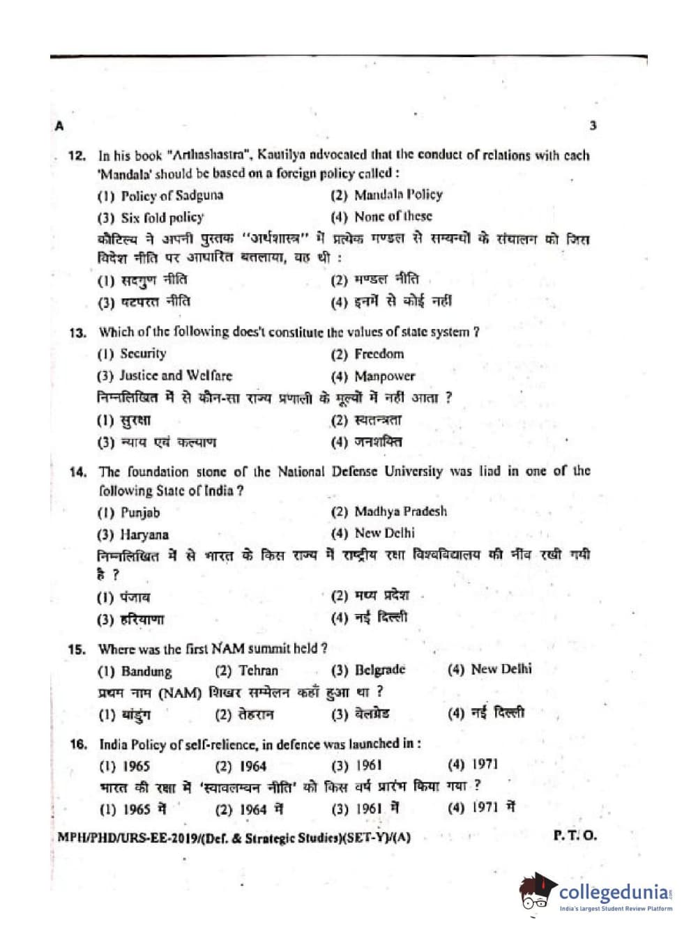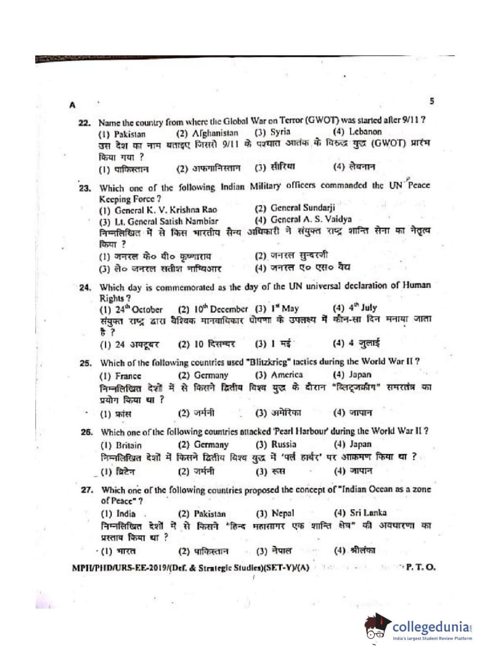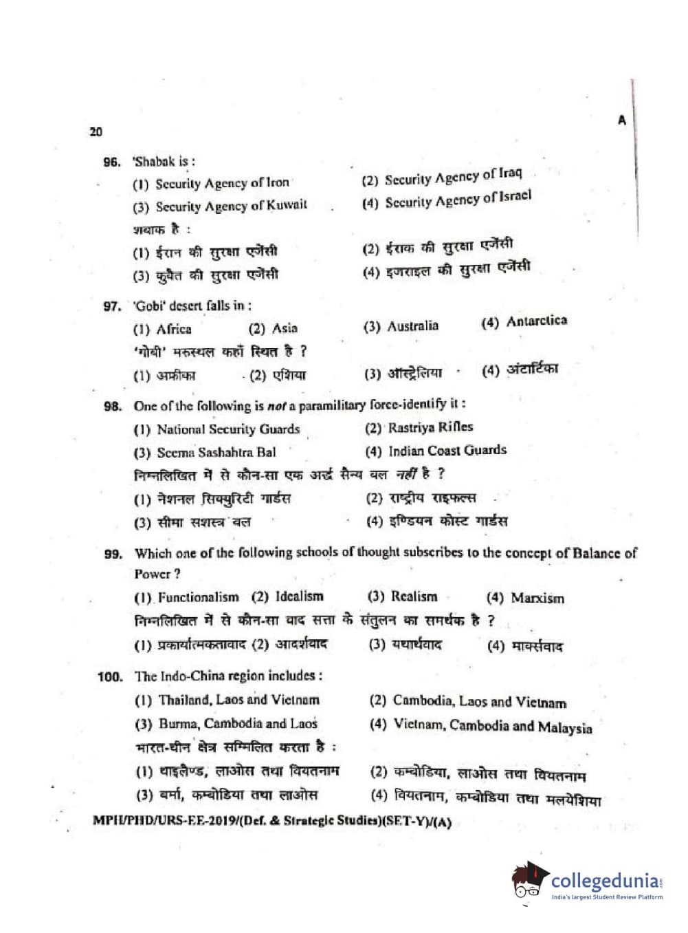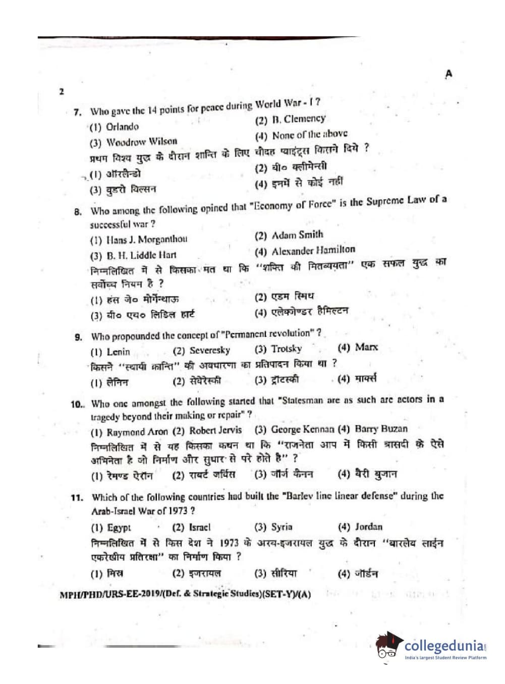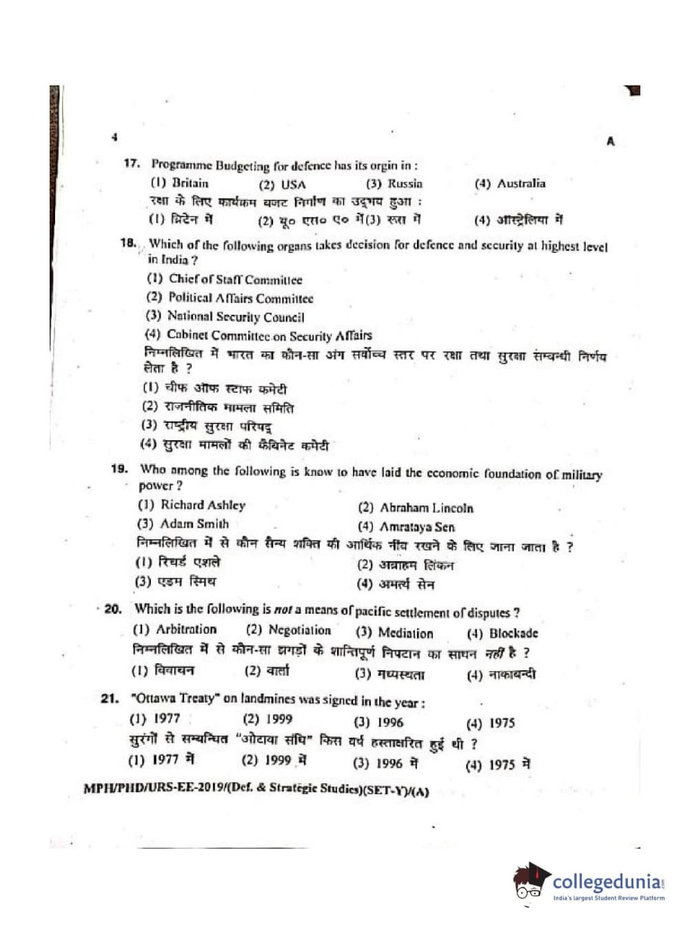 MDUCEE 2019 Ph.D./M.Phil./URS Defence Strategic Studies Set A Question Paper with Answer Key PDFs