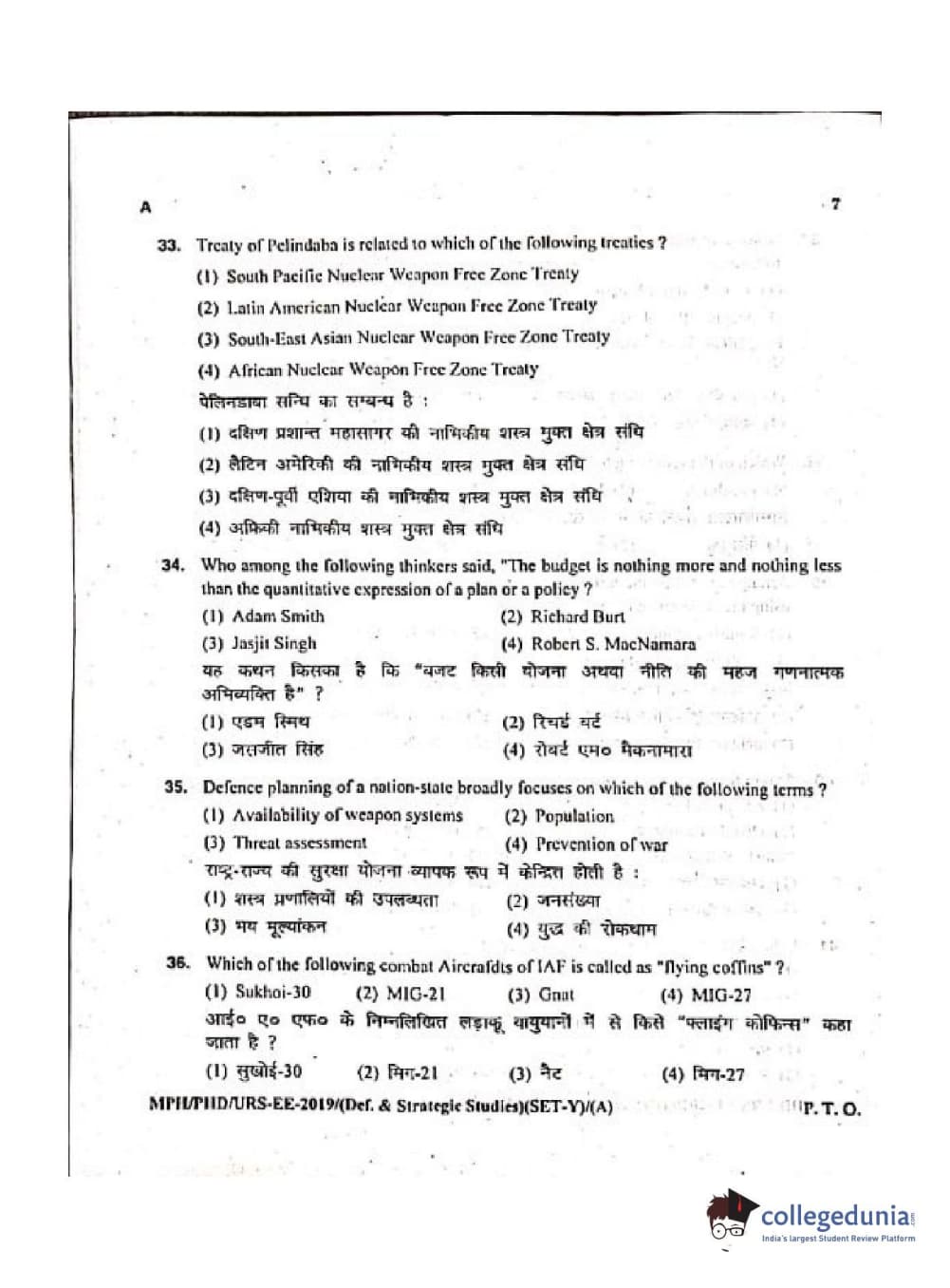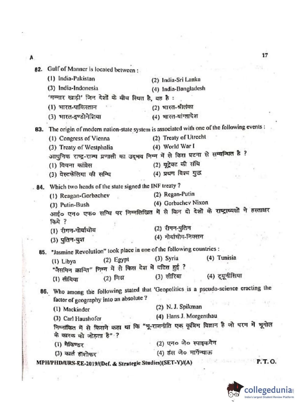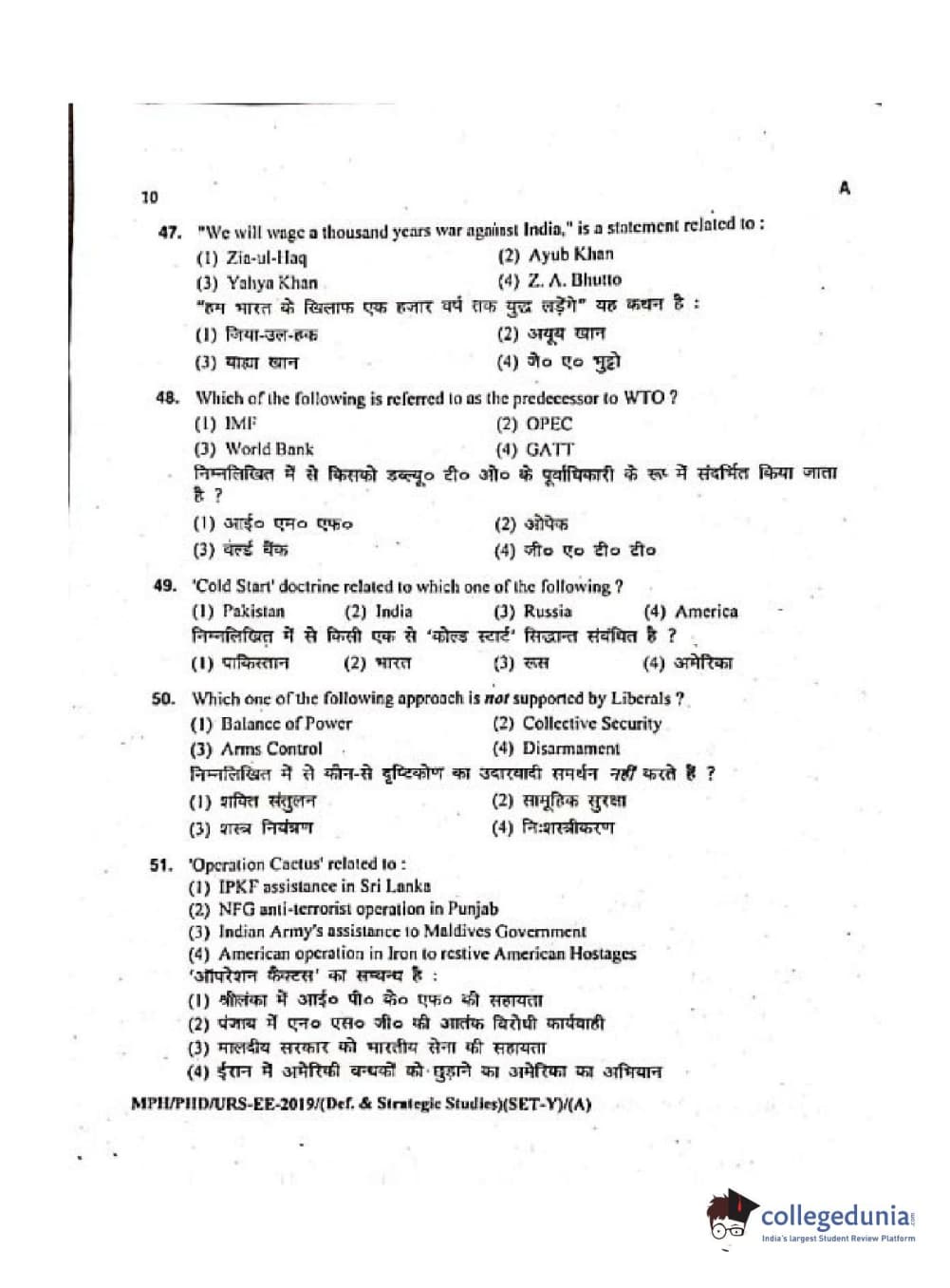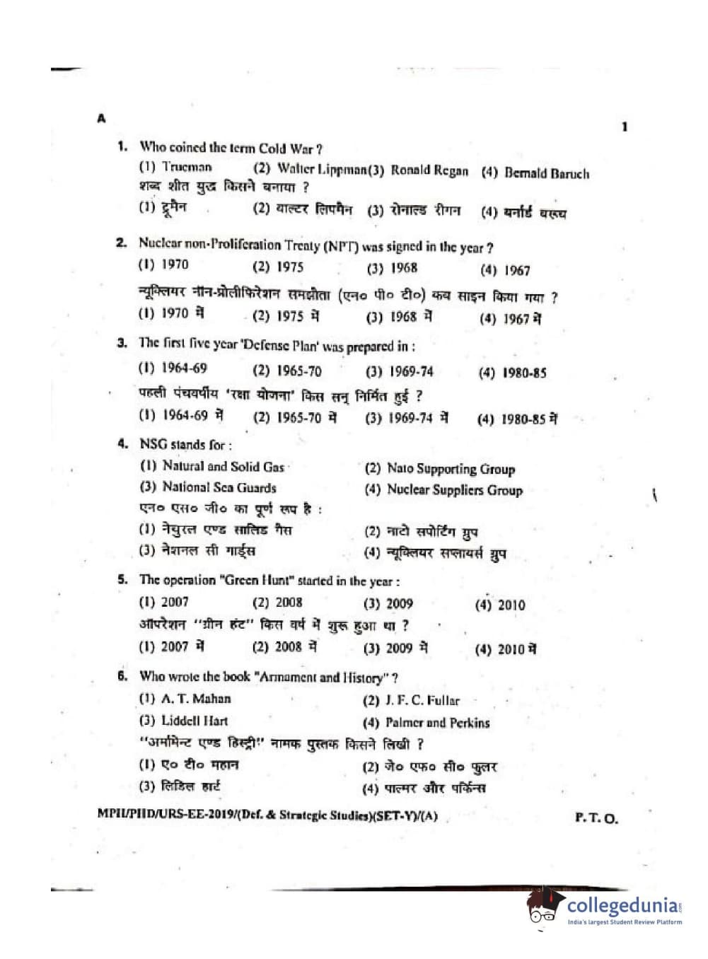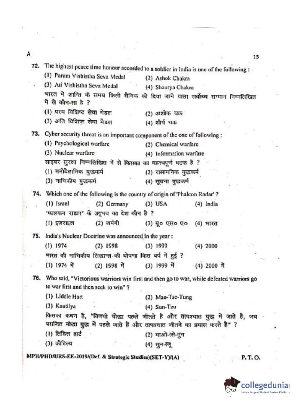 MDUCEE 2019 Ph.D./M.Phil./URS Defence Strategic Studies Set A Question Paper with Answer Key PDFs