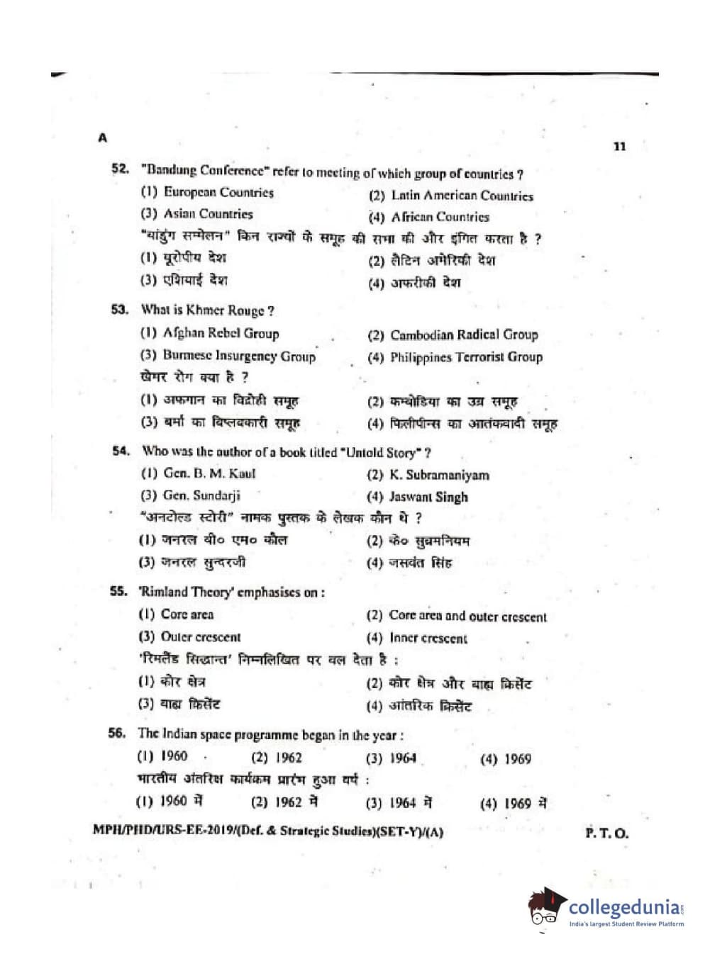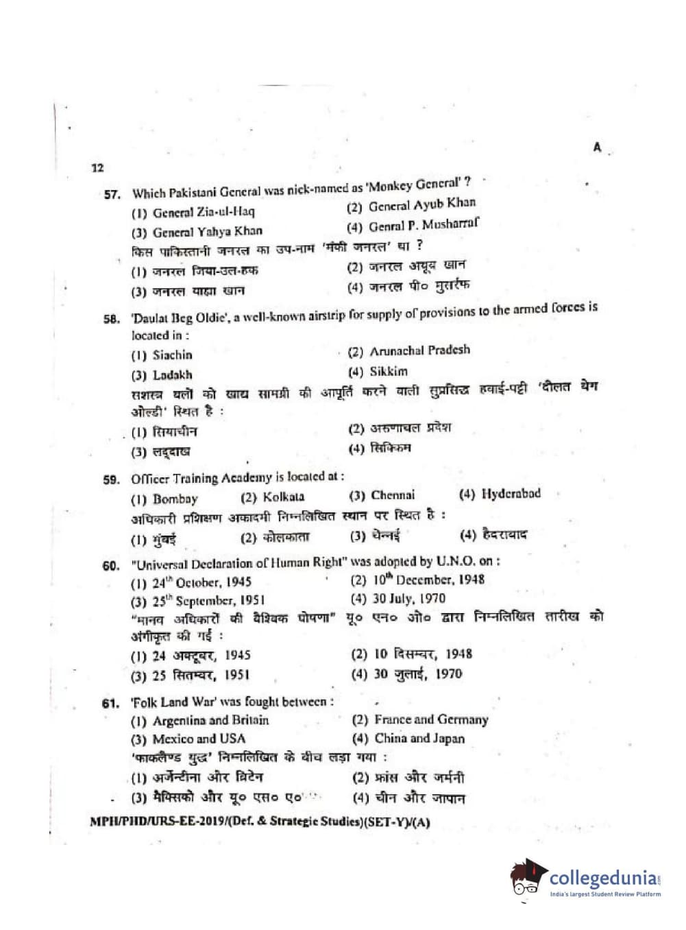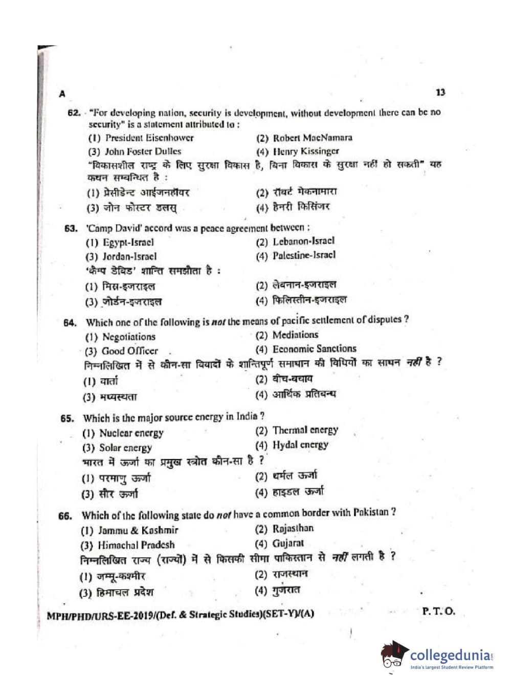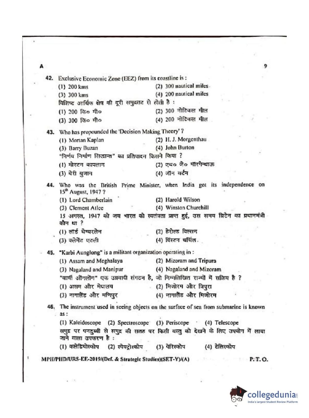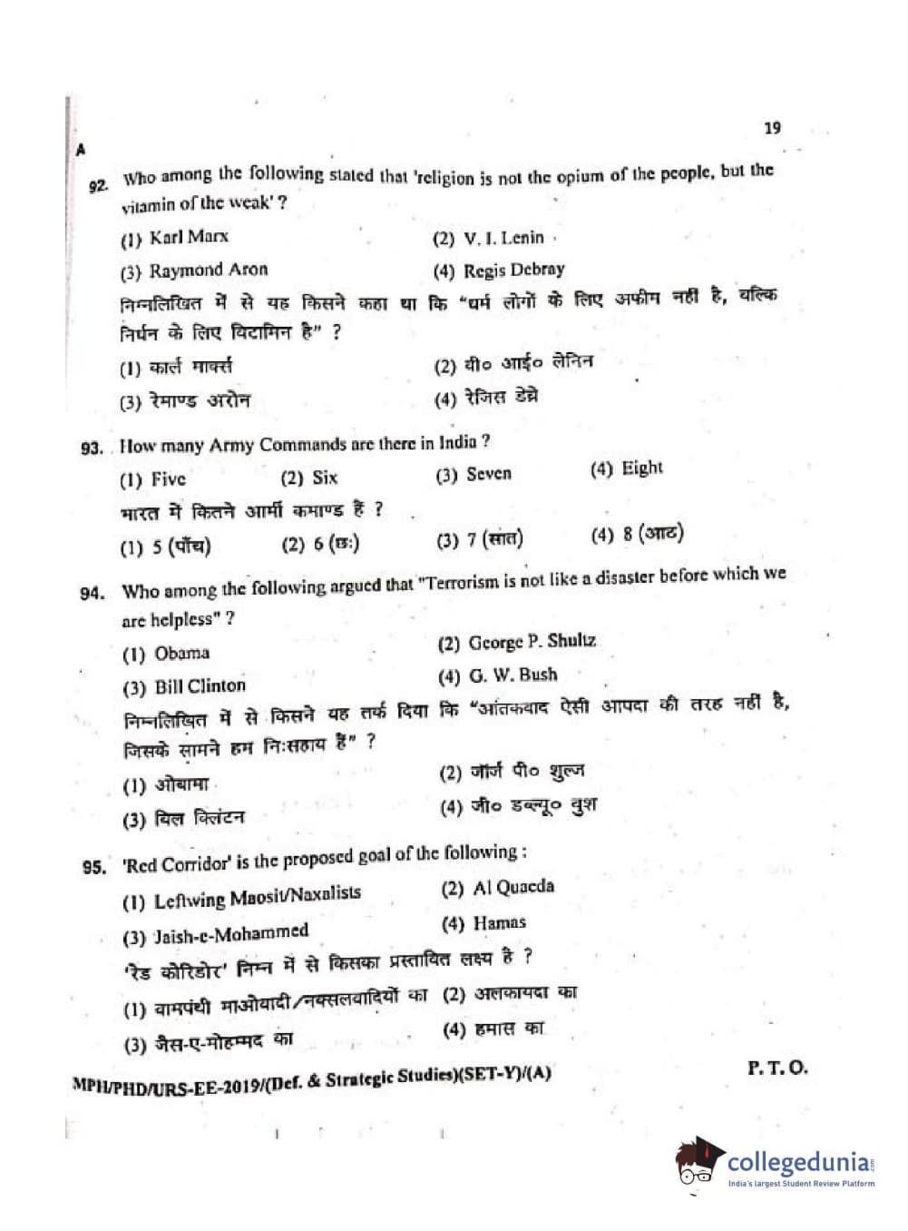 MDUCEE 2019 Ph.D./M.Phil./URS Defence Strategic Studies Set A Question Paper with Answer Key PDFs