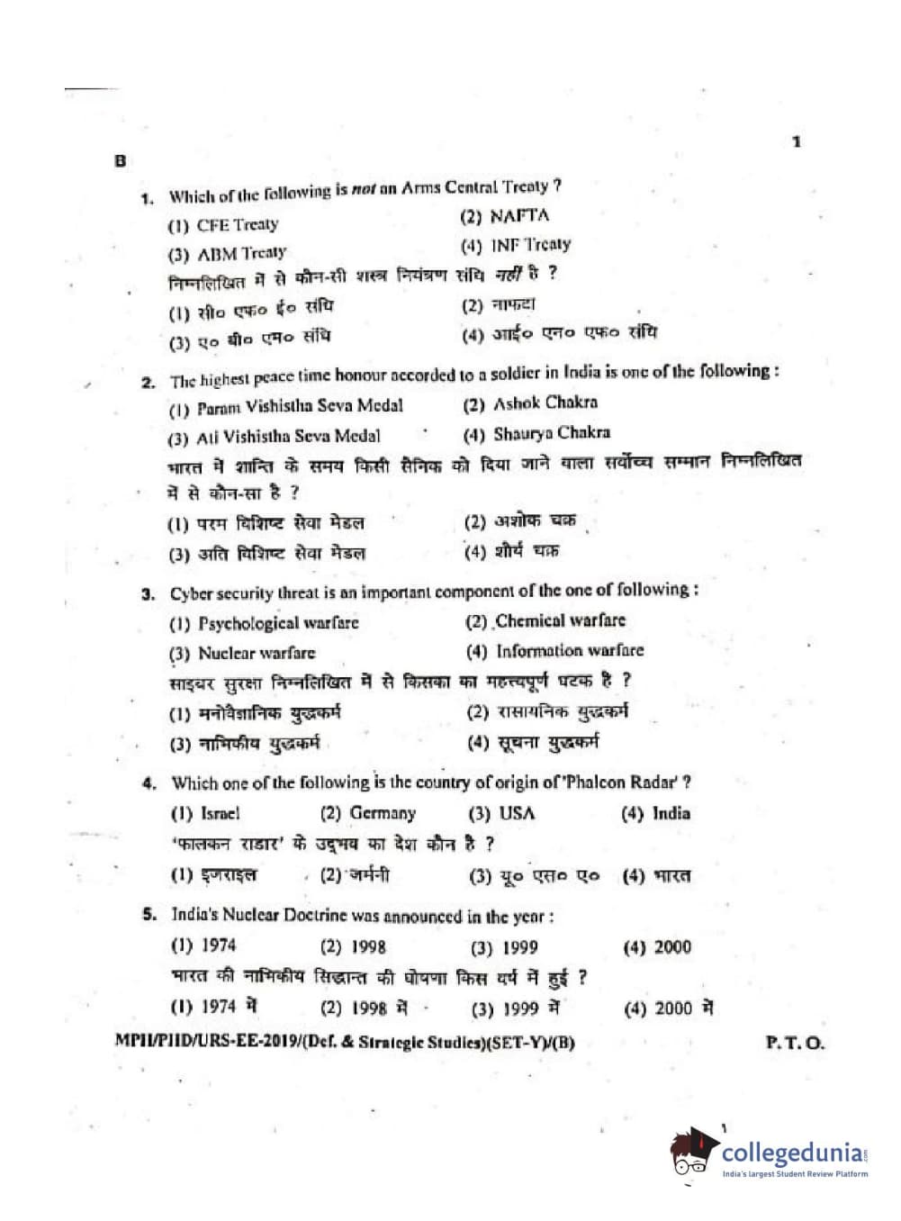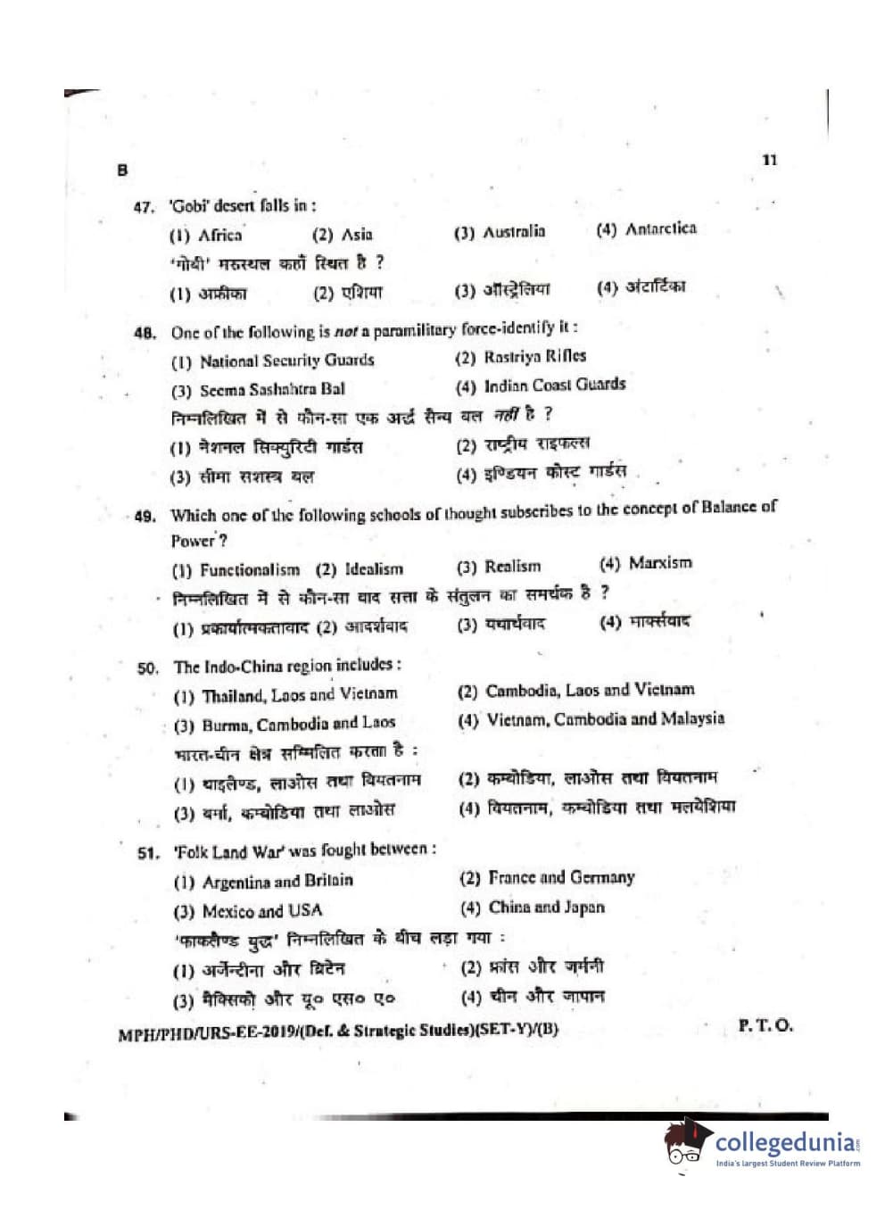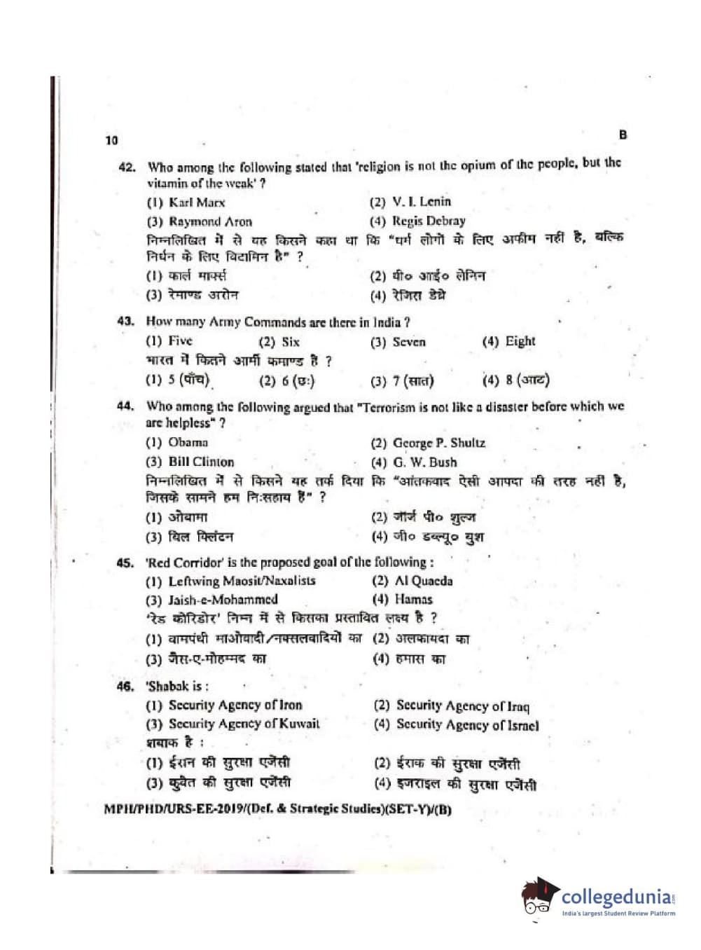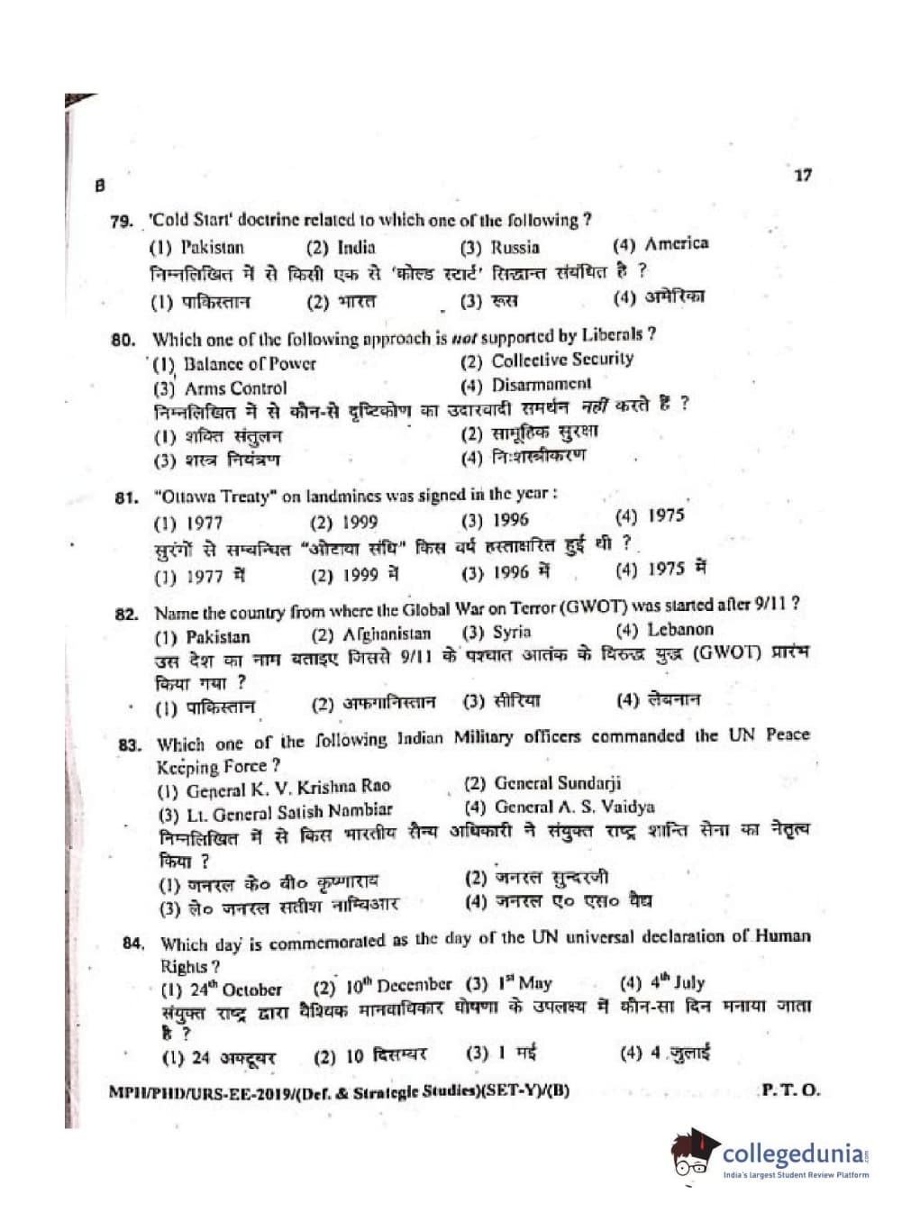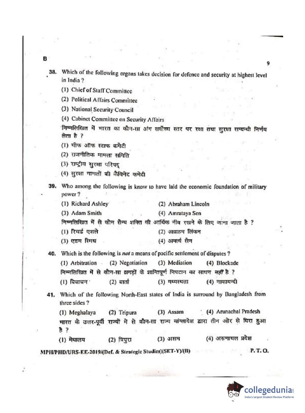 MDUCEE 2019 Ph.D./M.Phil./URS Defence Strategic Studies Set B Question Paper with Answer Key PDFs