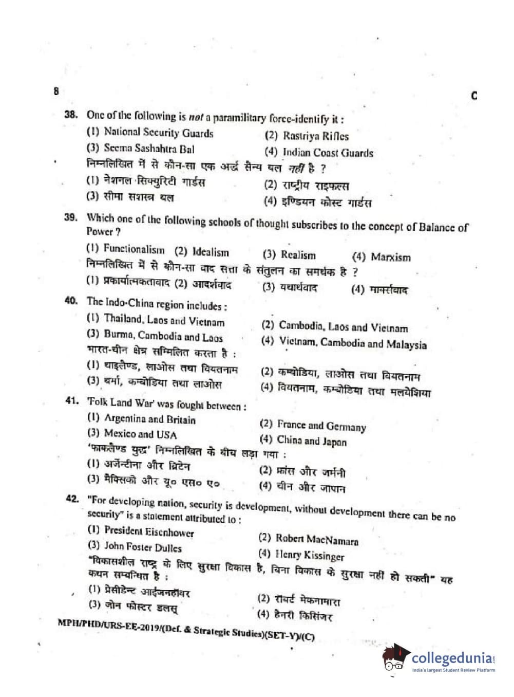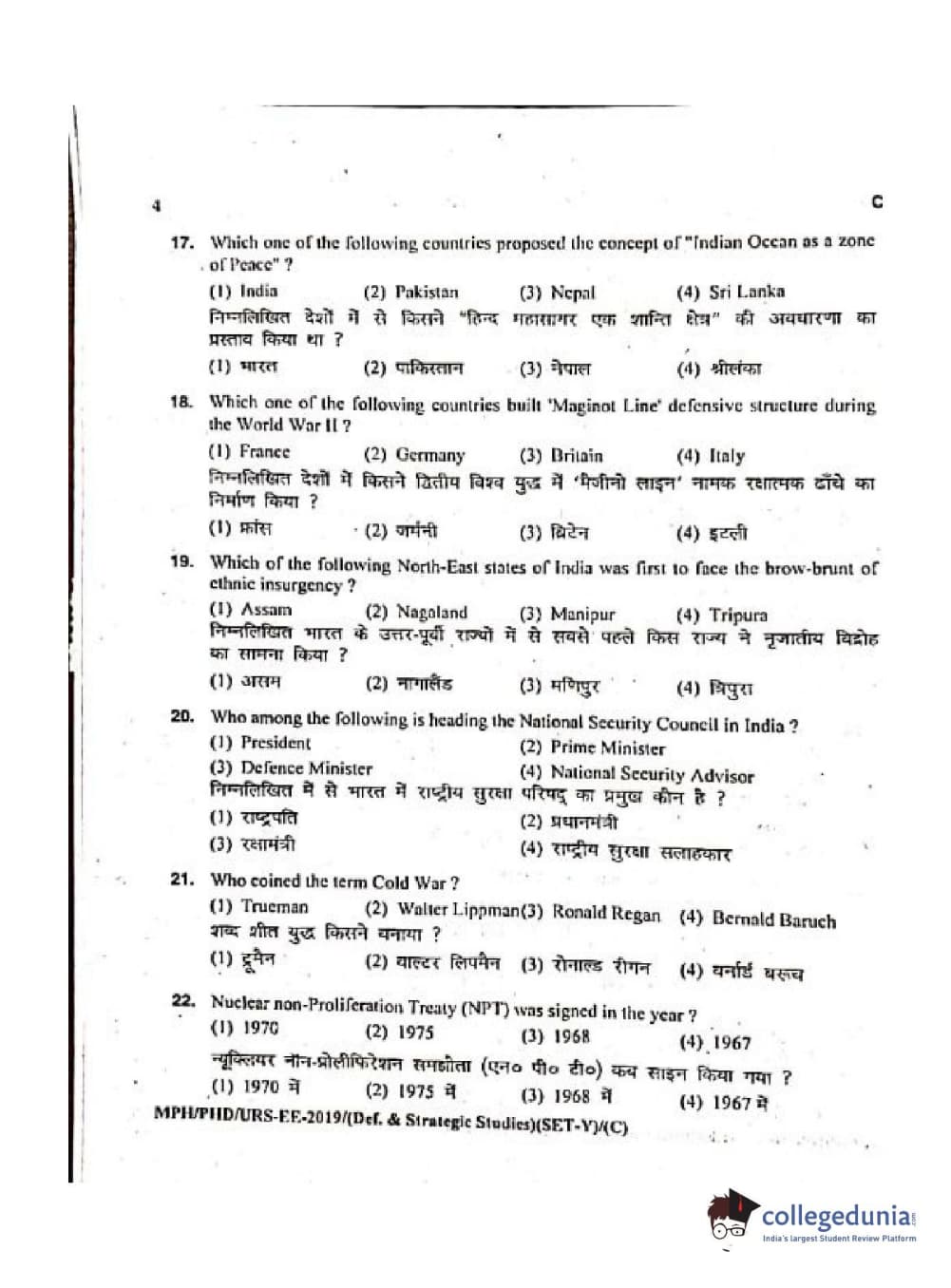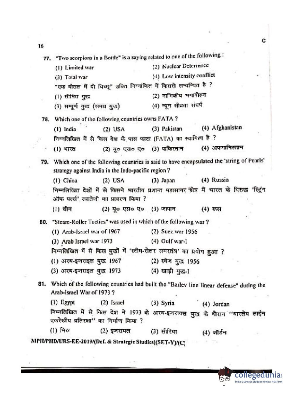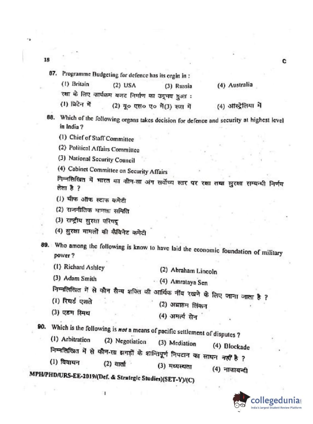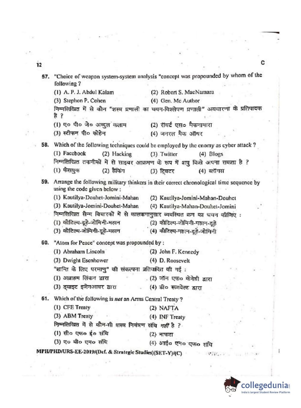 MDUCEE 2019 Ph.D./M.Phil./URS Defence Strategic Studies Set C Question Paper with Answer Key PDFs