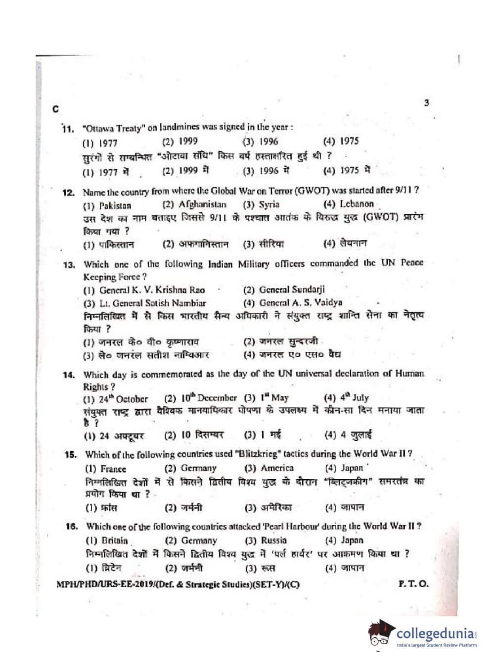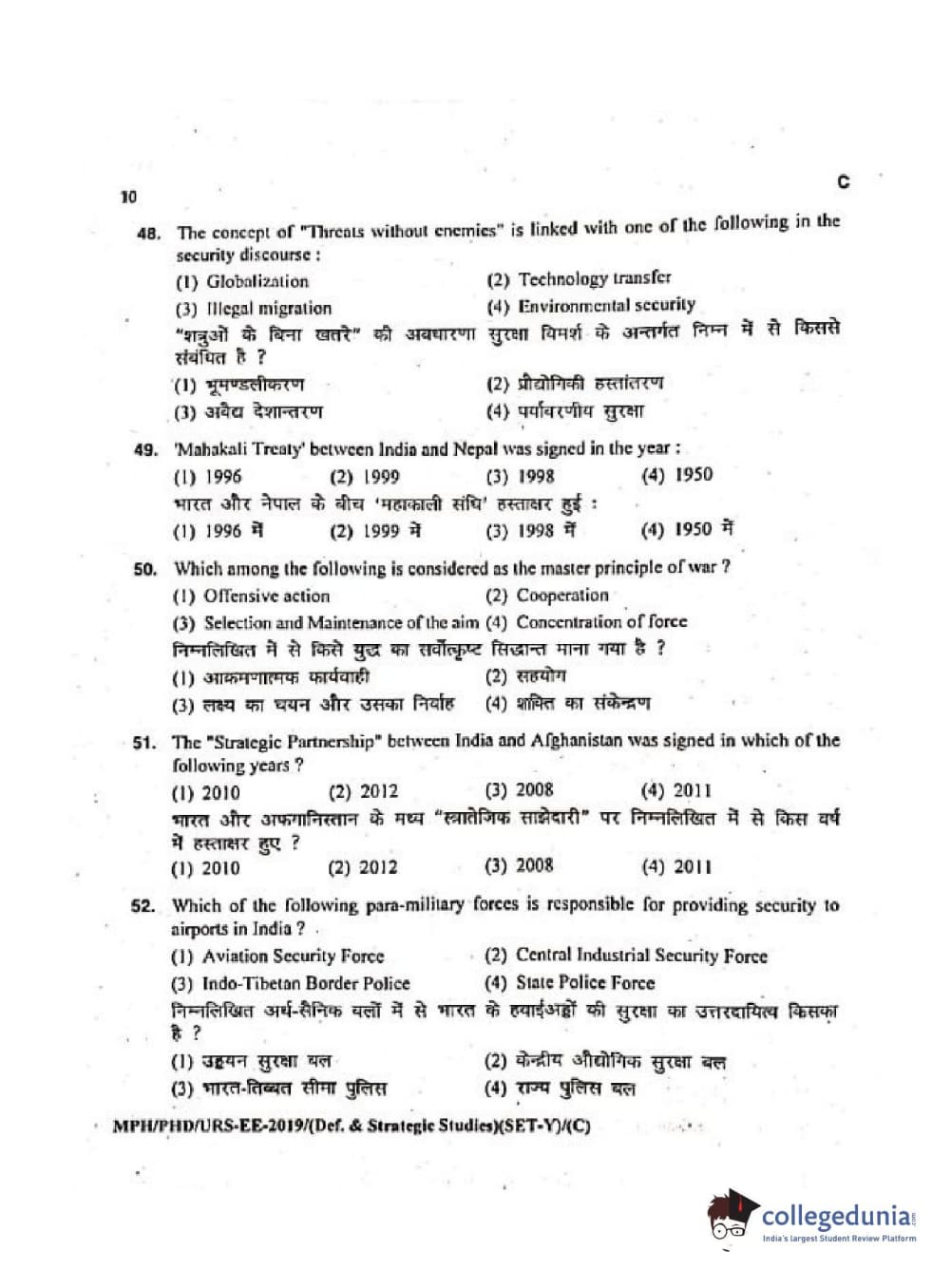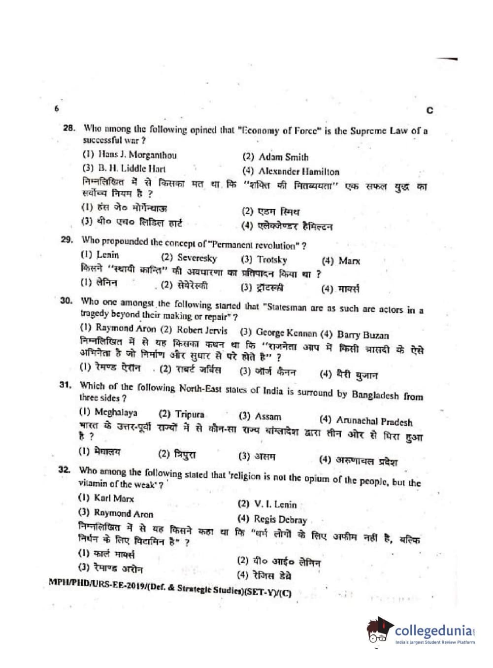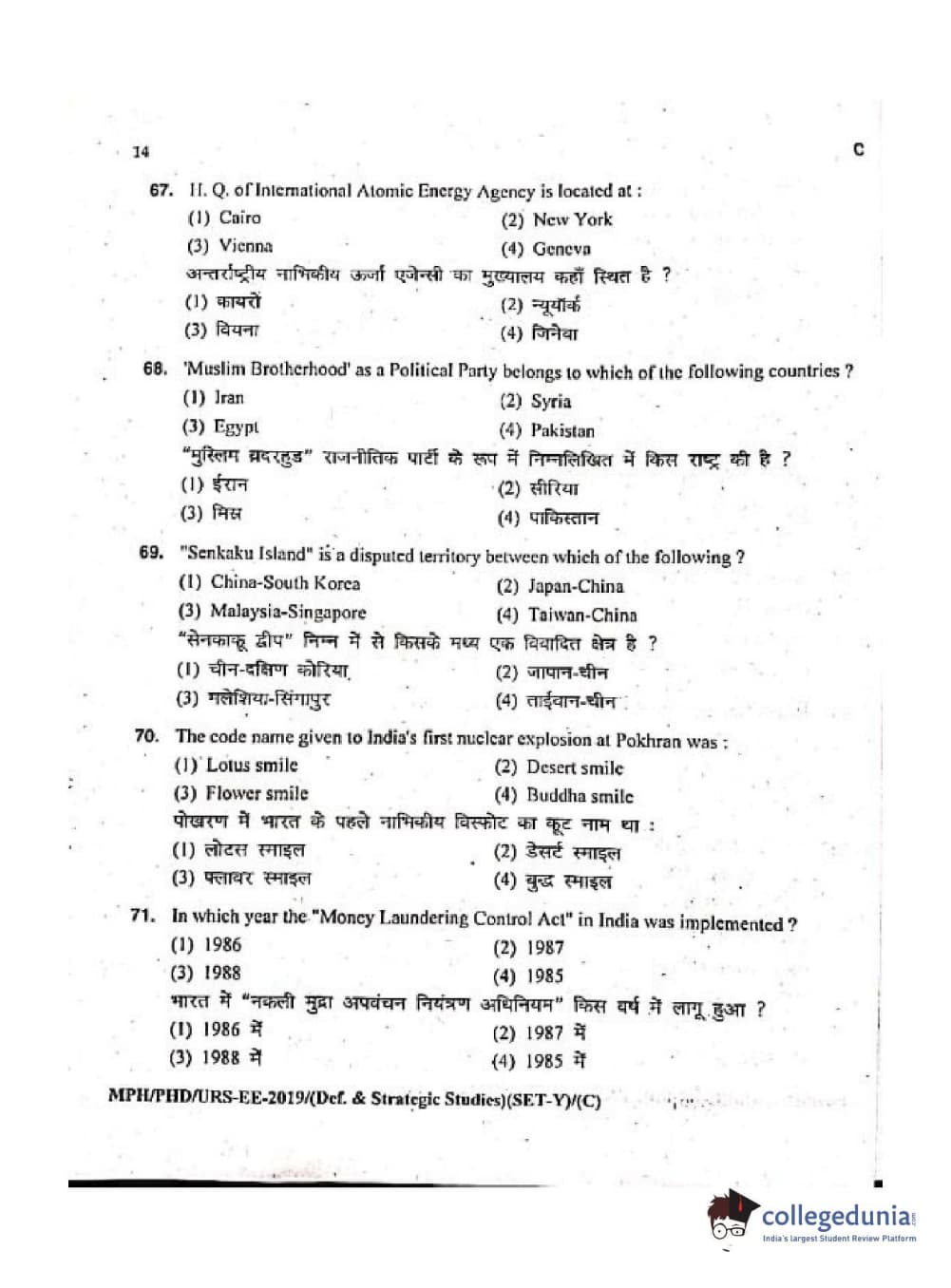 MDUCEE 2019 Ph.D./M.Phil./URS Defence Strategic Studies Set C Question Paper with Answer Key PDFs