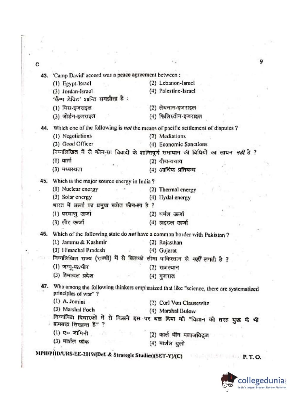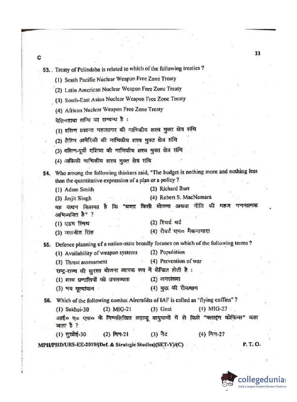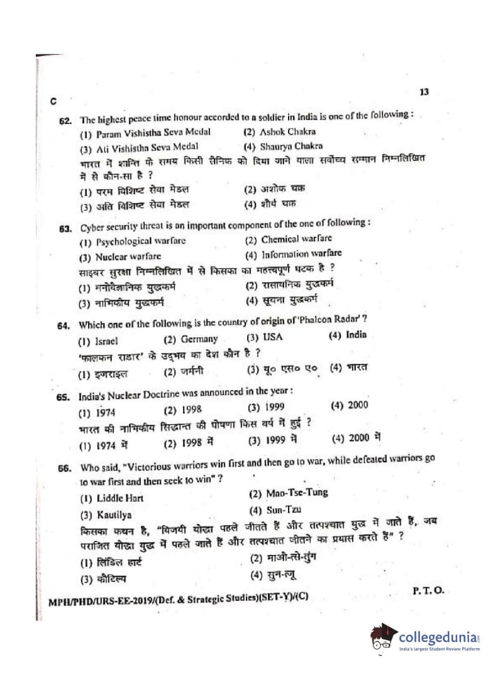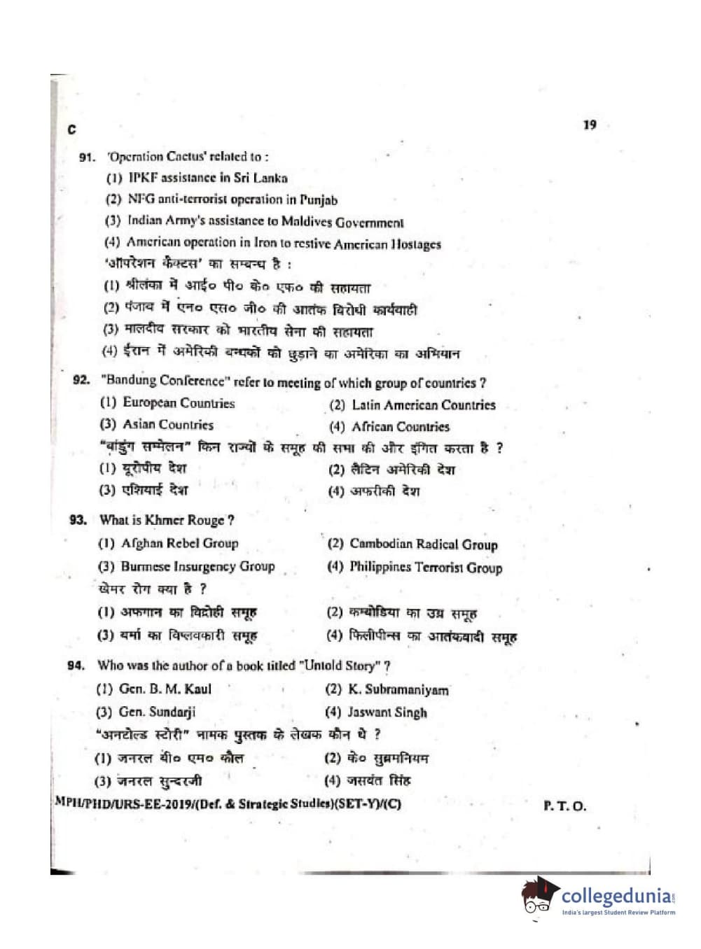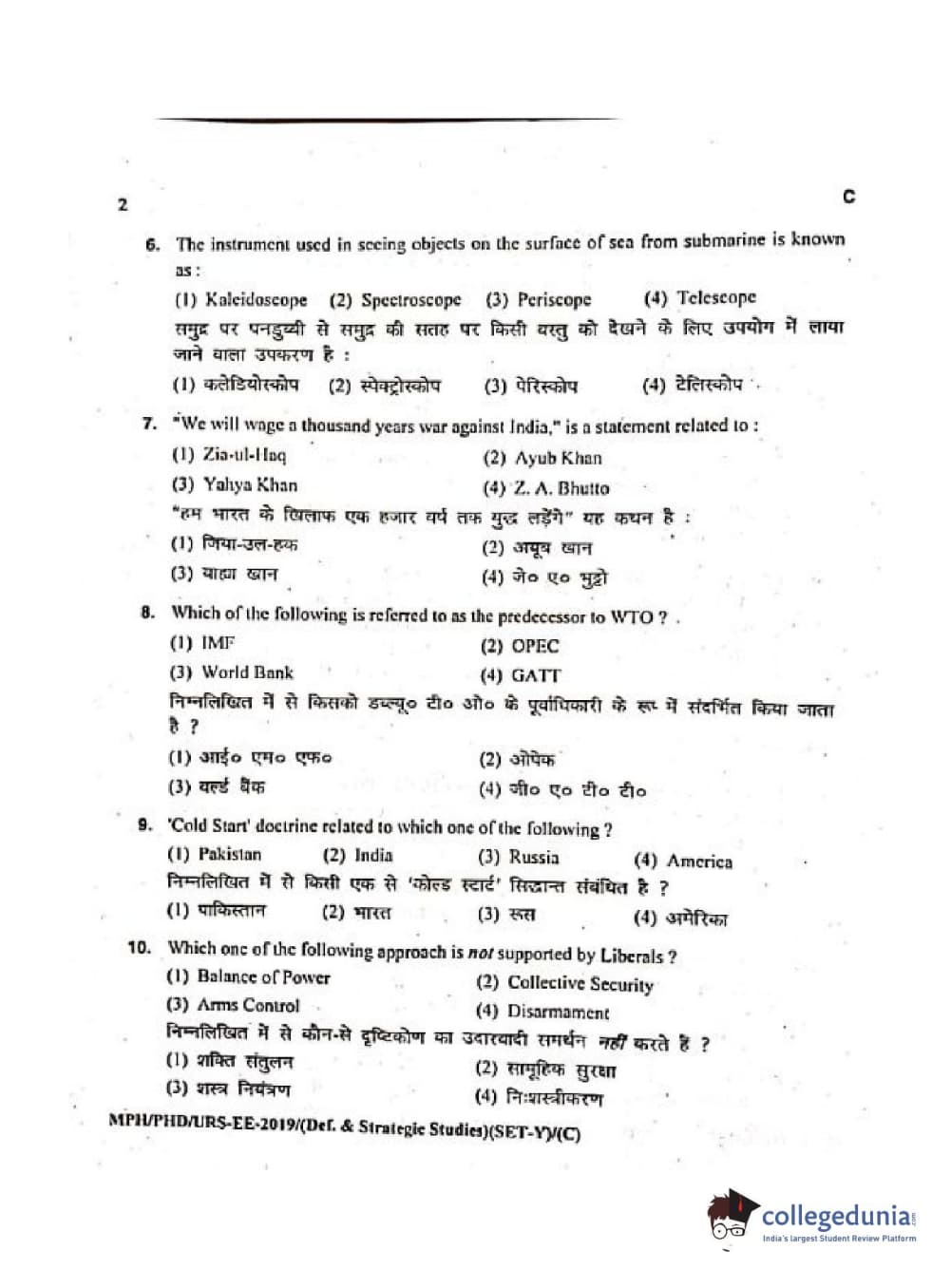 MDUCEE 2019 Ph.D./M.Phil./URS Defence Strategic Studies Set C Question Paper with Answer Key PDFs