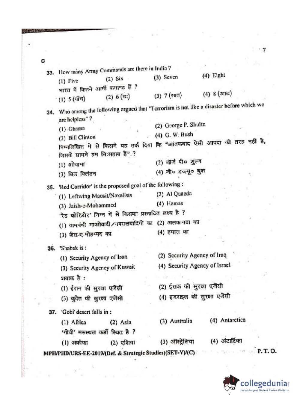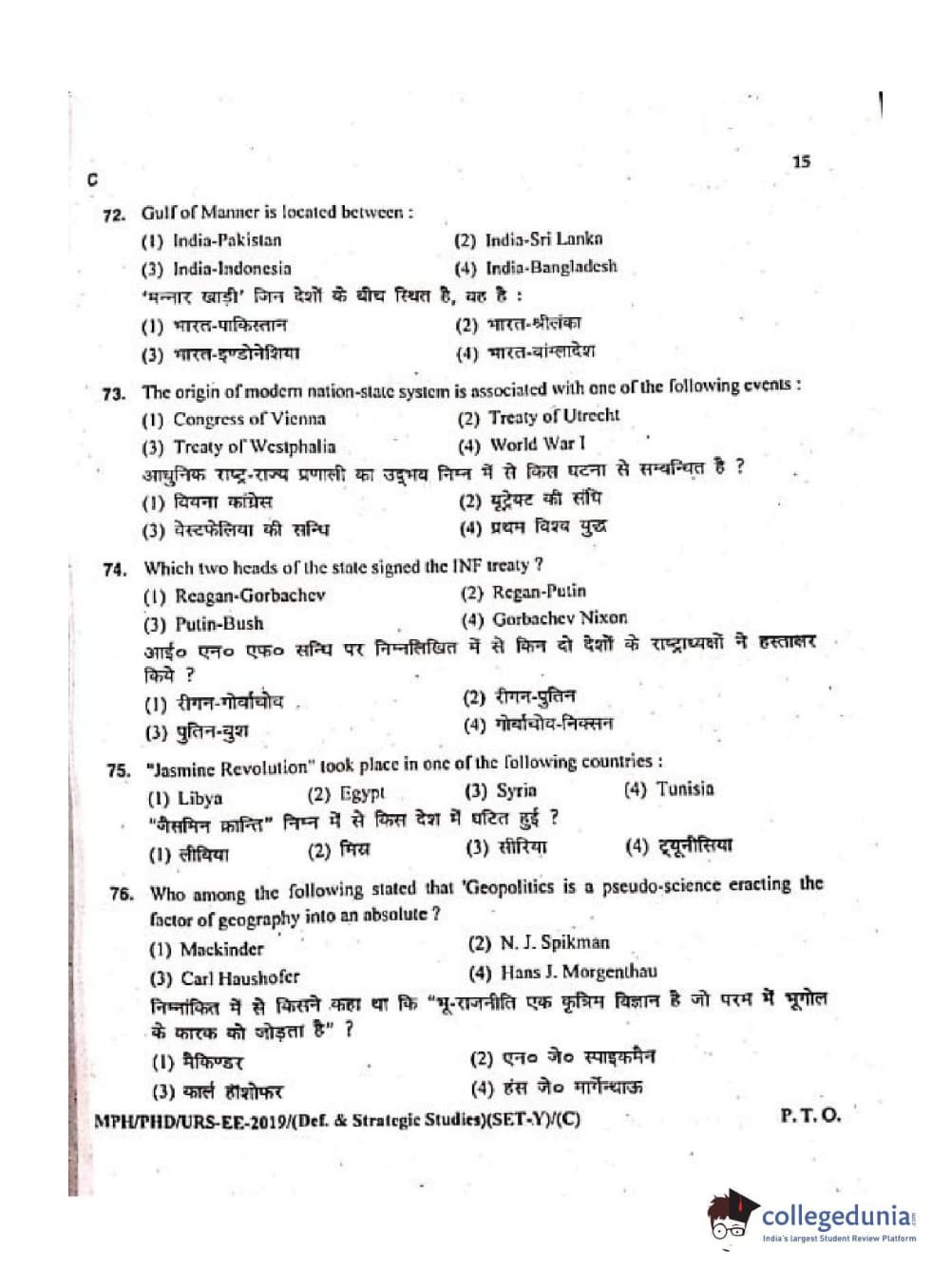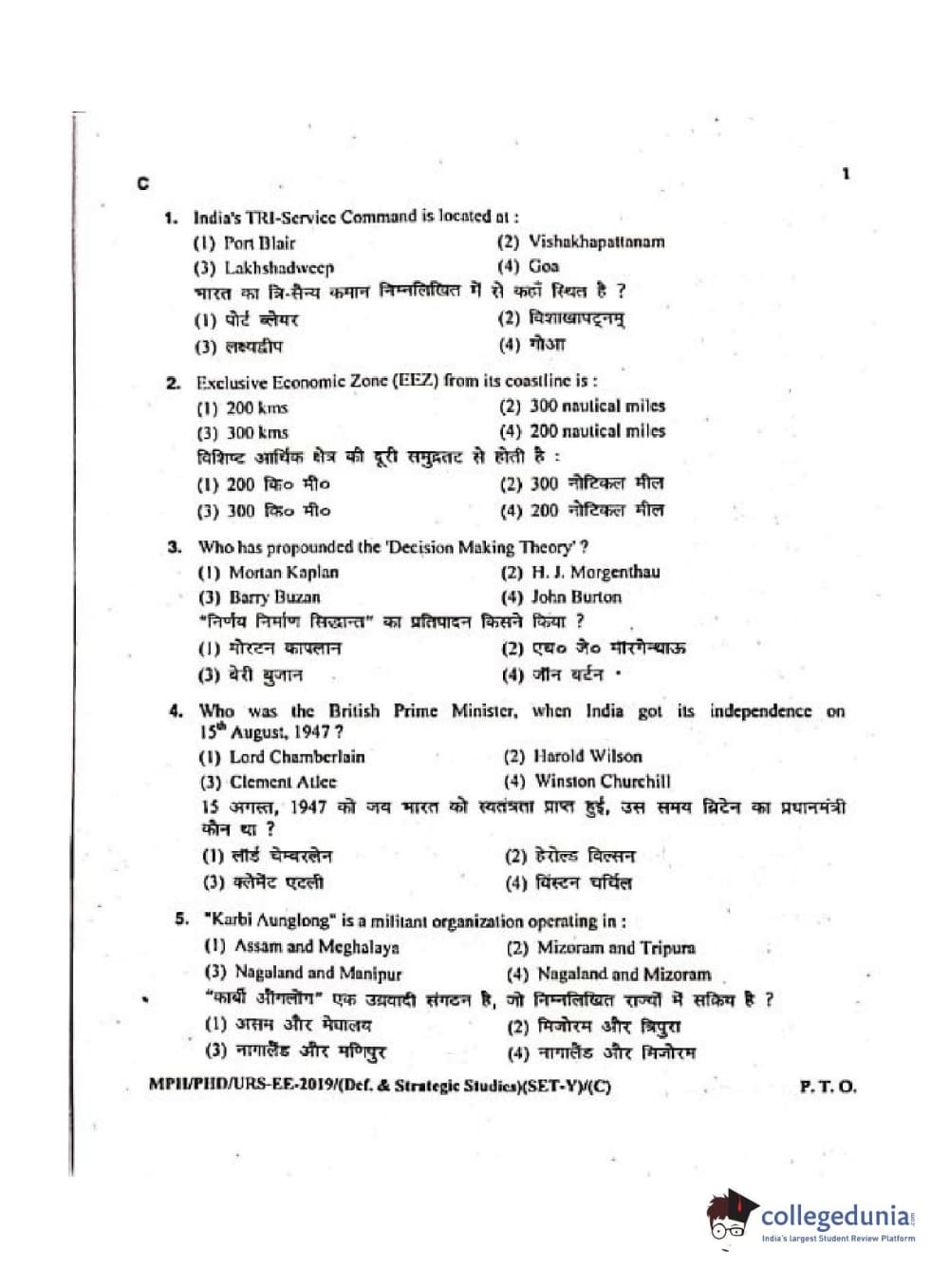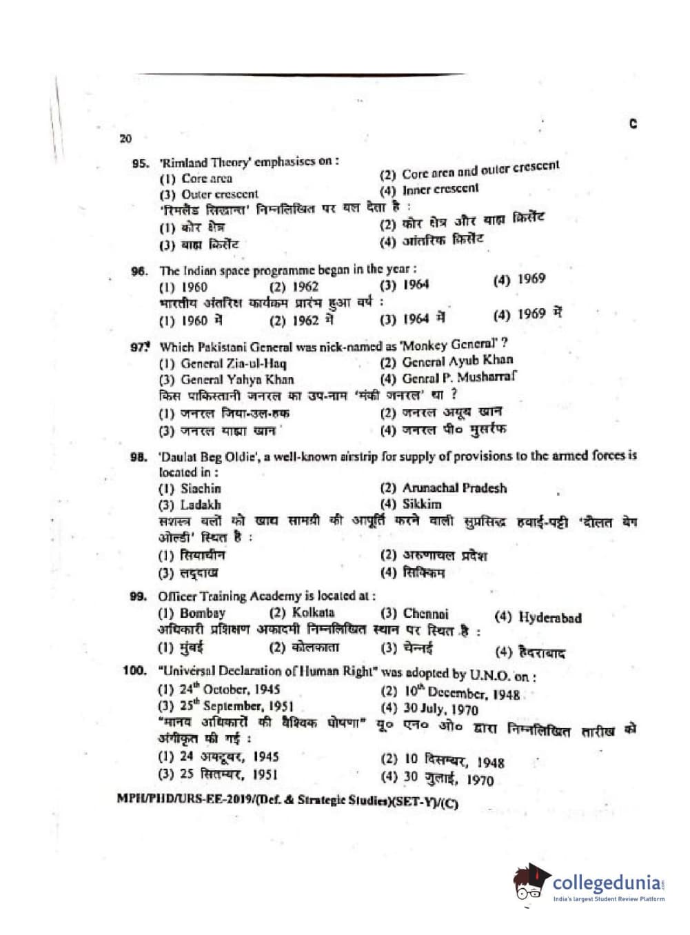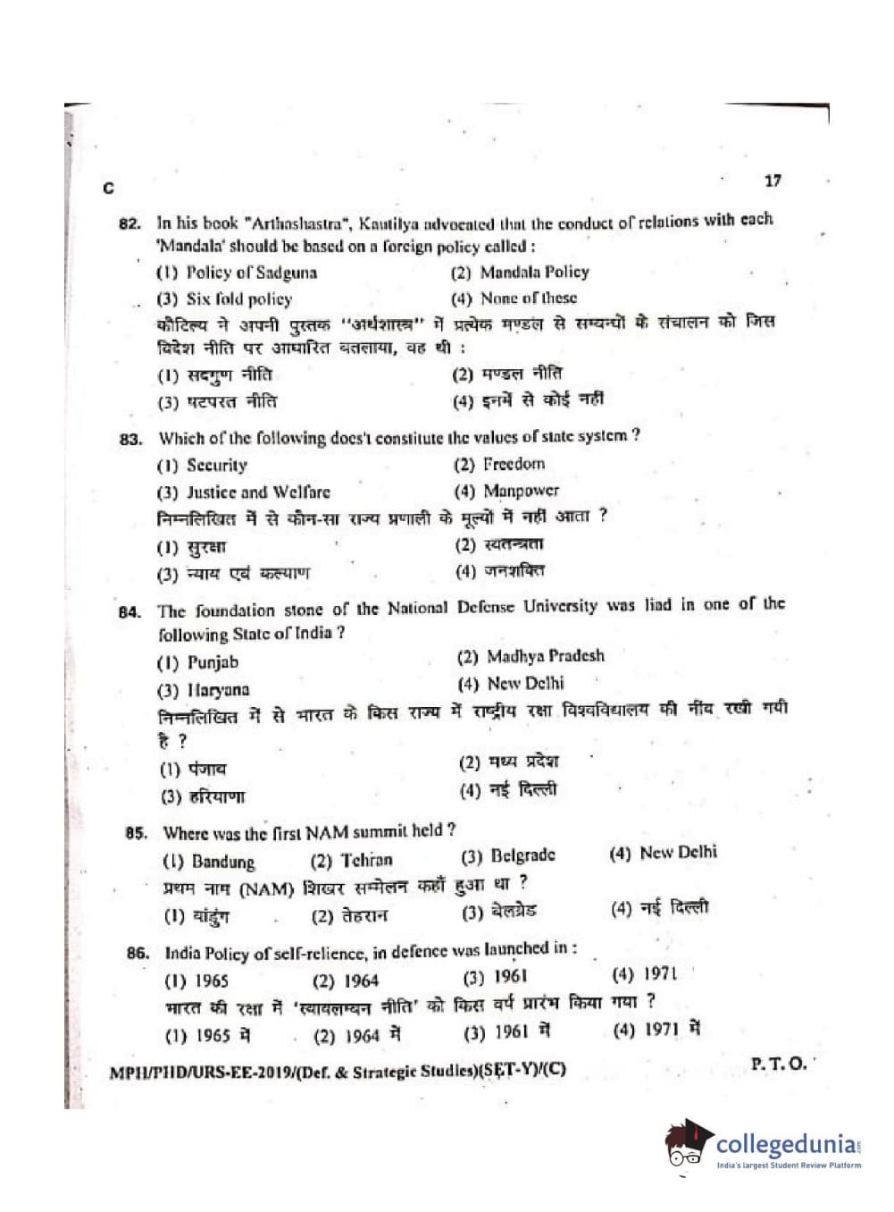 MDUCEE 2019 Ph.D./M.Phil./URS Defence Strategic Studies Set C Question Paper with Answer Key PDFs