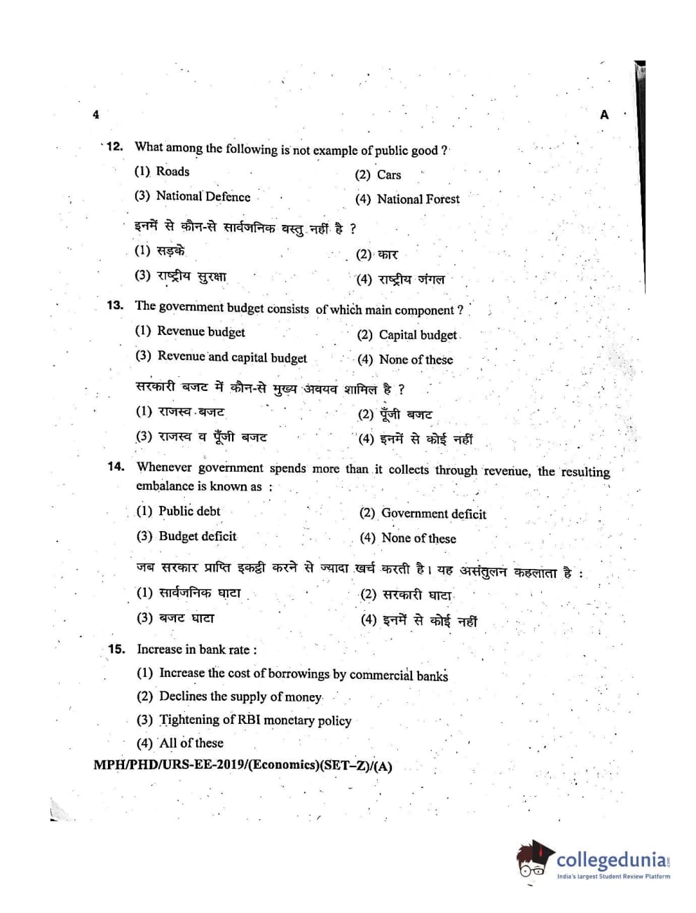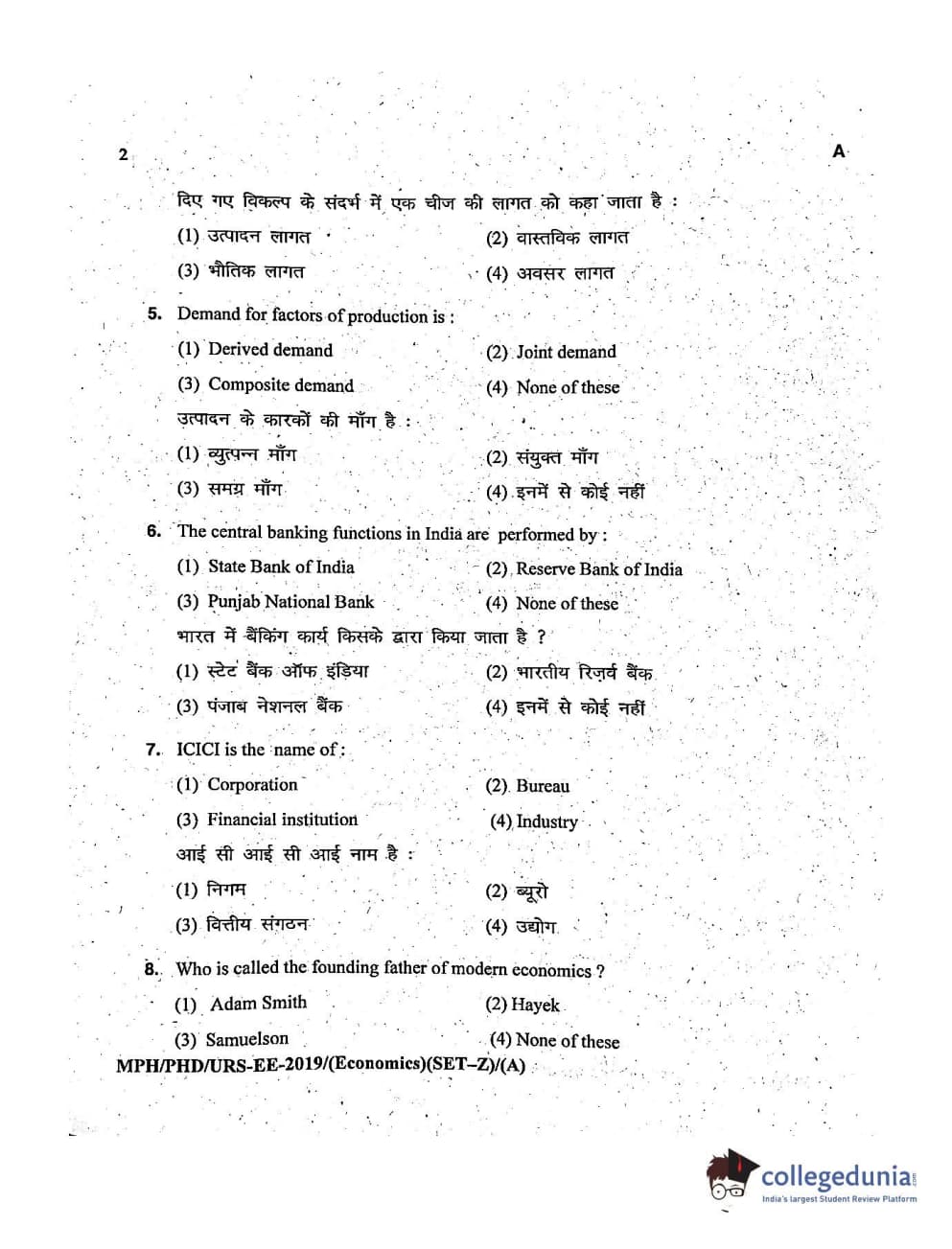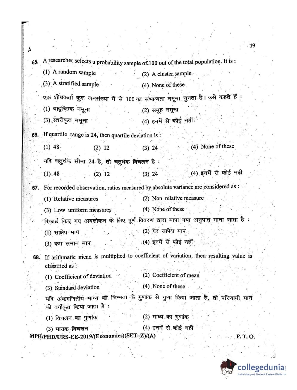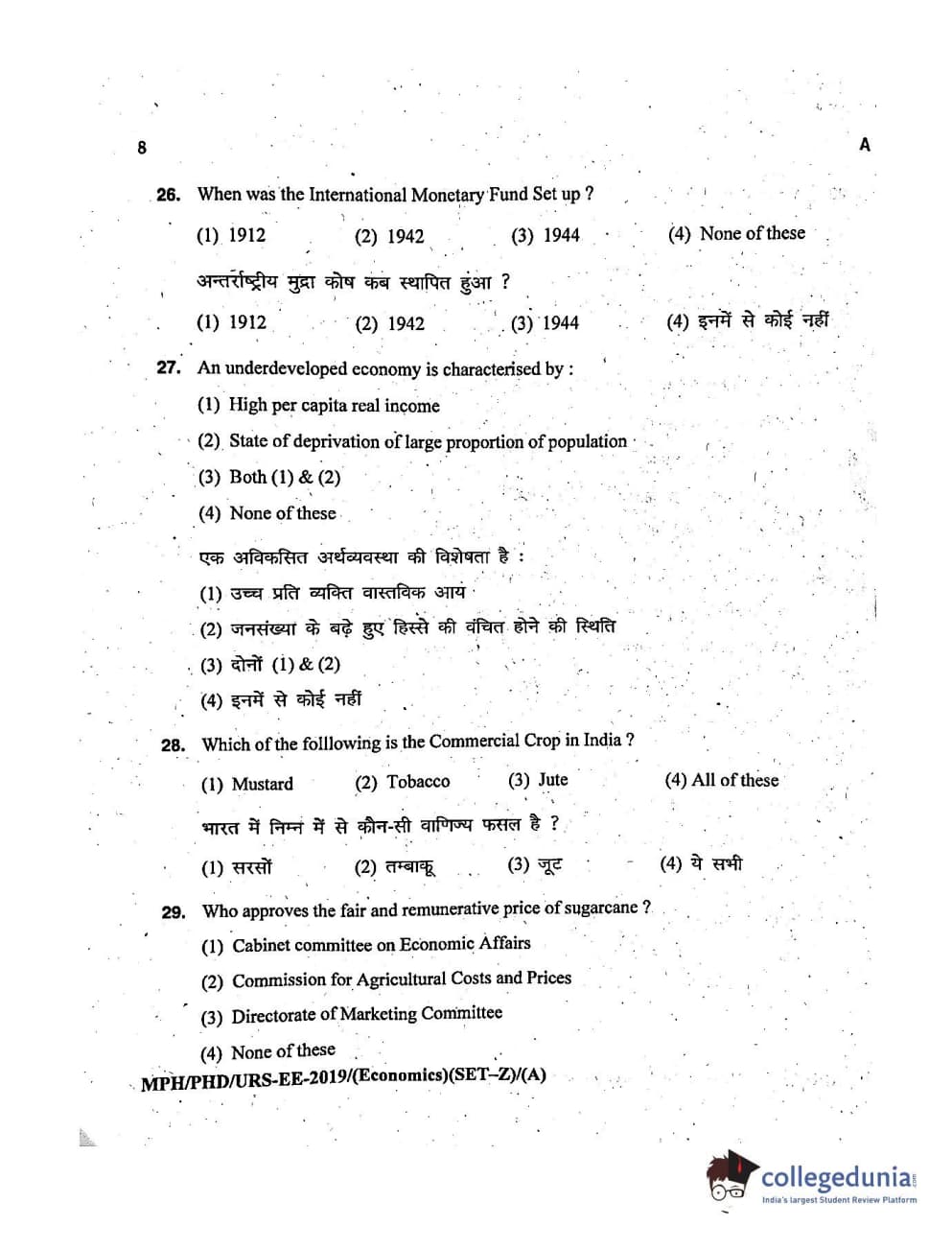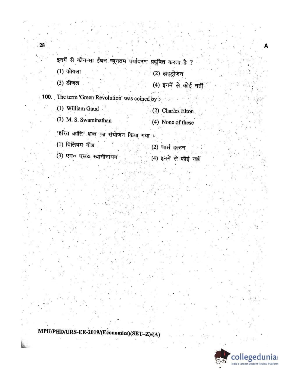 MDUCEE 2019 Ph.D./M.Phil./URS Economics Set A Question Paper with Answer Key PDFs