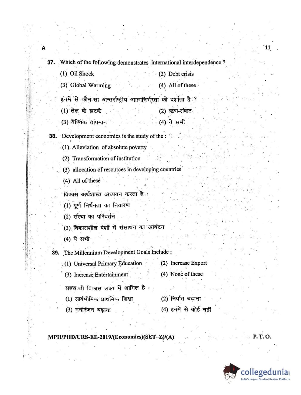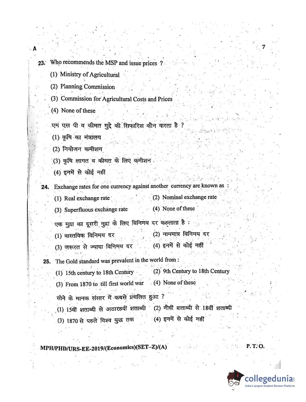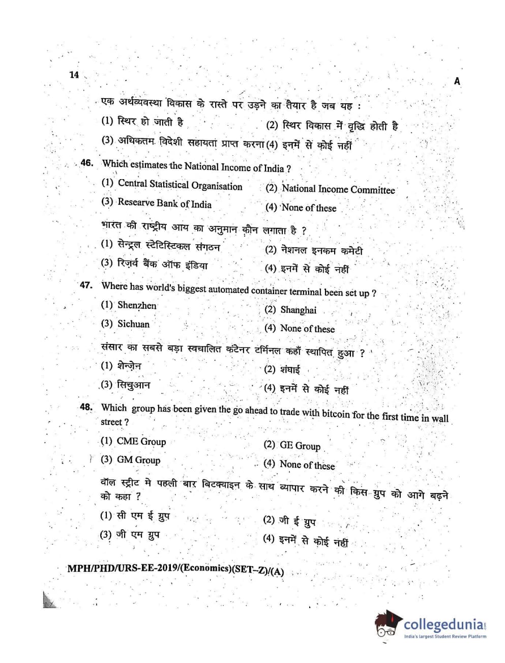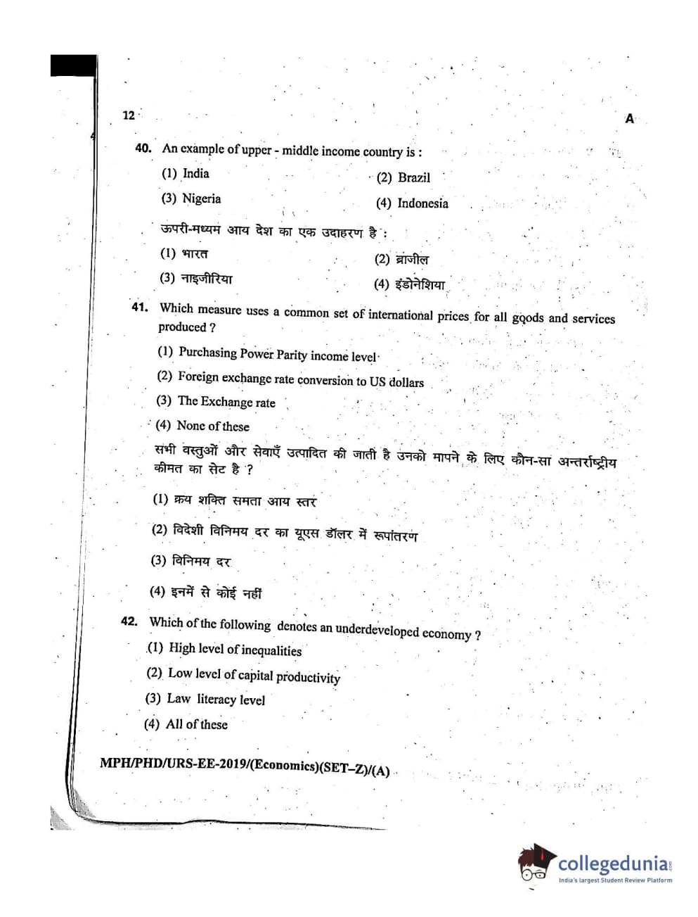 MDUCEE 2019 Ph.D./M.Phil./URS Economics Set A Question Paper with Answer Key PDFs