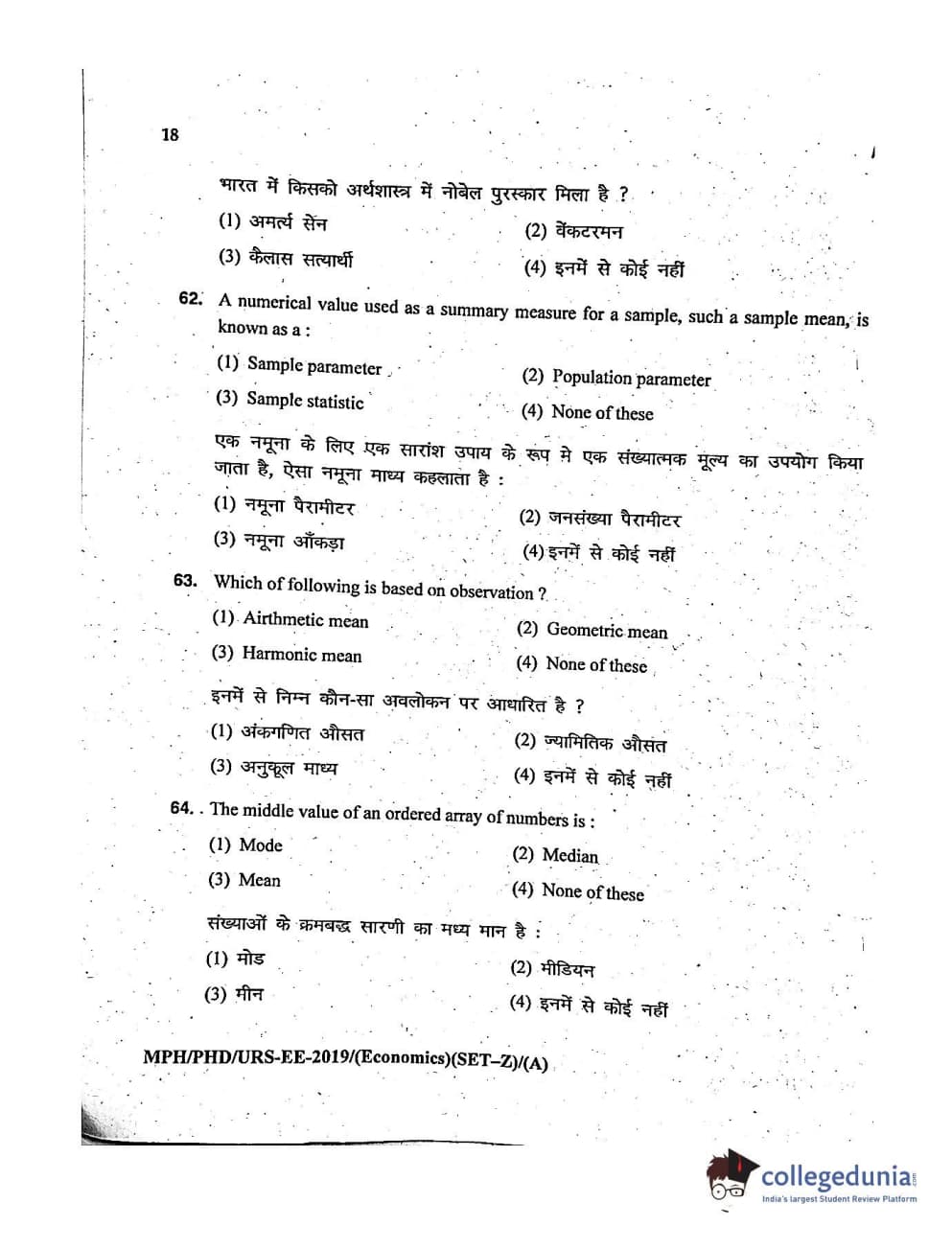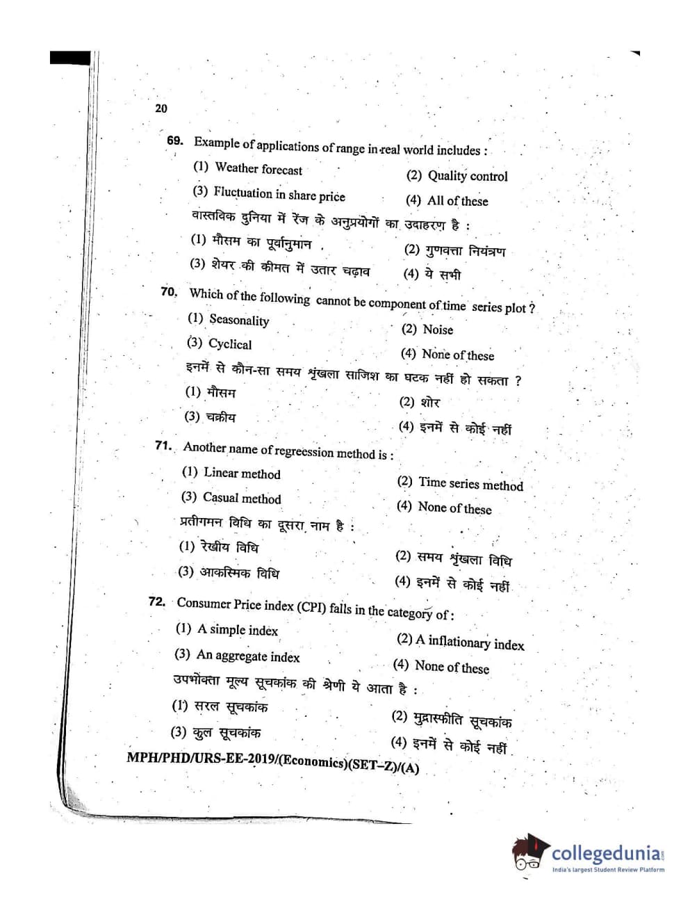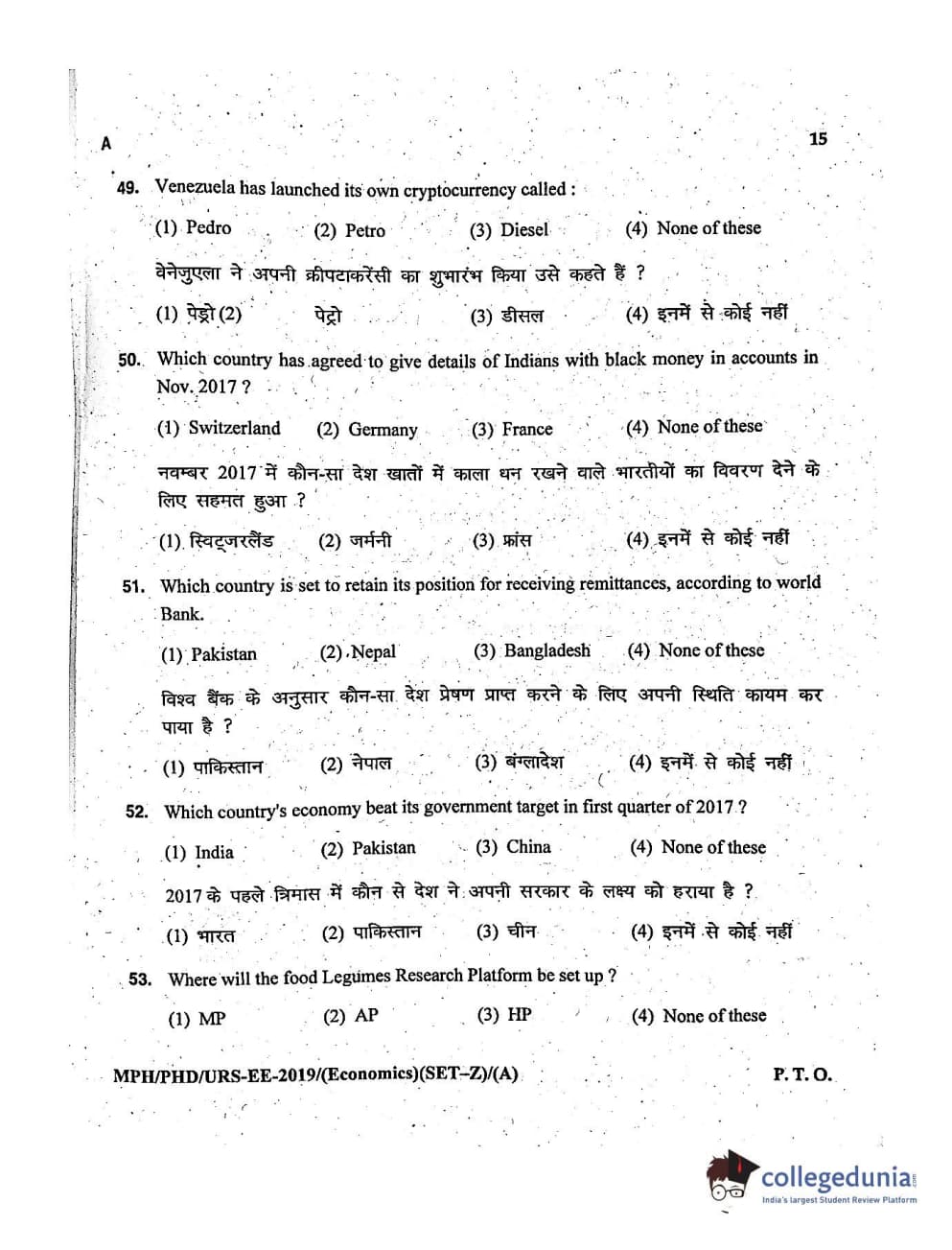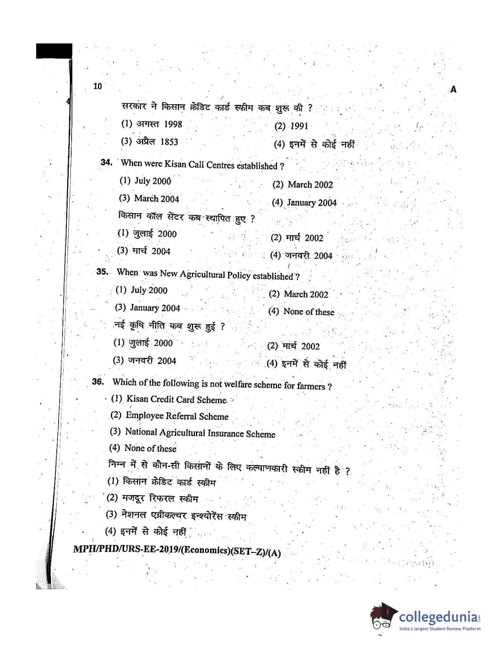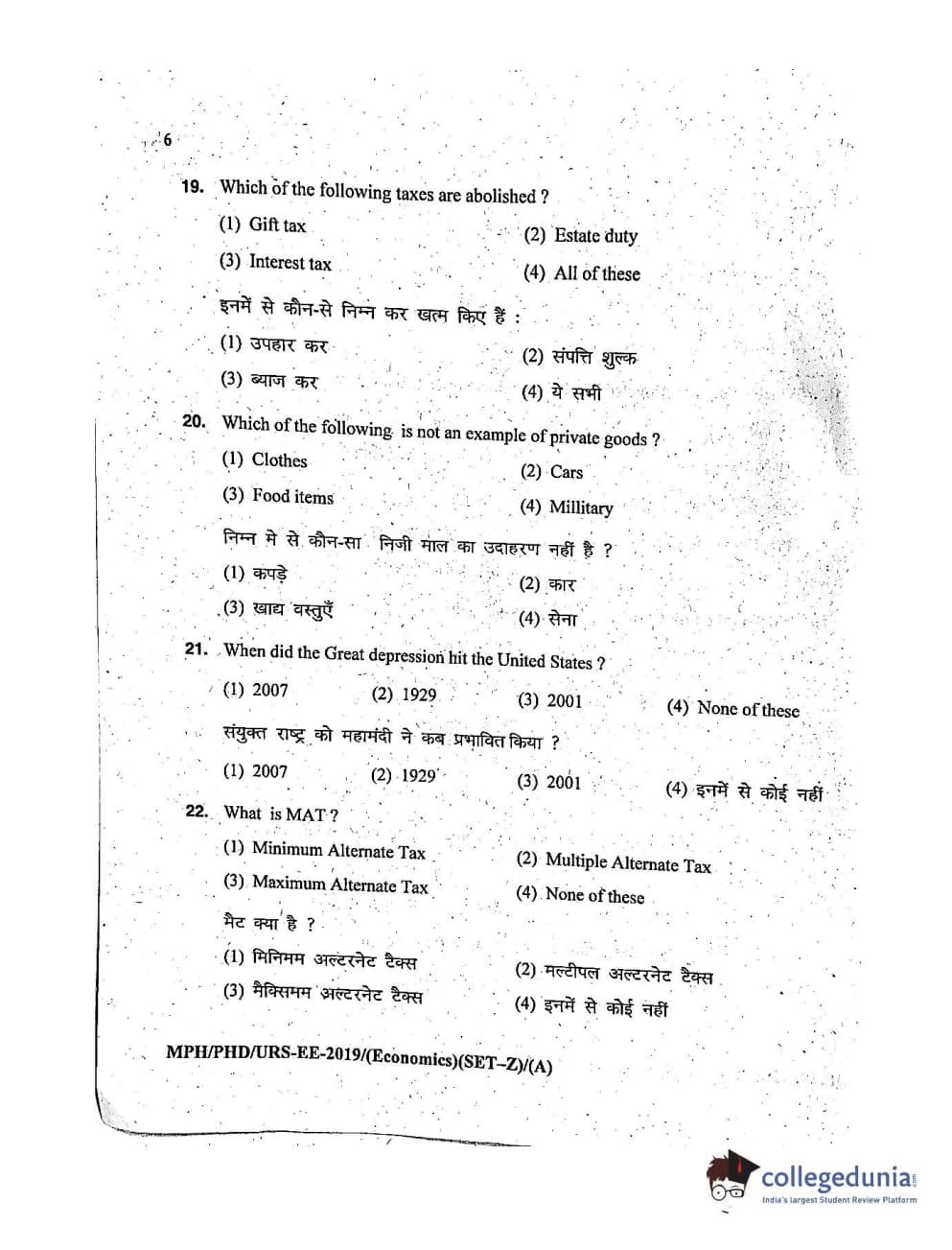 MDUCEE 2019 Ph.D./M.Phil./URS Economics Set A Question Paper with Answer Key PDFs