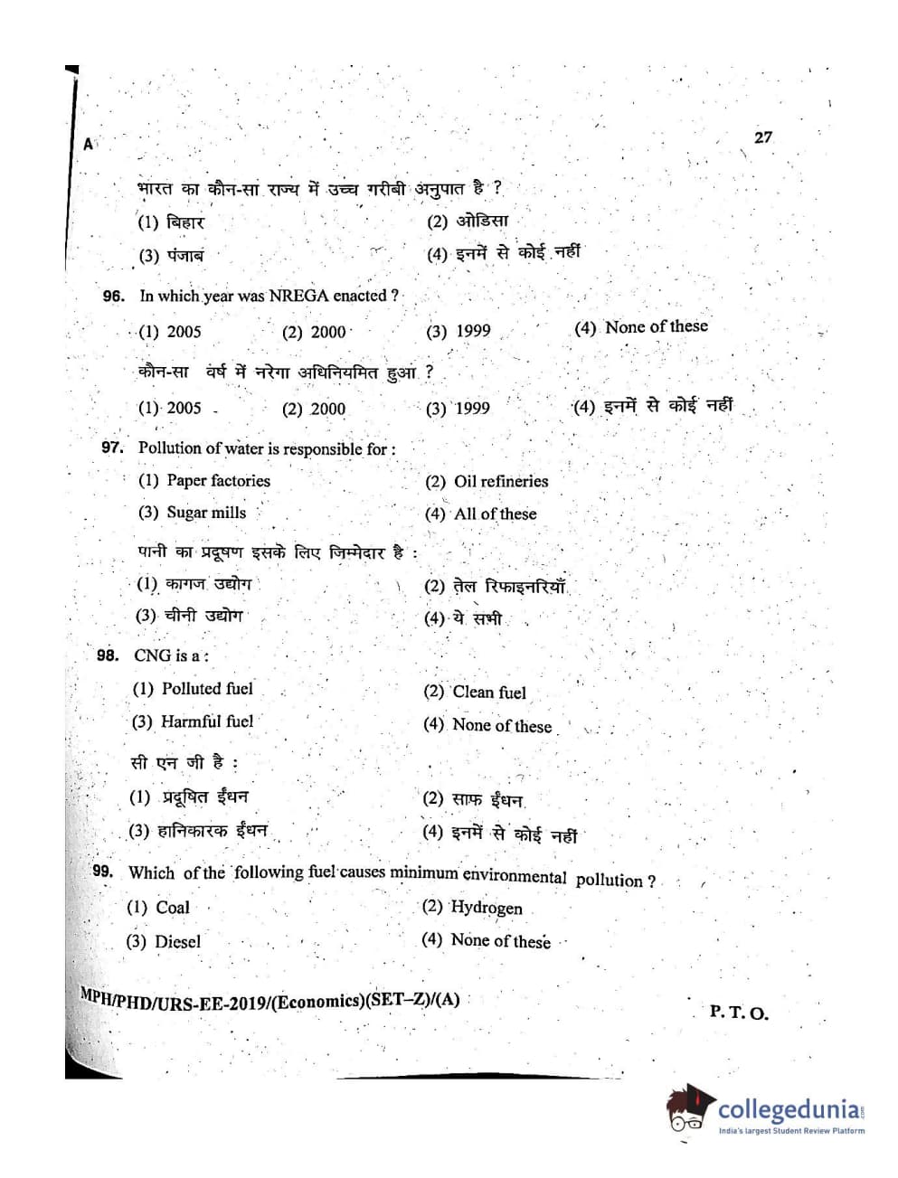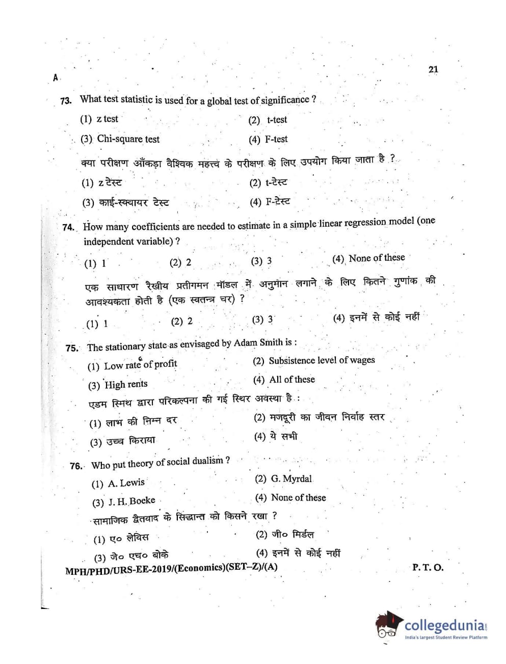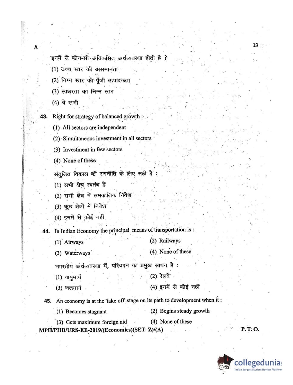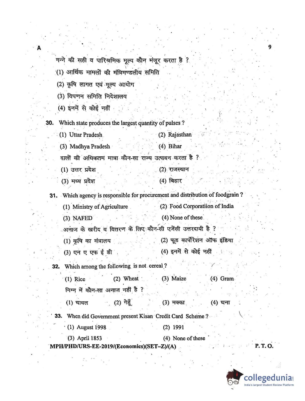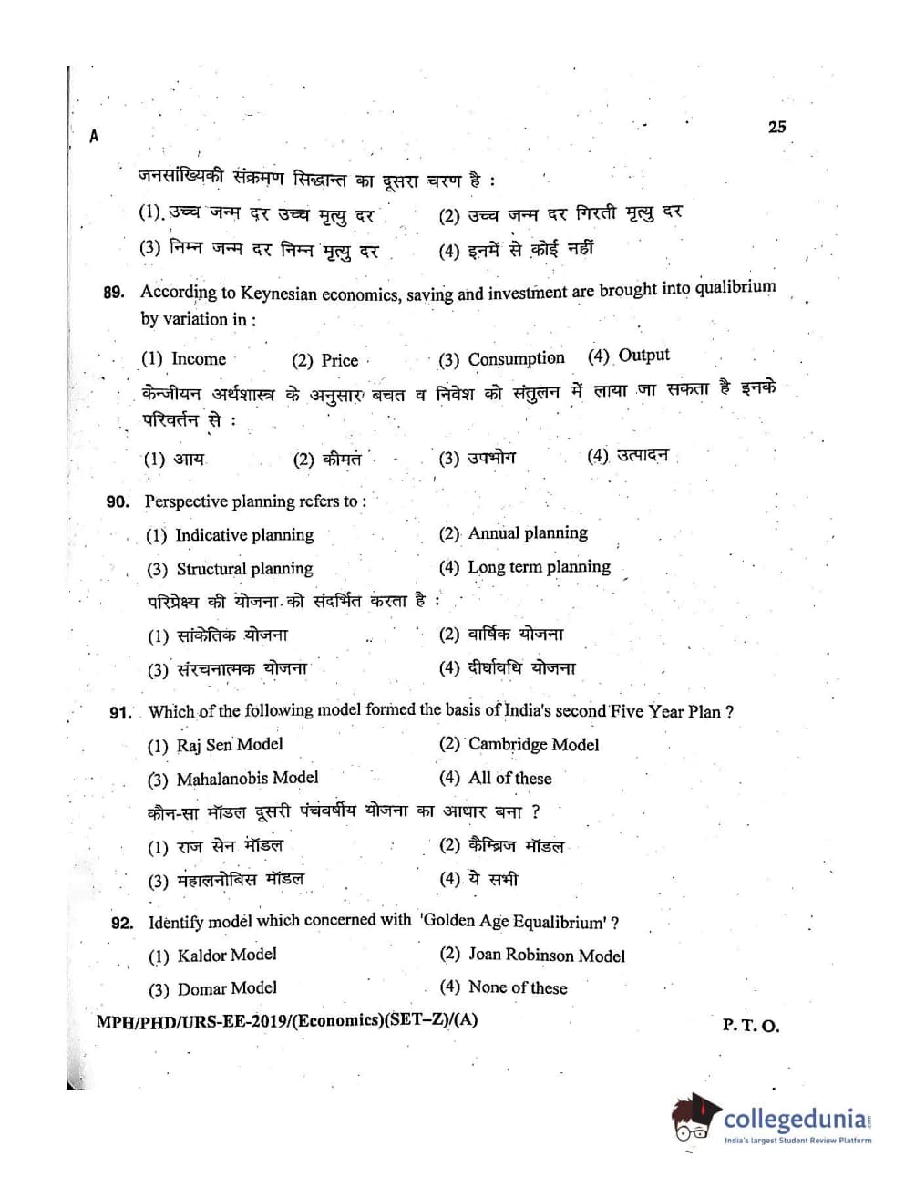 MDUCEE 2019 Ph.D./M.Phil./URS Economics Set A Question Paper with Answer Key PDFs