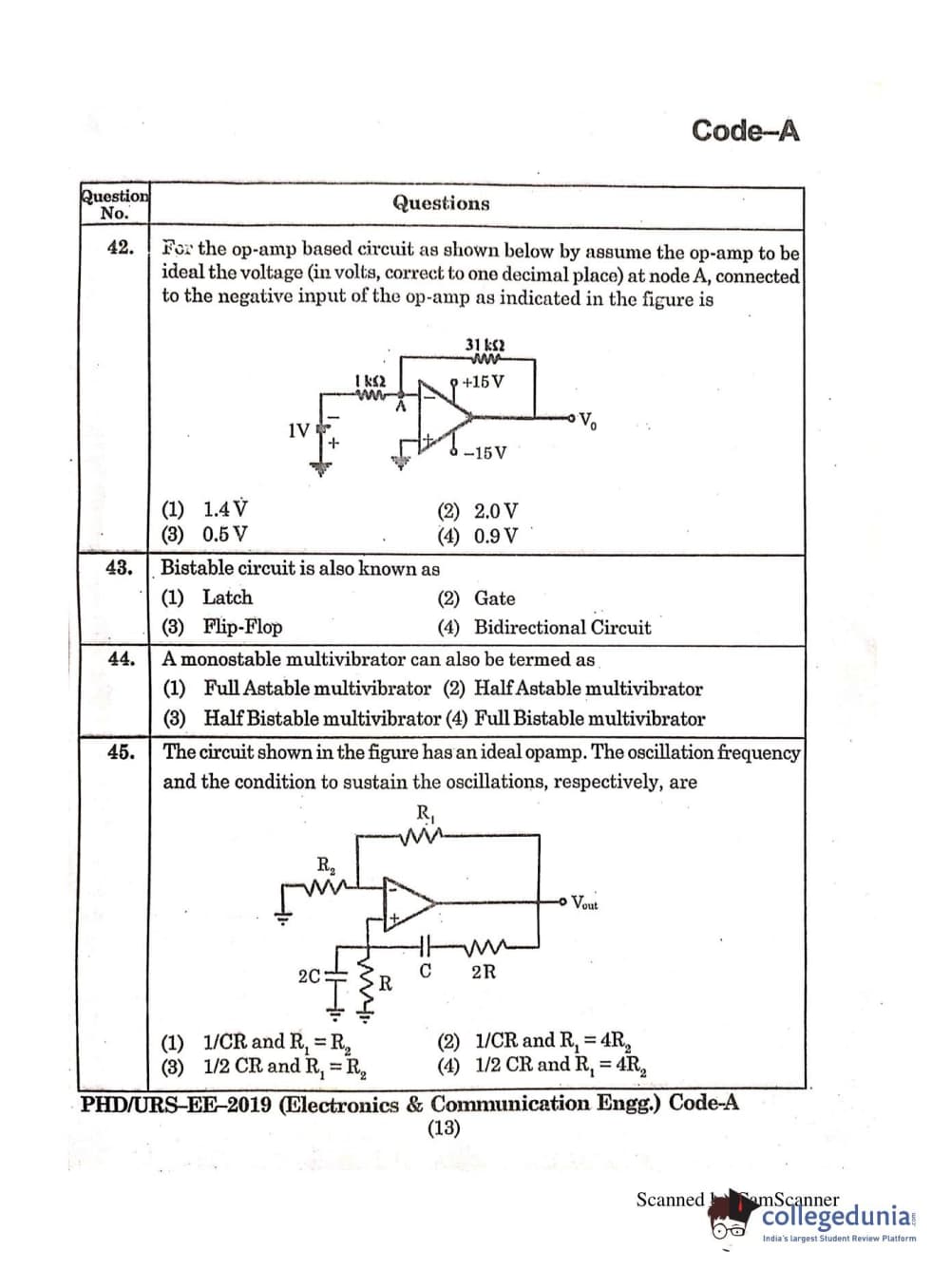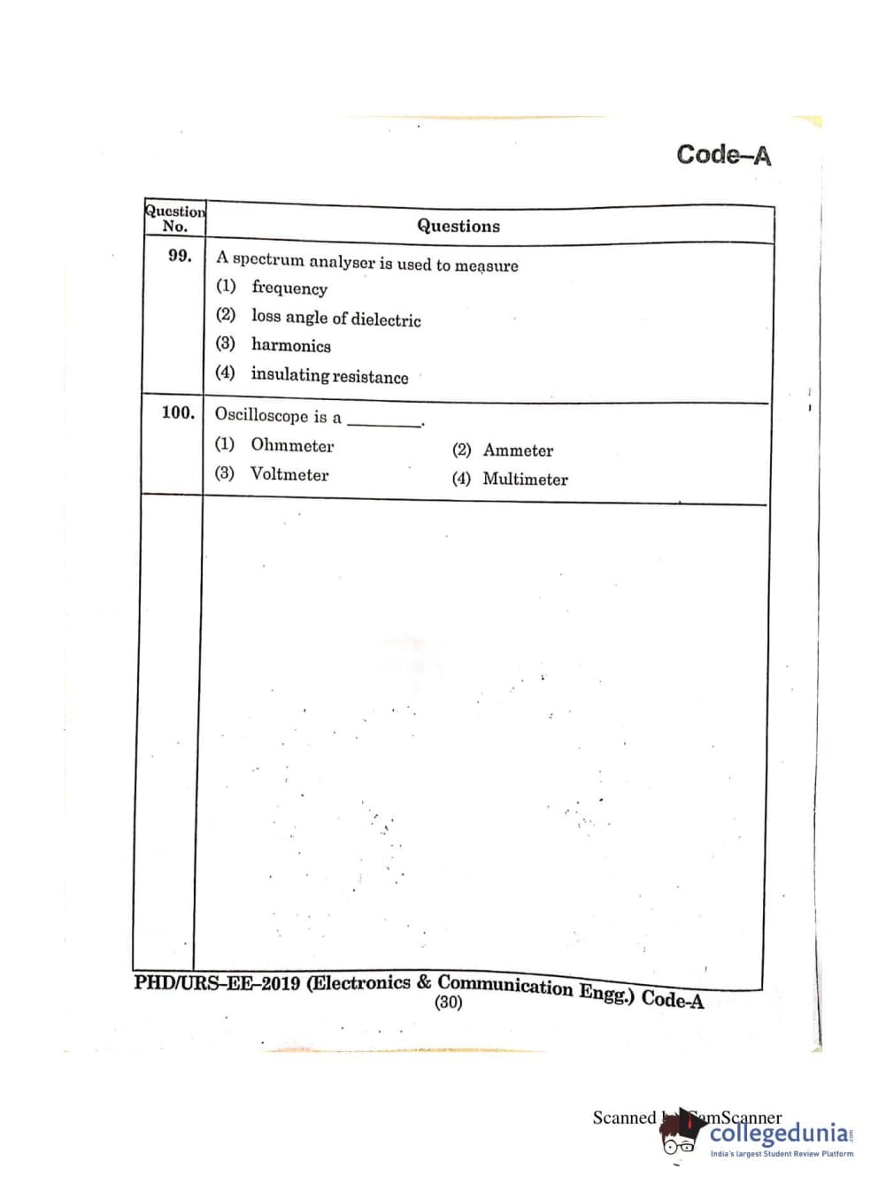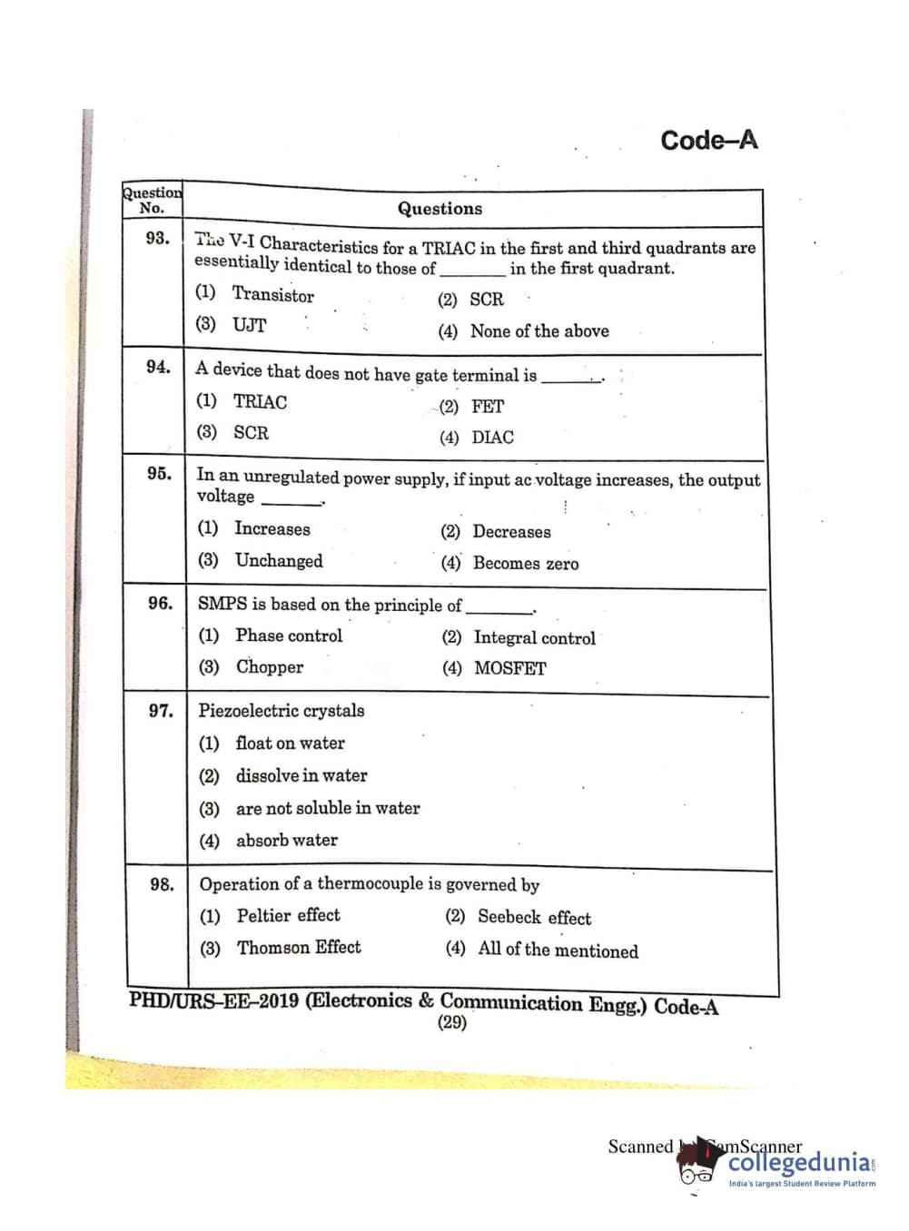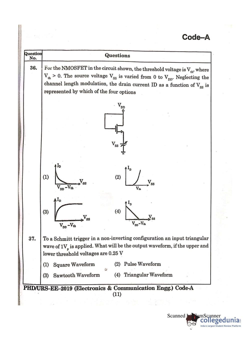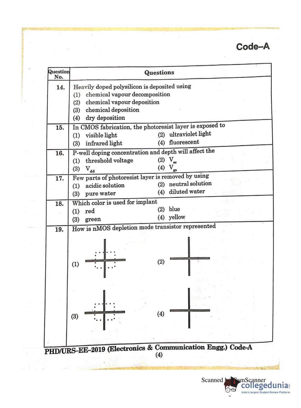 | MDUCEE 2019 Ph.D./M.Phil./URS Electronics and Communication Engg. Set A Question Paper PDF | MDUCEE 2019 Ph.D./M.Phil./URSElectronics and Communication Engg. Set A Answer Key PDF |