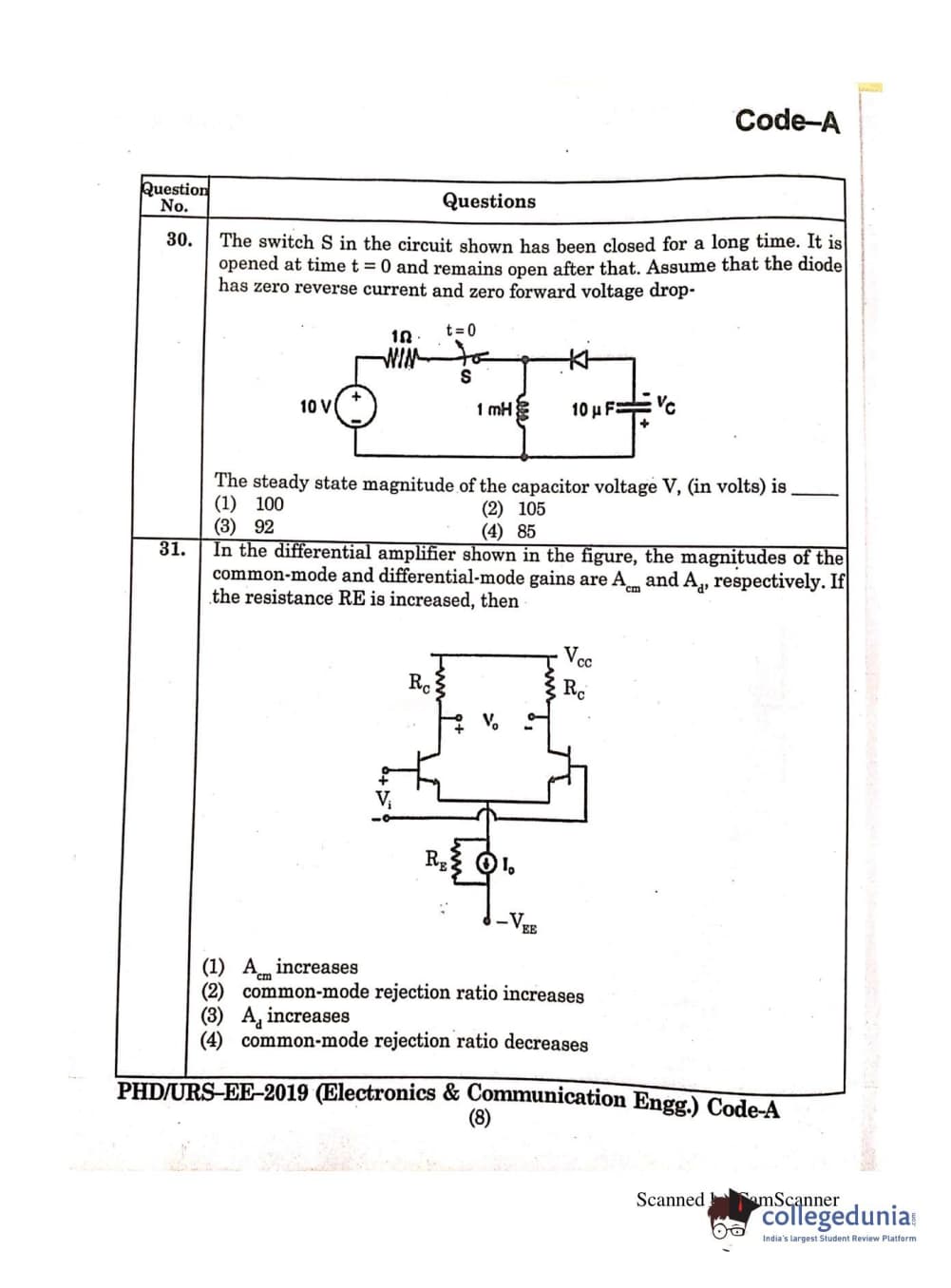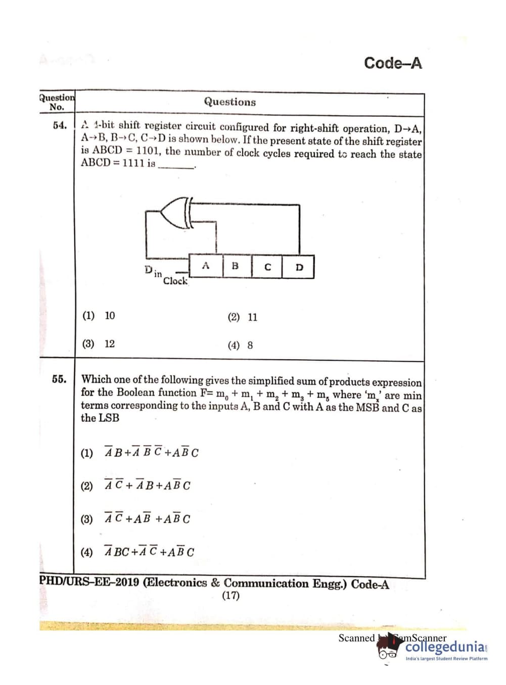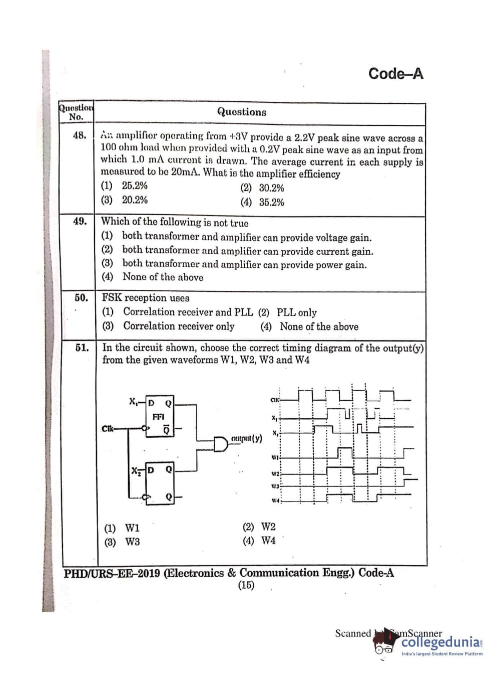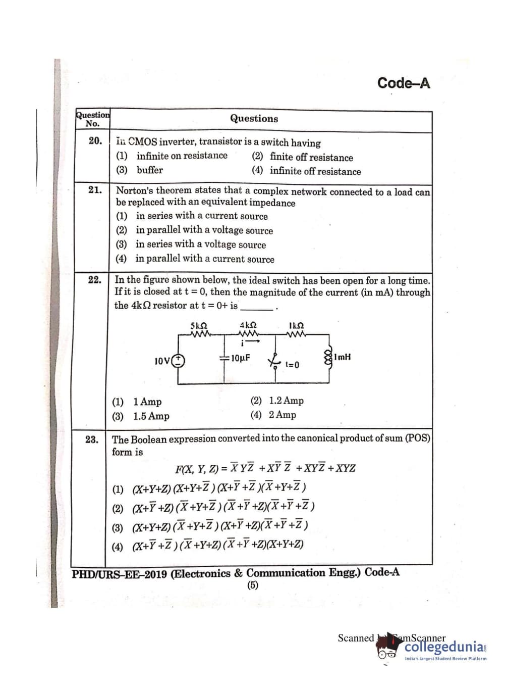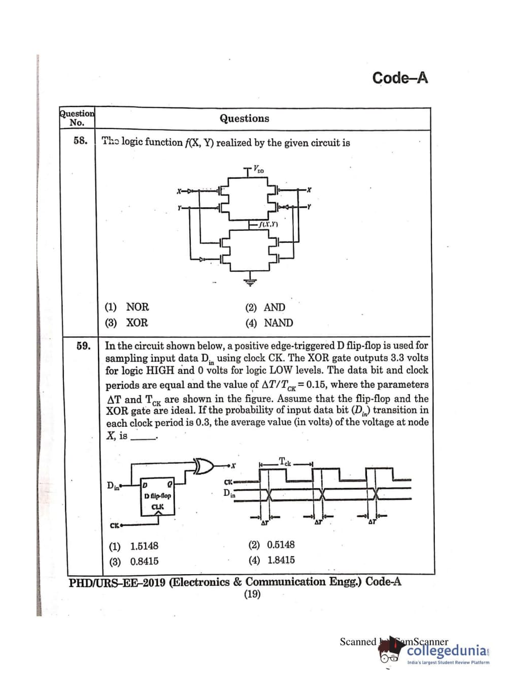 | MDUCEE 2019 Ph.D./M.Phil./URS Electronics and Communication Engg. Set A Question Paper PDF | MDUCEE 2019 Ph.D./M.Phil./URSElectronics and Communication Engg. Set A Answer Key PDF |