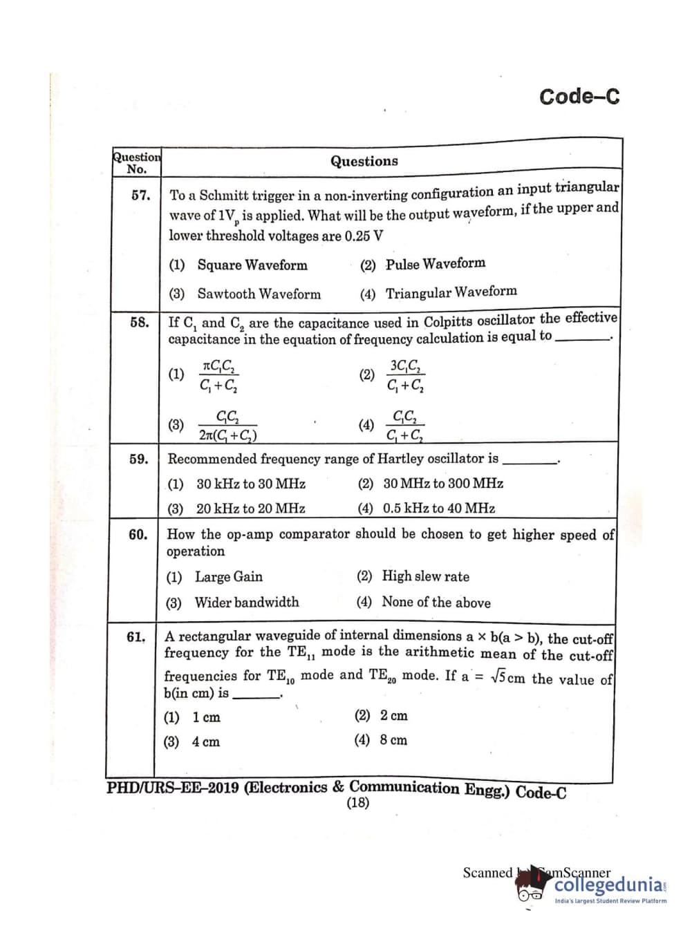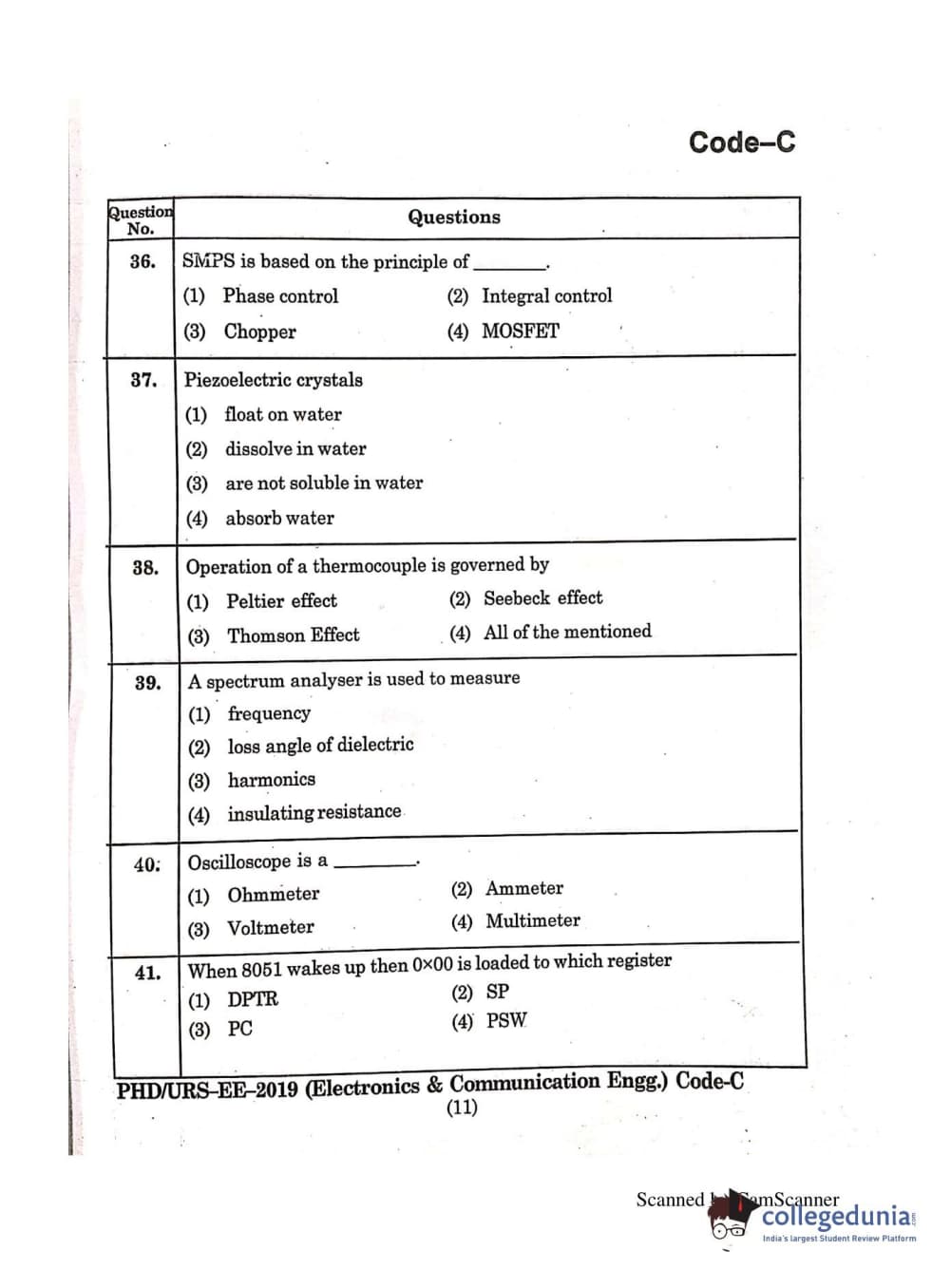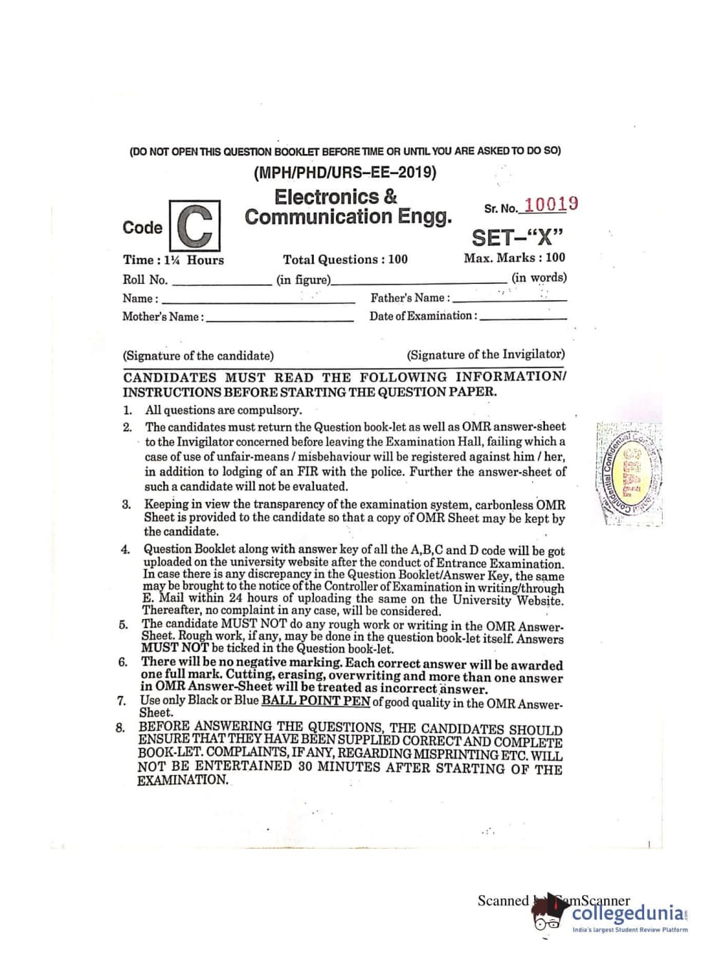 | MDUCEE 2019 Ph.D./M.Phil./URS Electonics and Communication Engg. Set C Question Paper PDF | MDUCEE 2019 Ph.D./M.Phil./URS Electonics and Communication Engg. Set C Answer Key PDF |