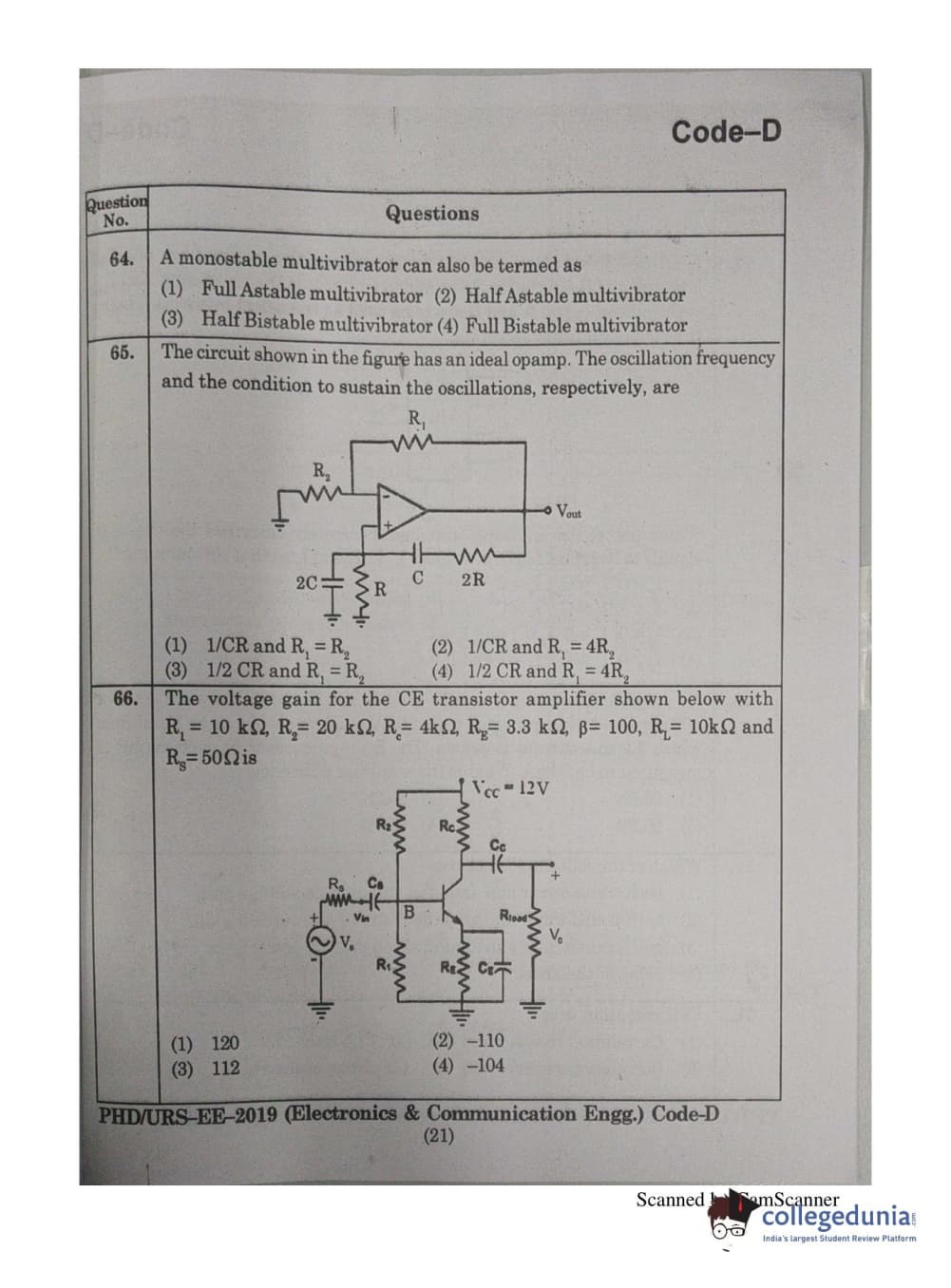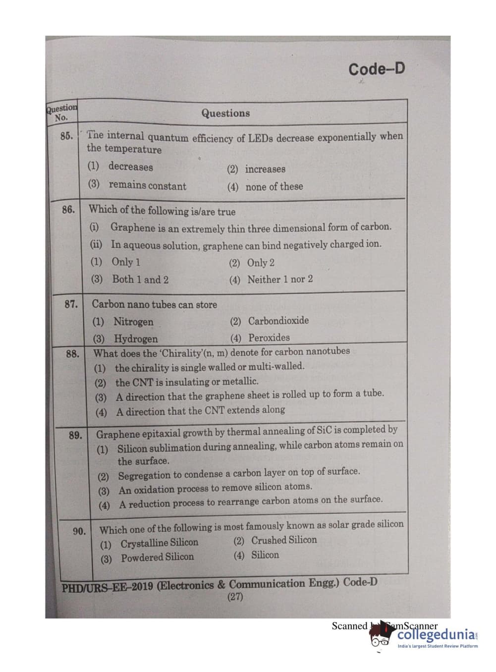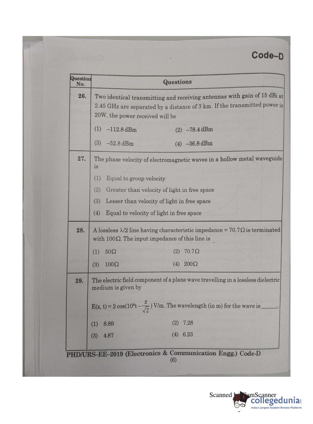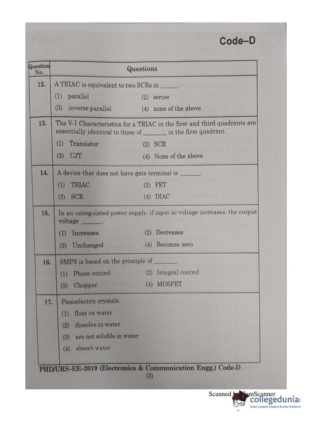| MDUCEE 2019 Ph.D./M.Phil./URS Electonics and Communication Engg. Set D Question Paper PDF | MDUCEE 2019 Ph.D./M.Phil./URS Electonics and Communication Engg. Set D Answer Key PDF |