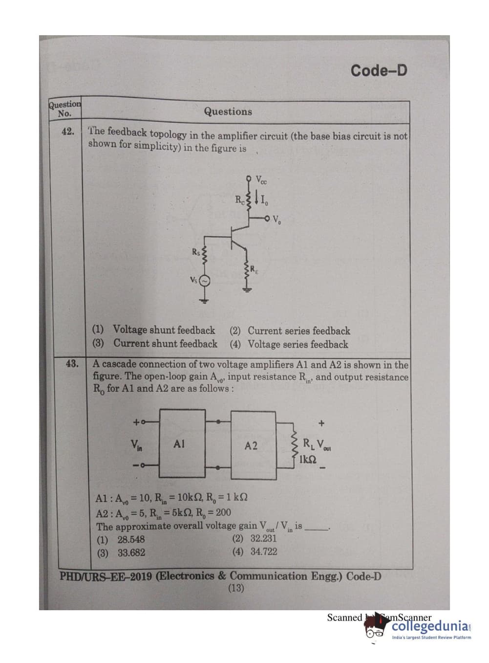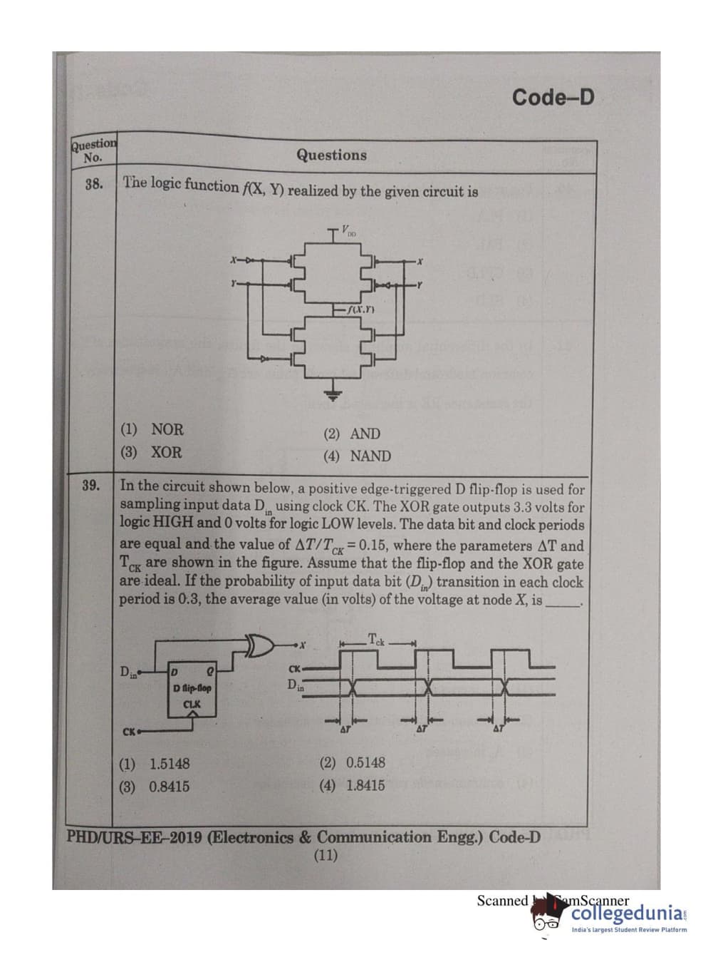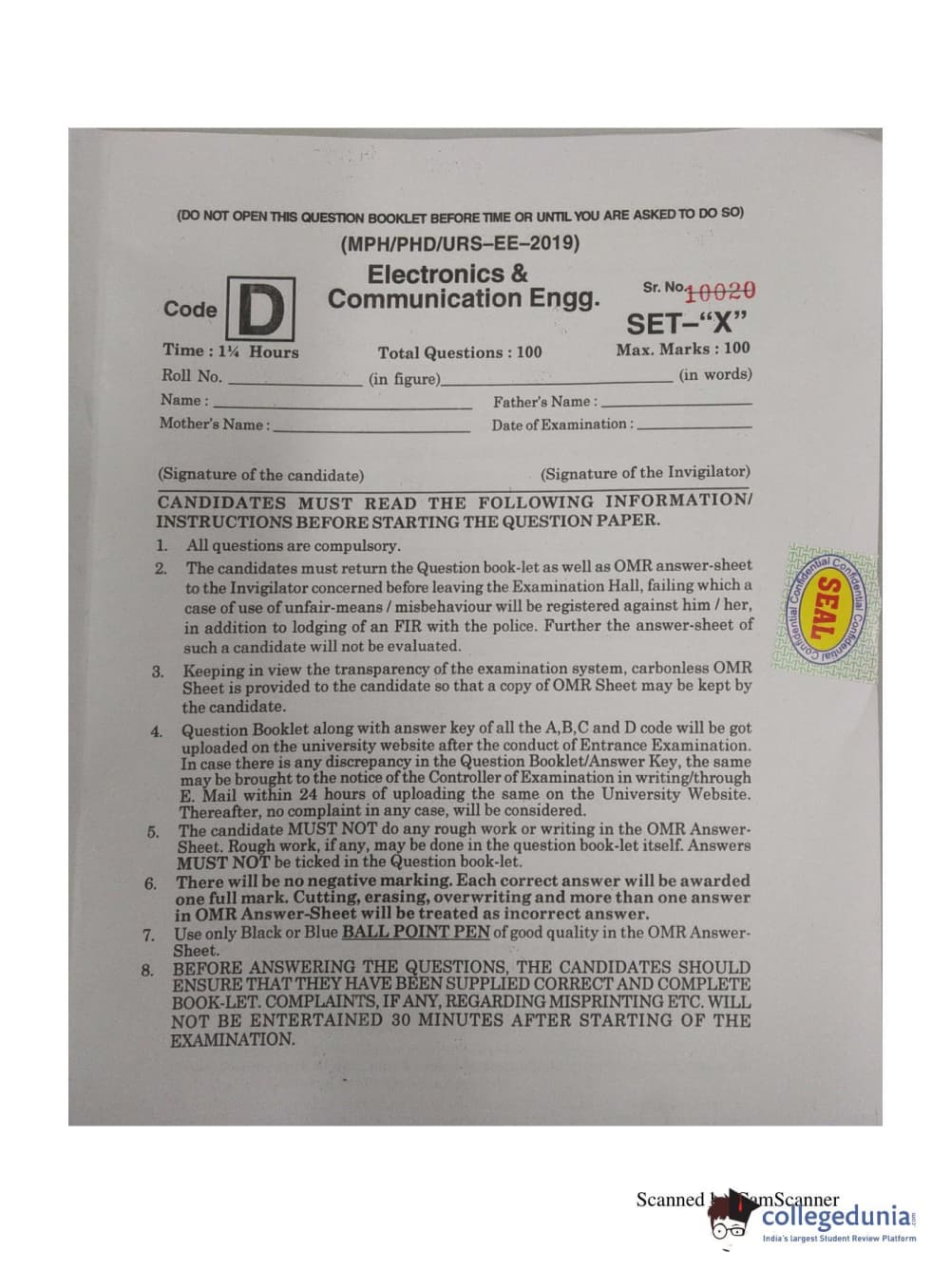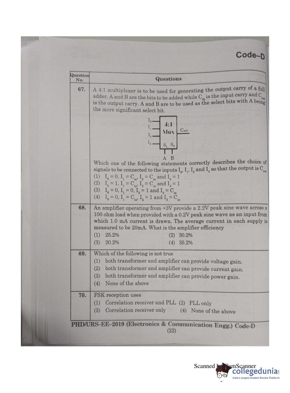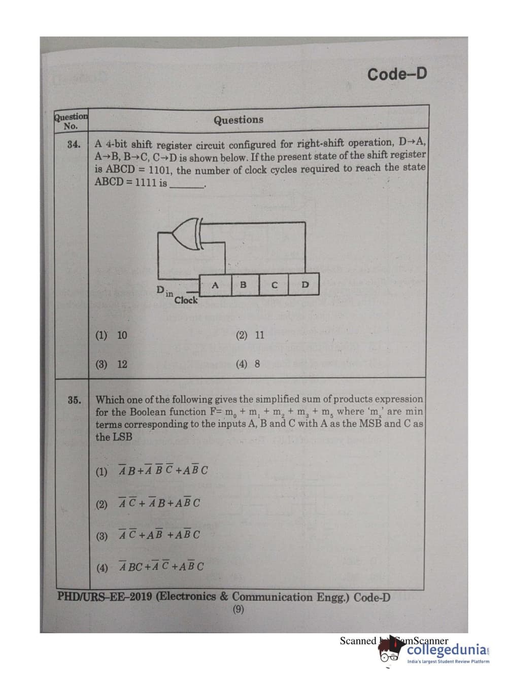 | MDUCEE 2019 Ph.D./M.Phil./URS Electonics and Communication Engg. Set D Question Paper PDF | MDUCEE 2019 Ph.D./M.Phil./URS Electonics and Communication Engg. Set D Answer Key PDF |