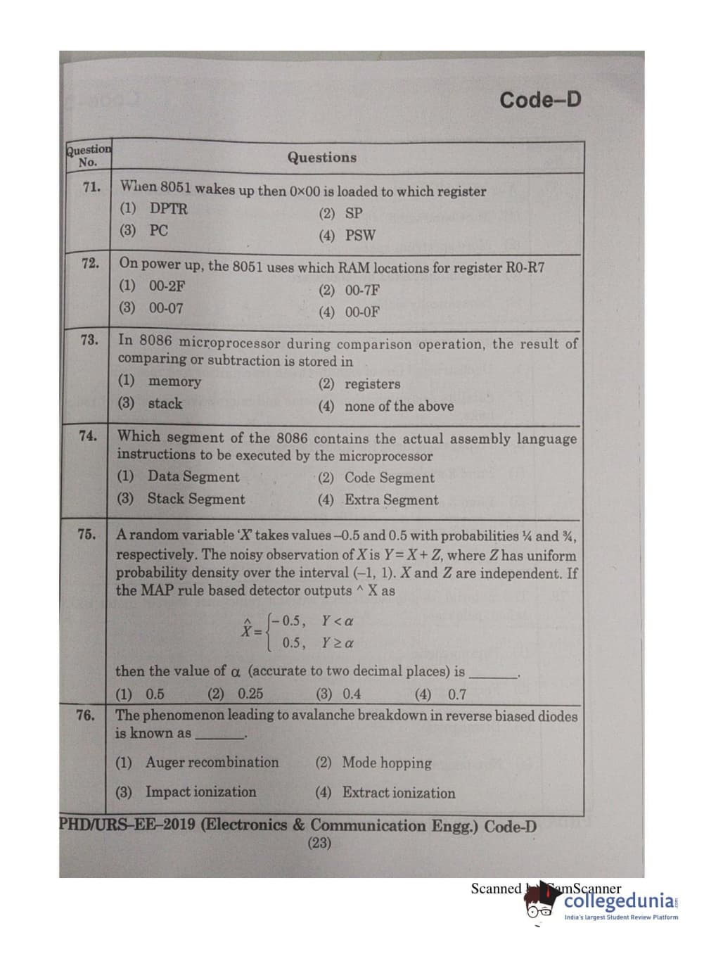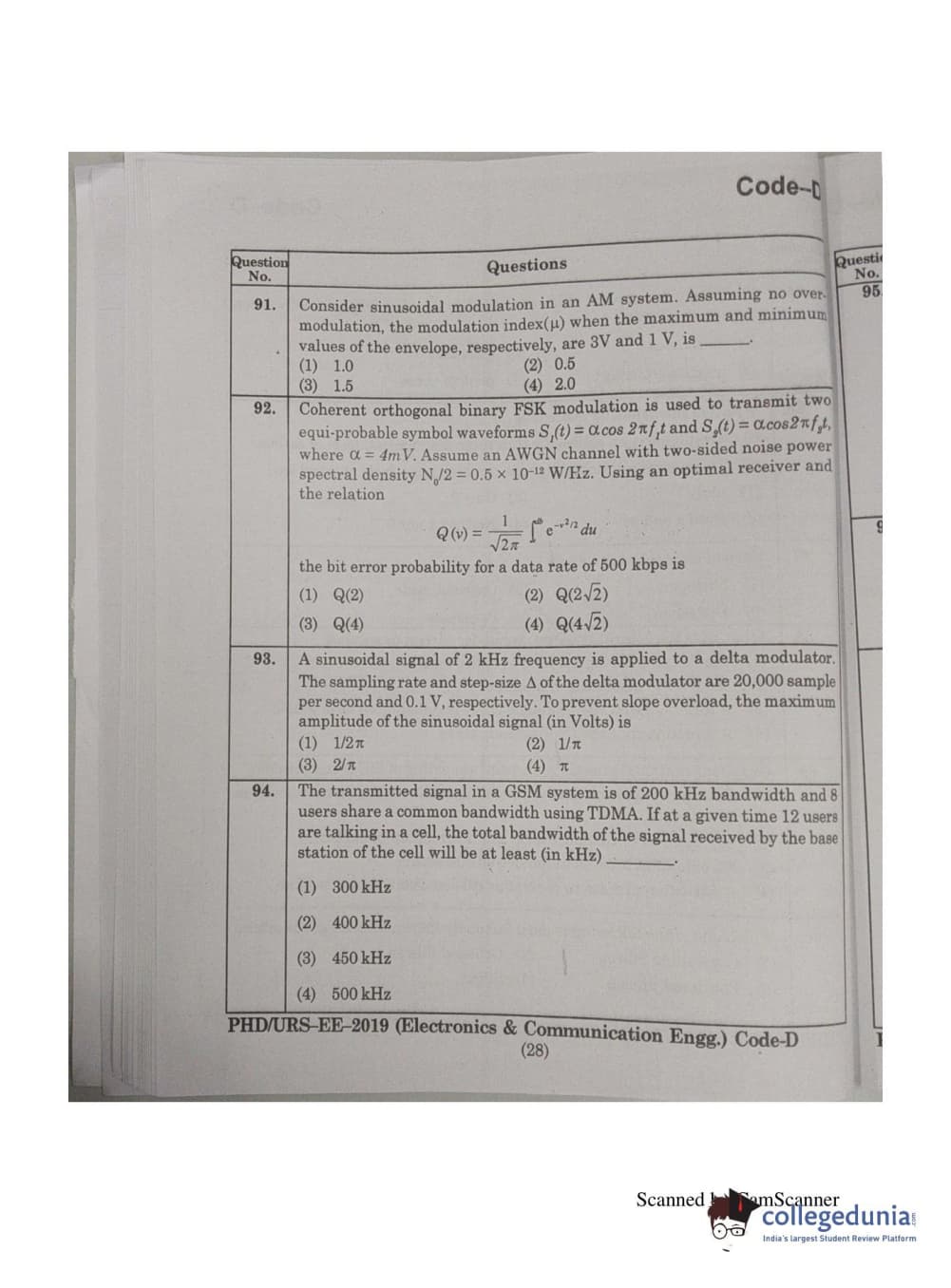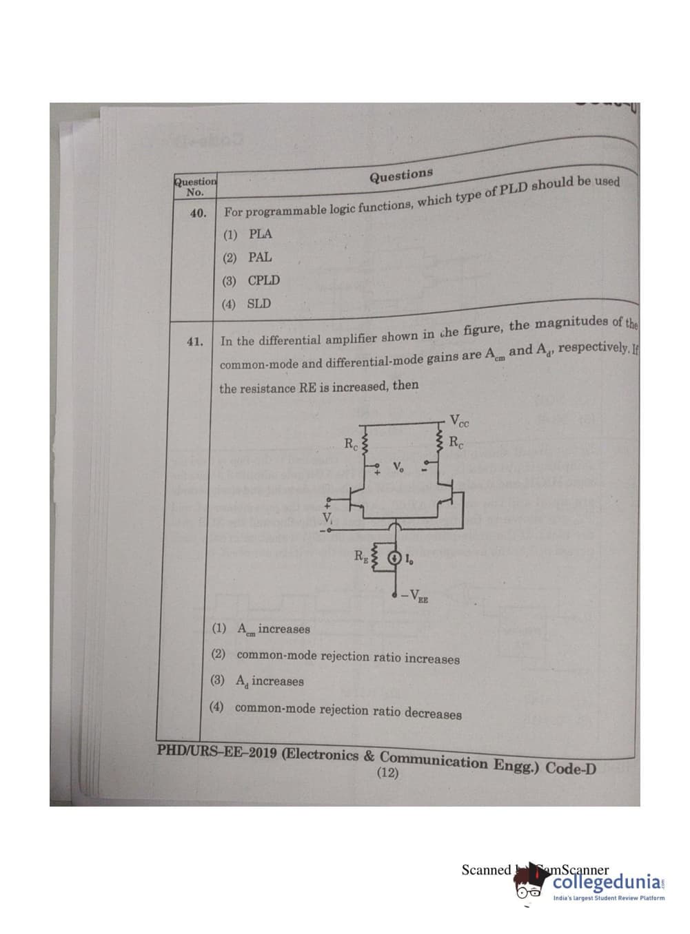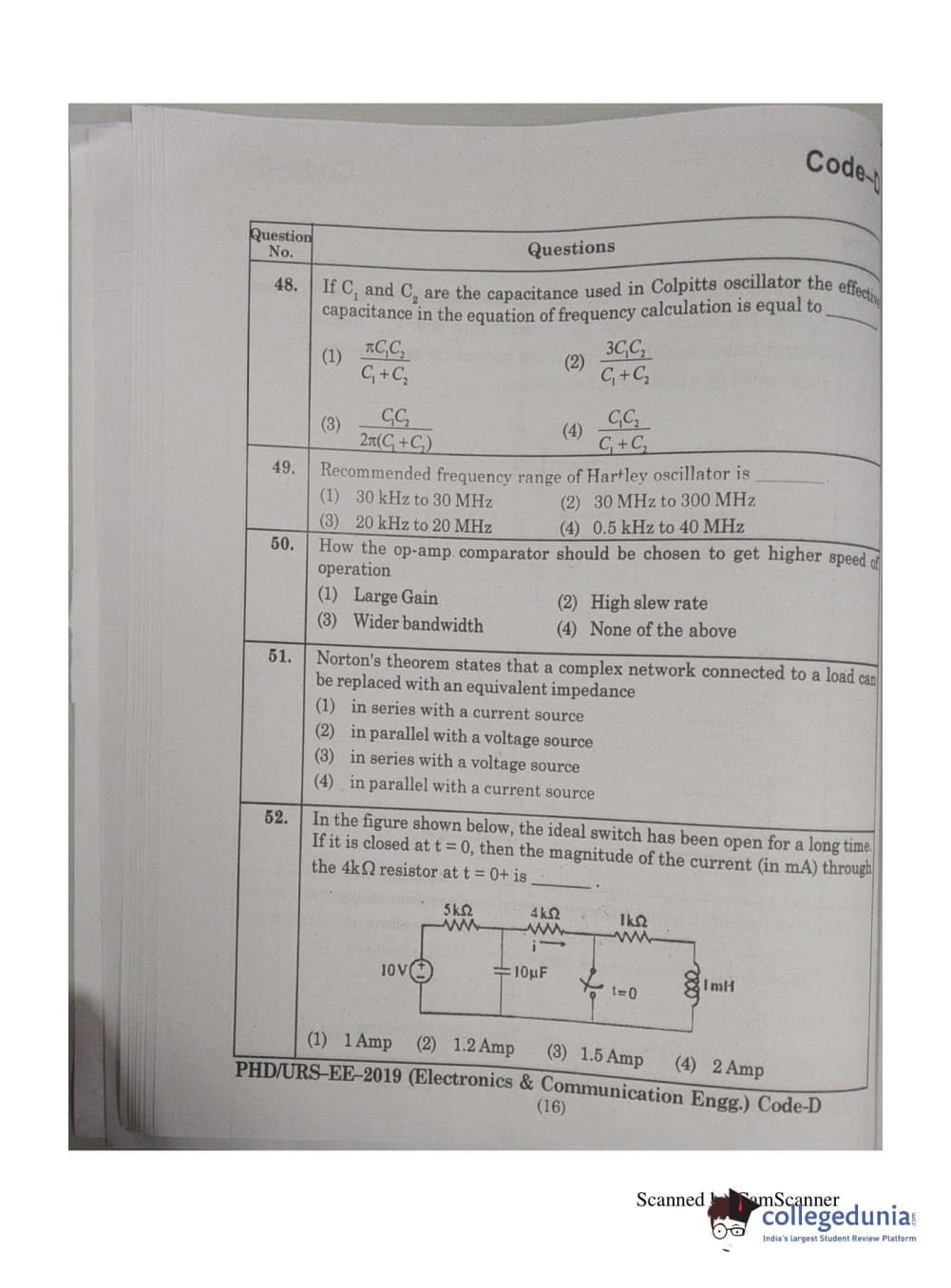 | MDUCEE 2019 Ph.D./M.Phil./URS Electonics and Communication Engg. Set D Question Paper PDF | MDUCEE 2019 Ph.D./M.Phil./URS Electonics and Communication Engg. Set D Answer Key PDF |
