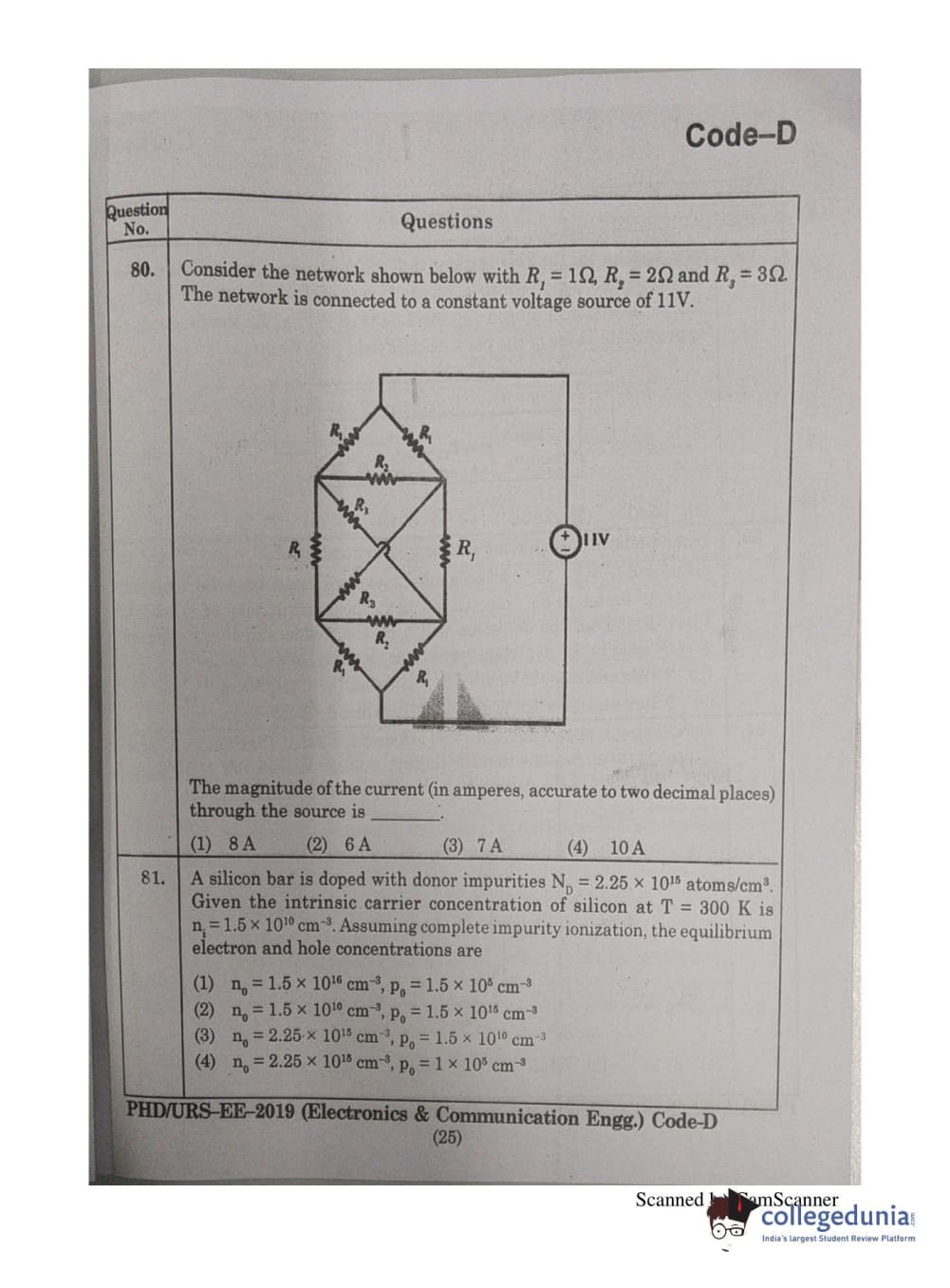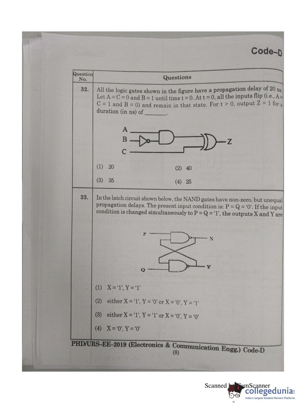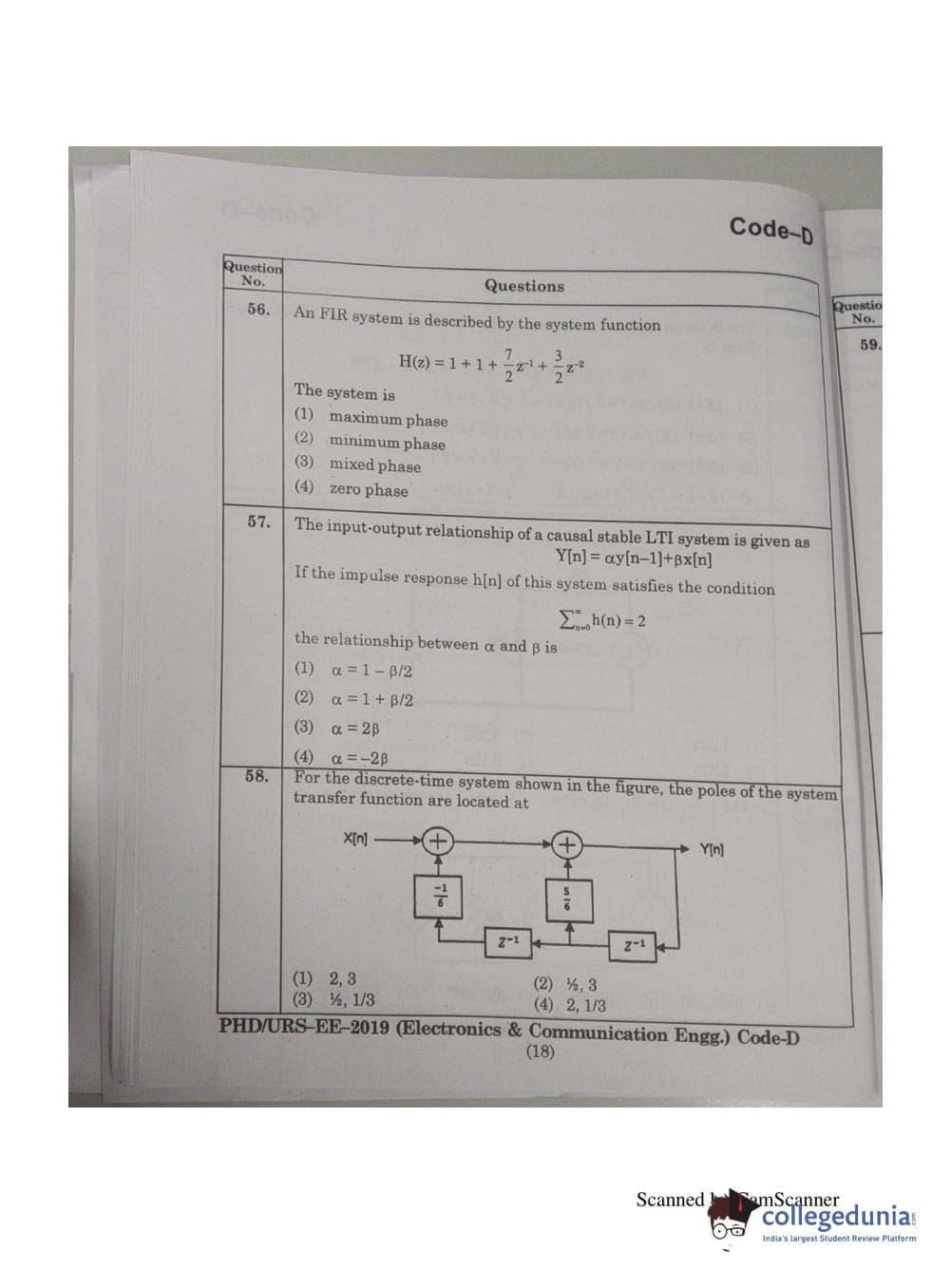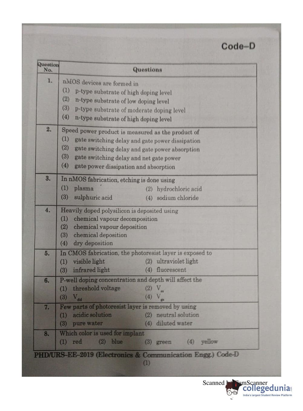 MDUCEE 2019 Ph.D./M.Phil./URS Electonics and Communication Engg. Set D Question Paper with Answer Key PDFs