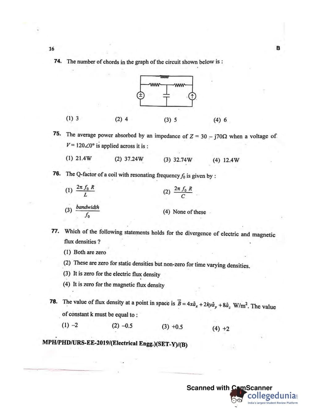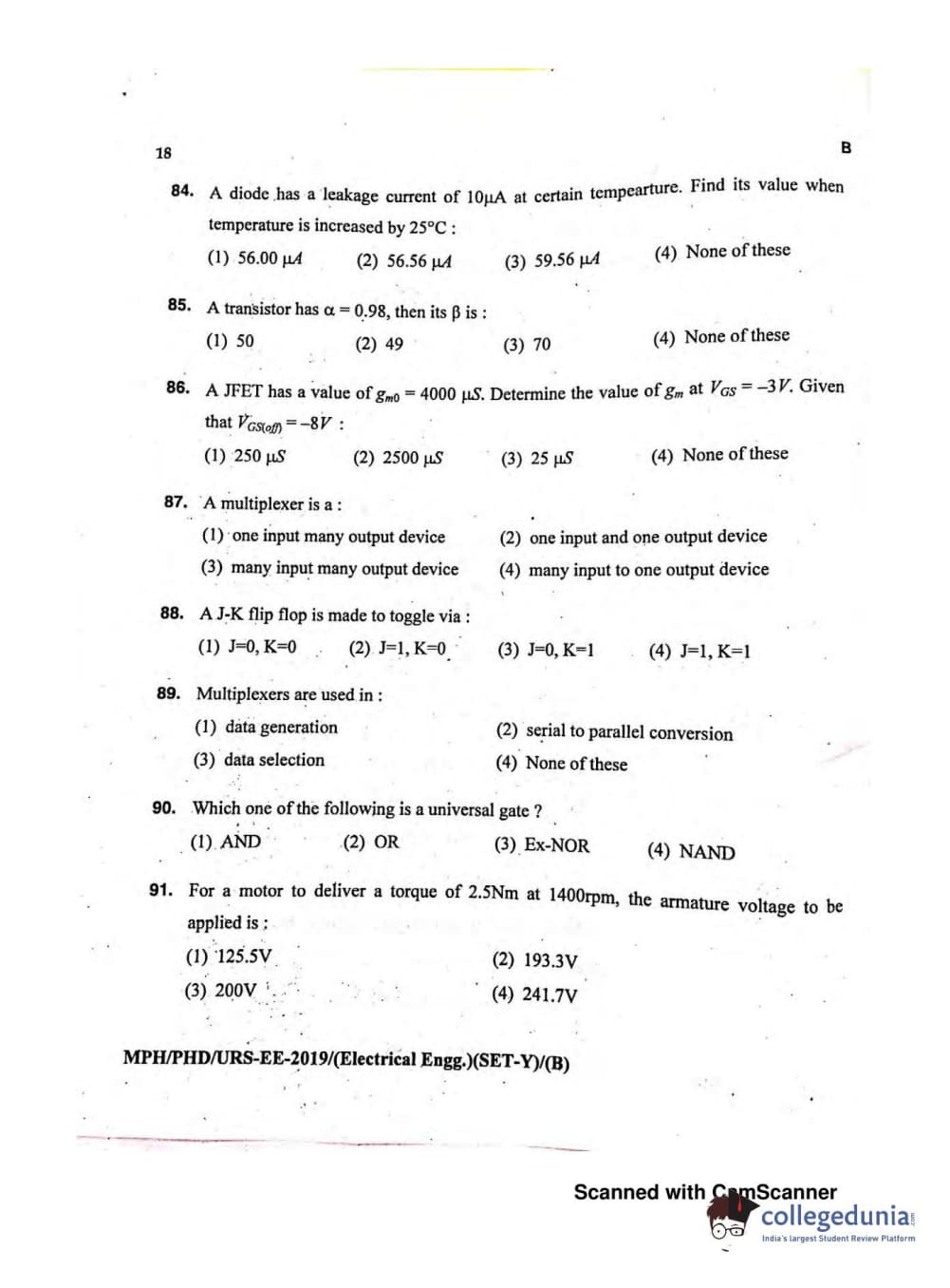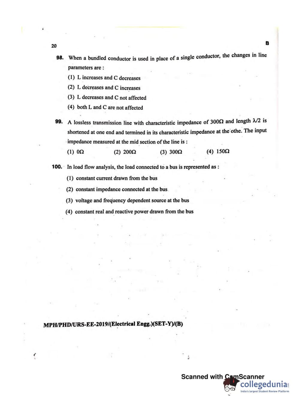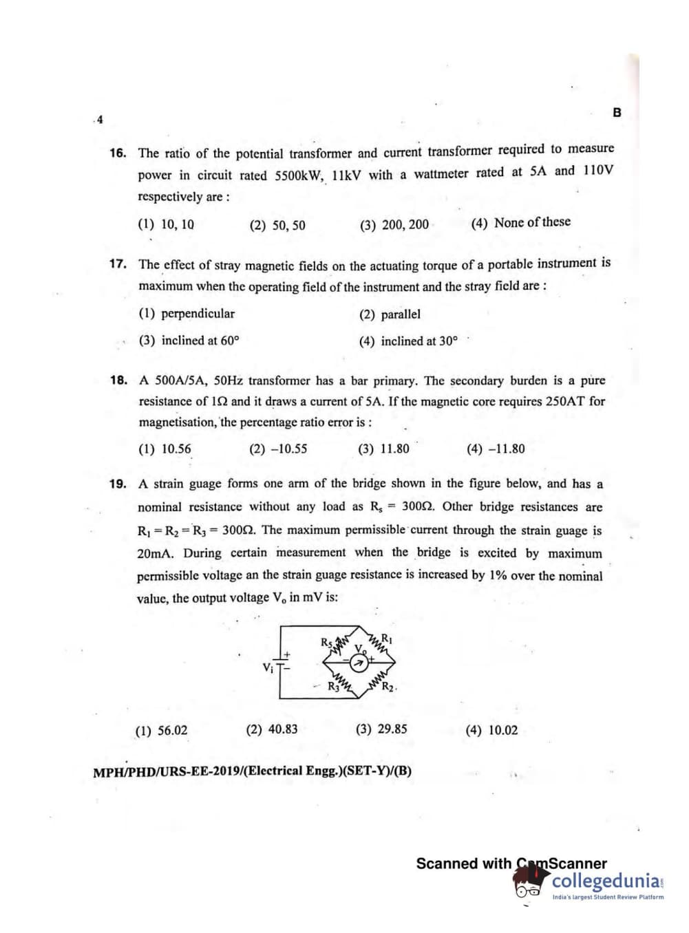MDUCEE 2019 Ph.D./M.Phil./URS Electrical Engineering UIET Set B Question Paper with Answer Key PDFs