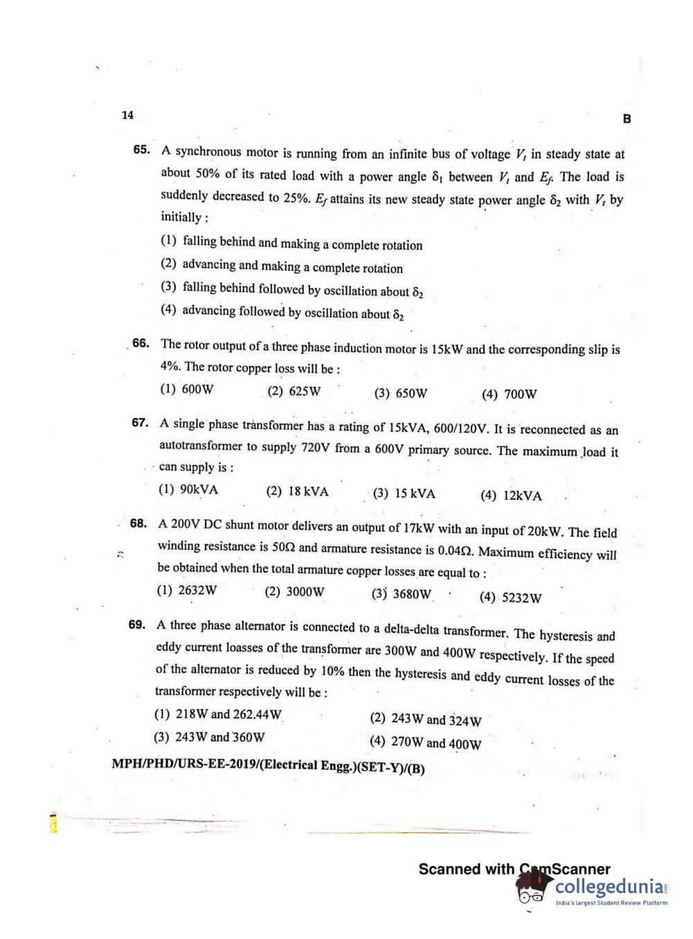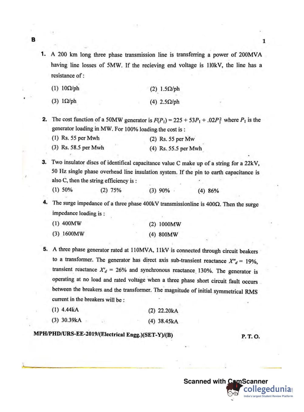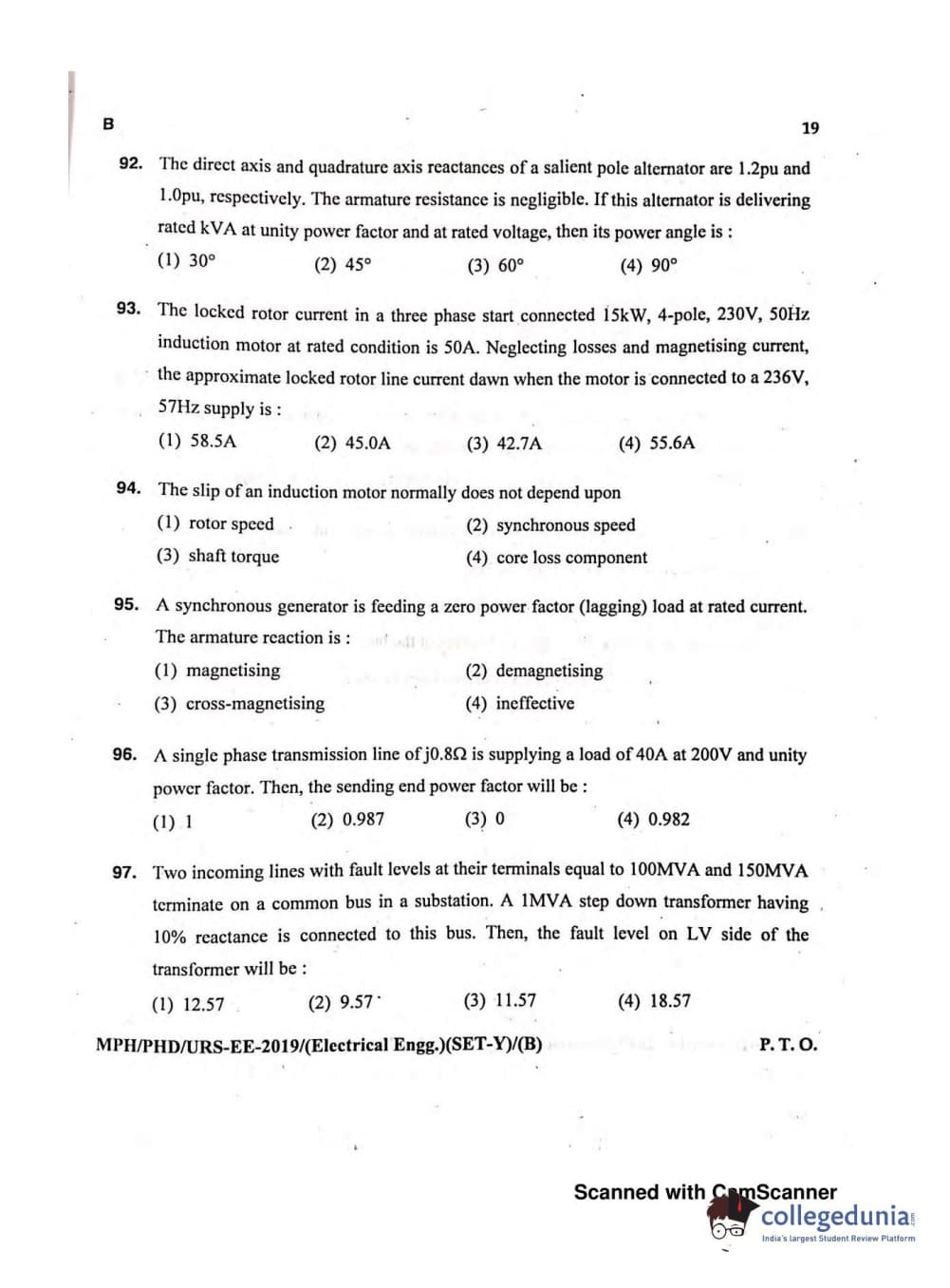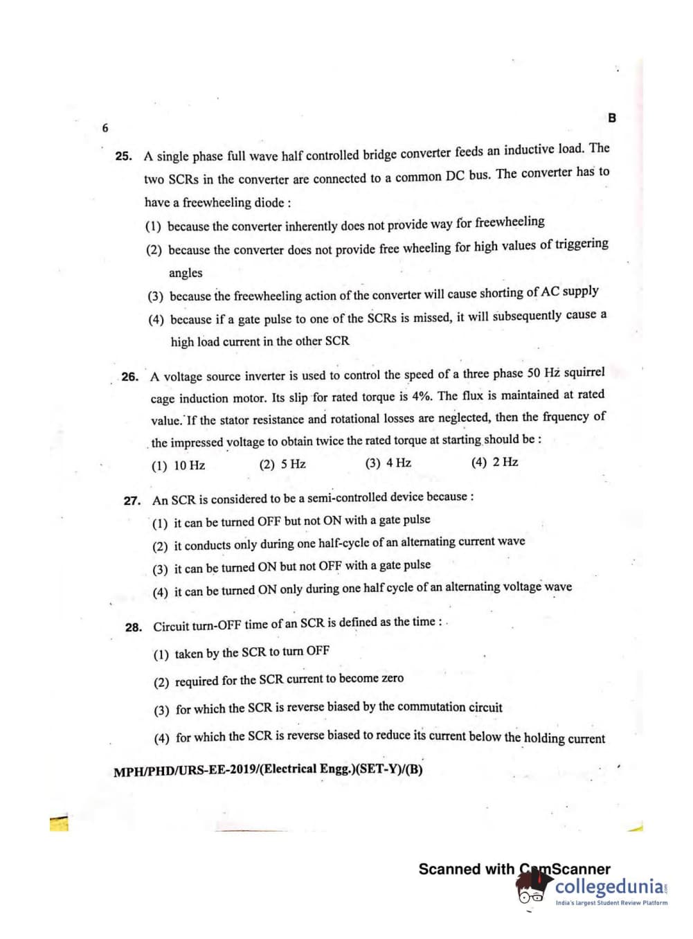 MDUCEE 2019 Ph.D./M.Phil./URS Electrical Engineering UIET Set B Question Paper with Answer Key PDFs