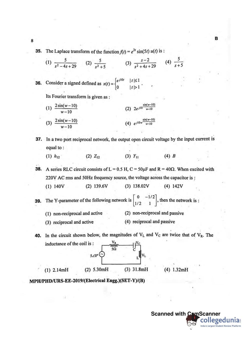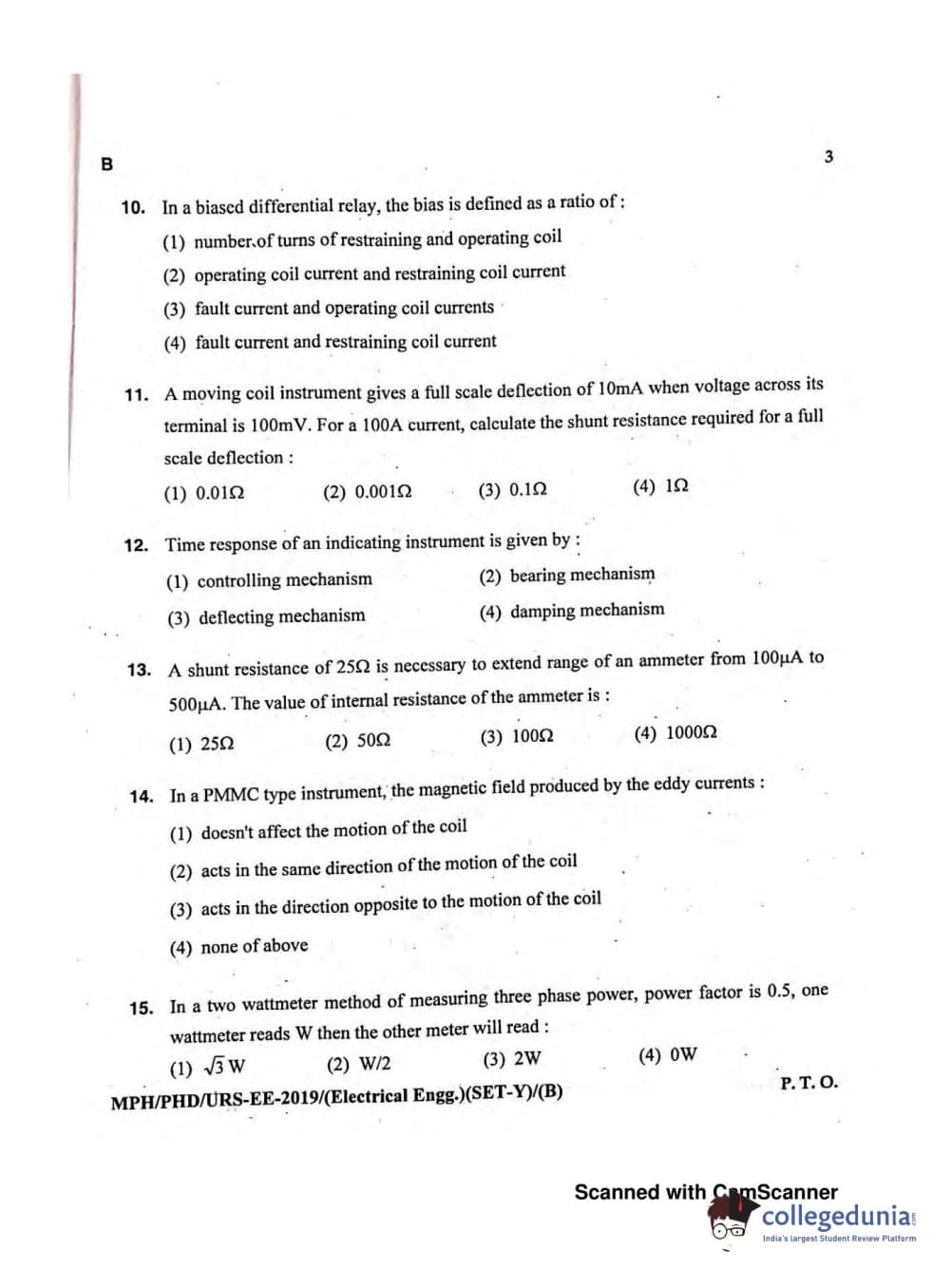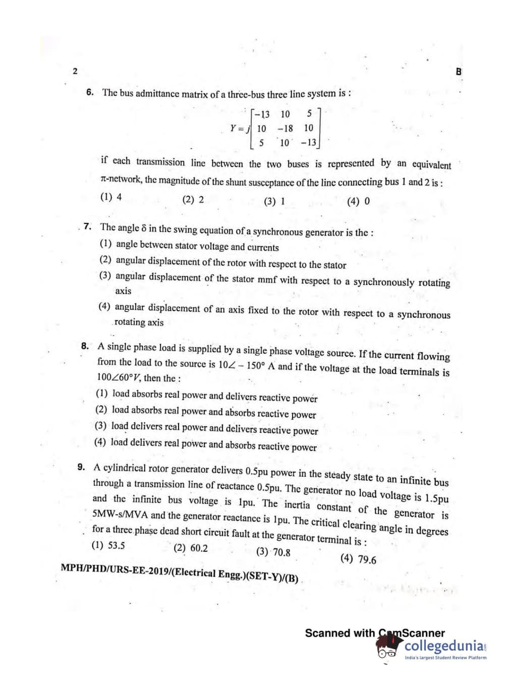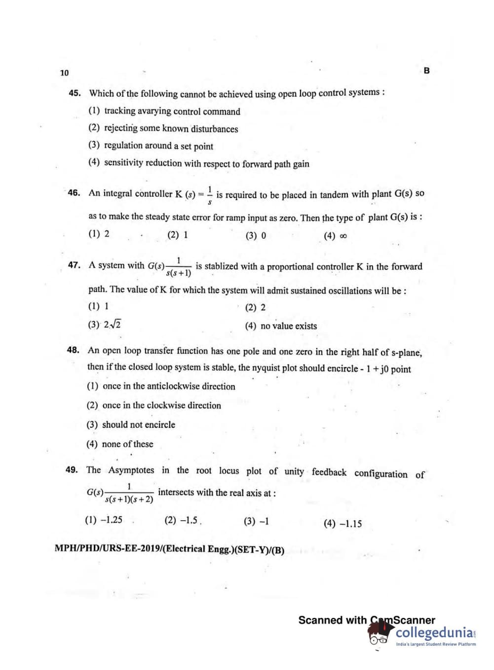 MDUCEE 2019 Ph.D./M.Phil./URS Electrical Engineering UIET Set B Question Paper with Answer Key PDFs