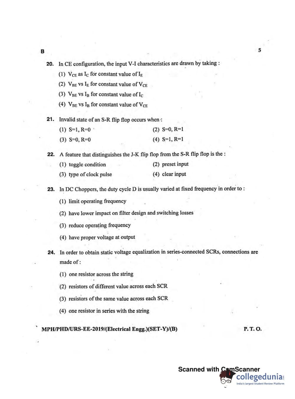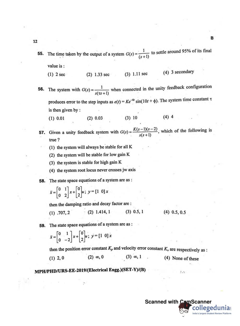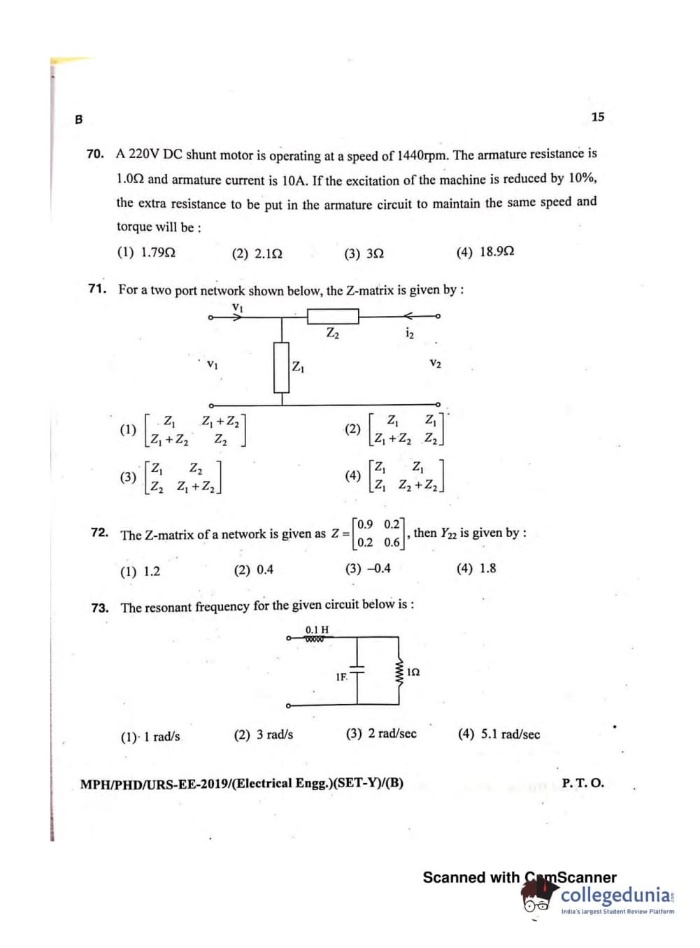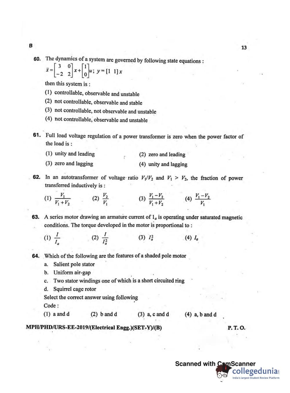 MDUCEE 2019 Ph.D./M.Phil./URS Electrical Engineering UIET Set B Question Paper with Answer Key PDFs