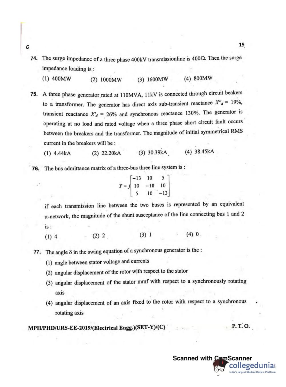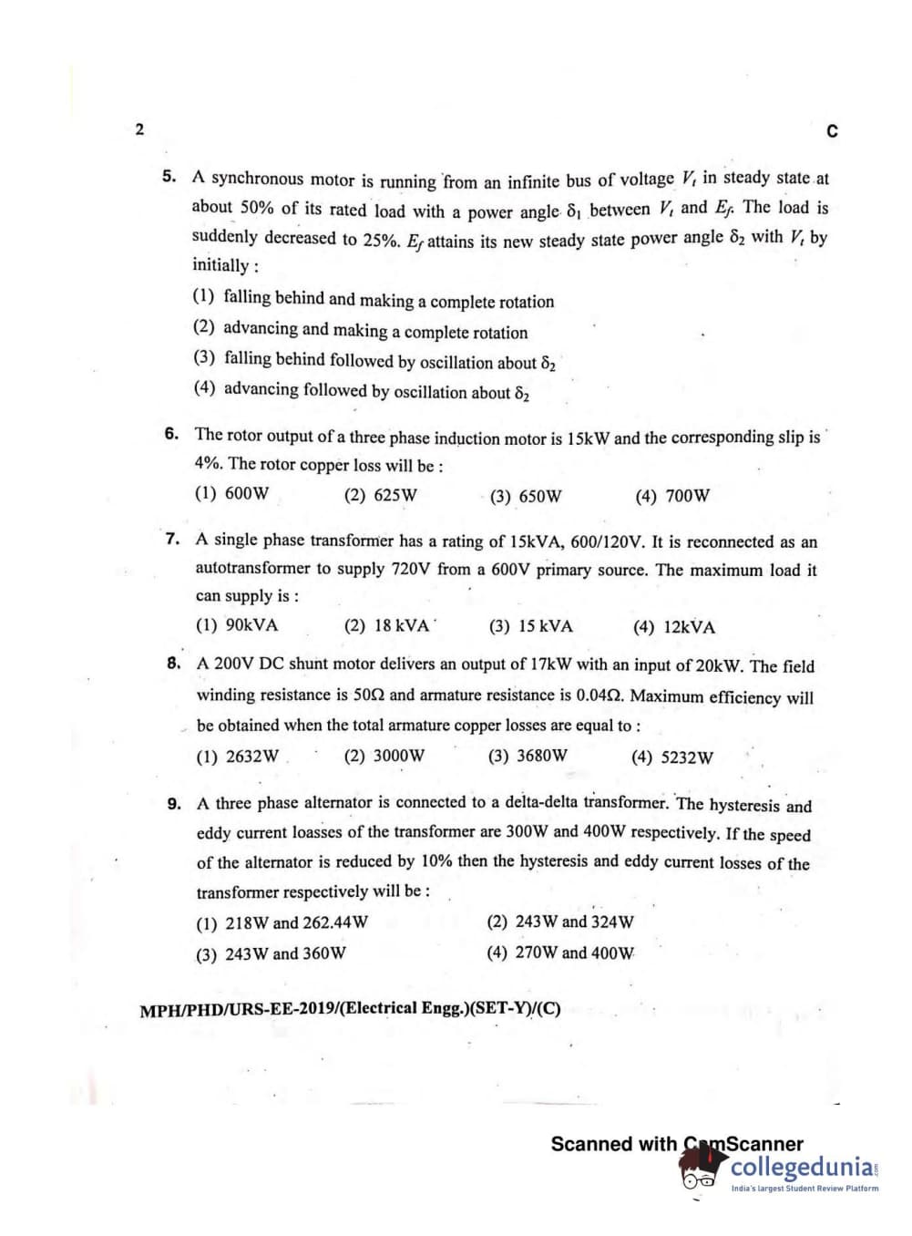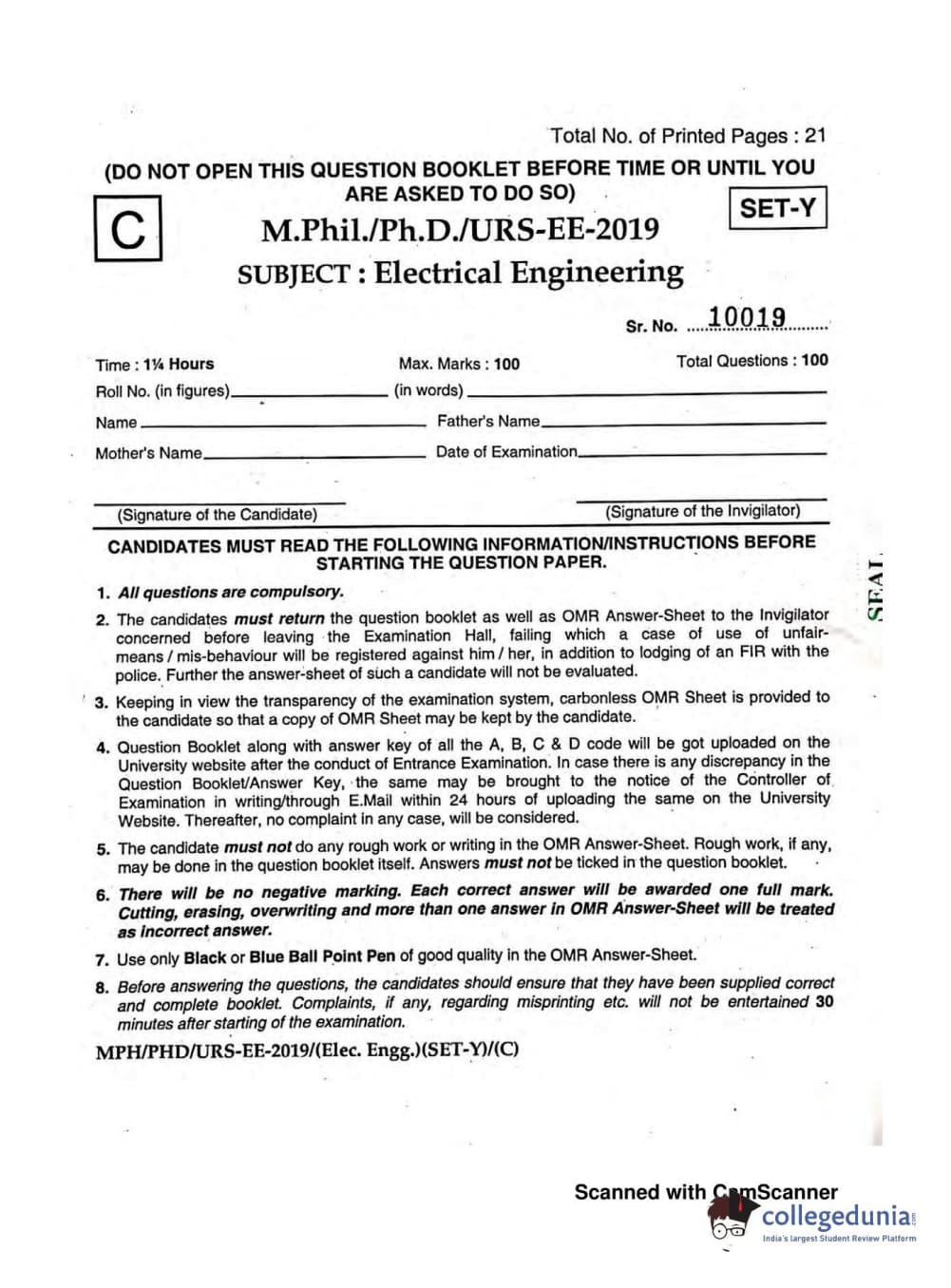 | MDUCEE 2019 Ph.D./M.Phil./URS Electrical Engineering UIET Set C Question Paper PDF | MDUCEE 2019 Ph.D./M.Phil./URS Electrical Engineering UIET Set C Answer Key PDF |