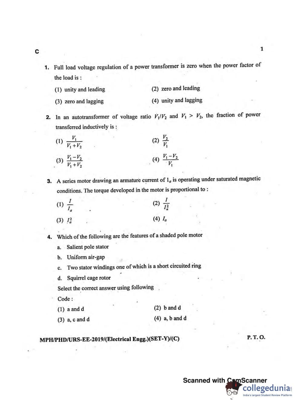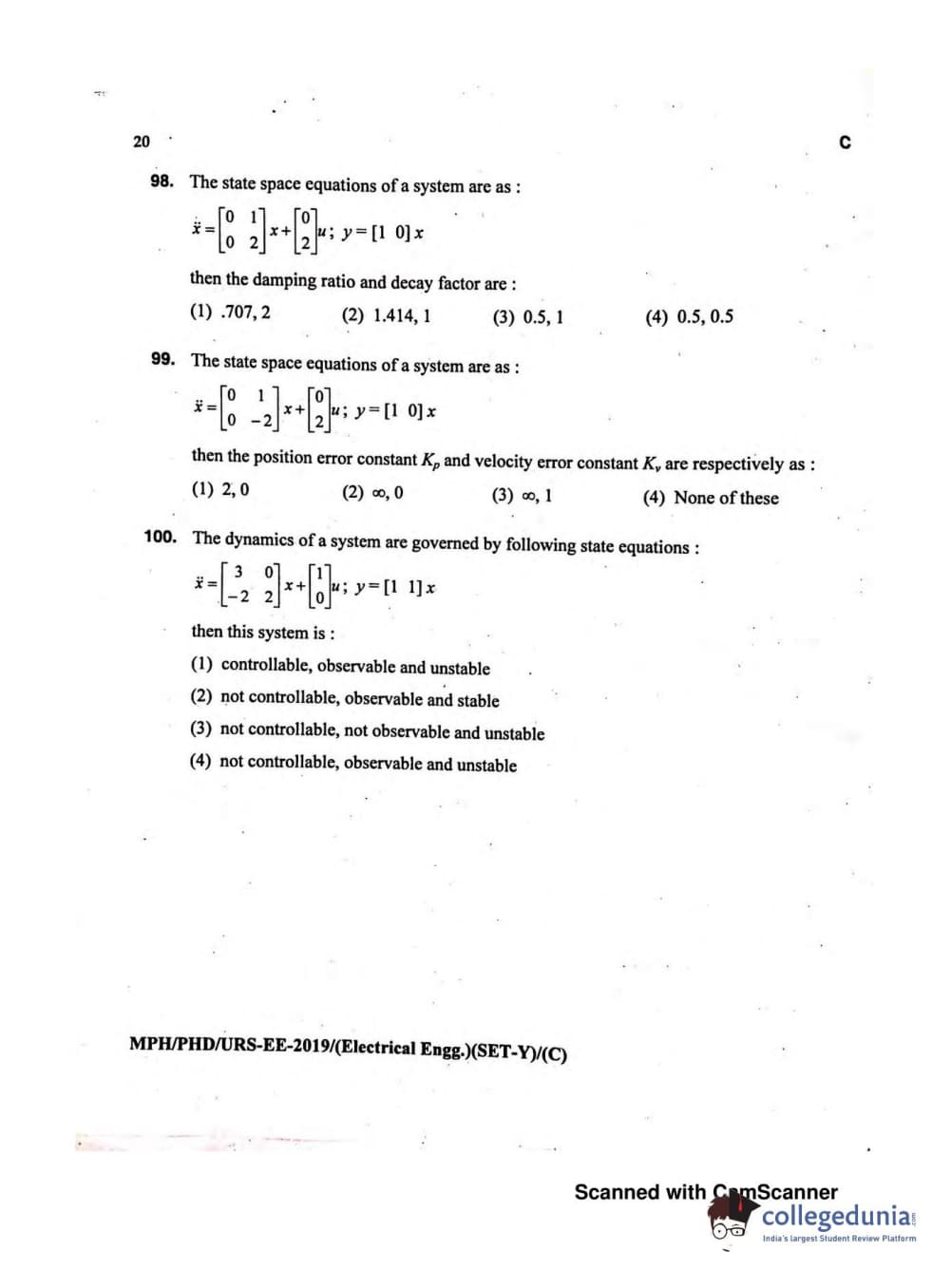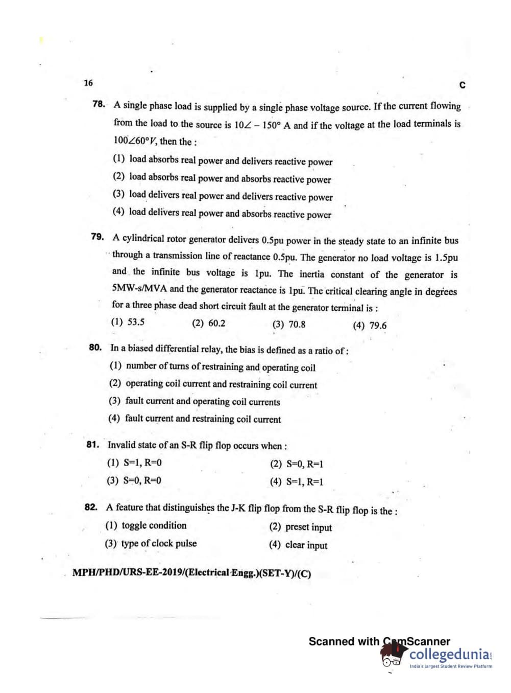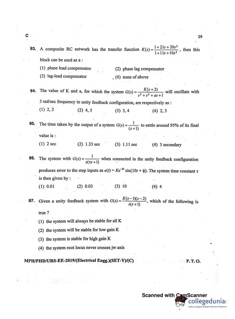 MDUCEE 2019 Ph.D./M.Phil./URS Electrical Engineering UIET Set C Question Paper with Answer Key PDFs