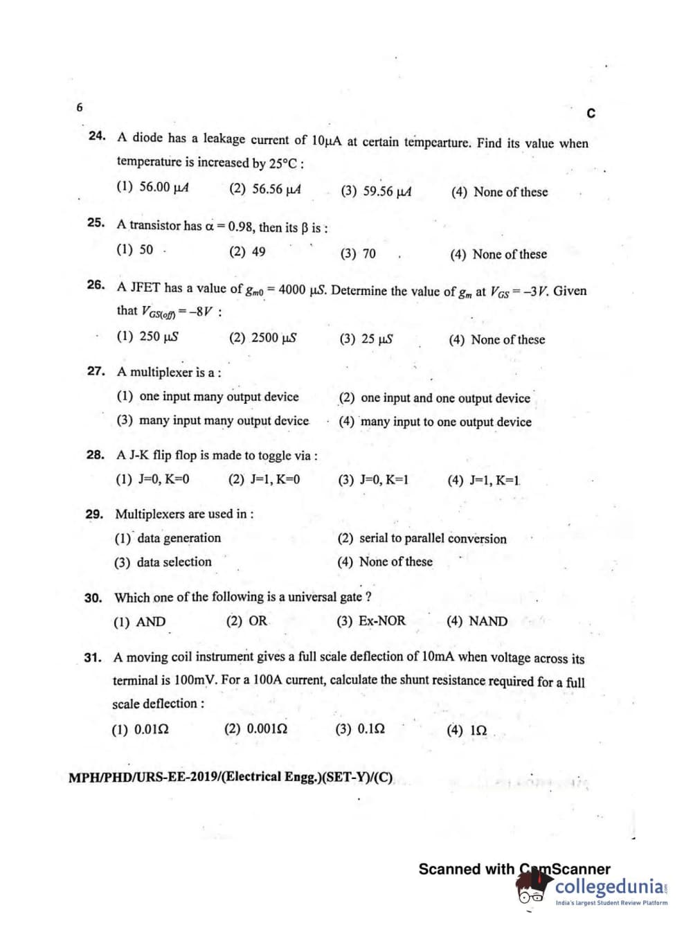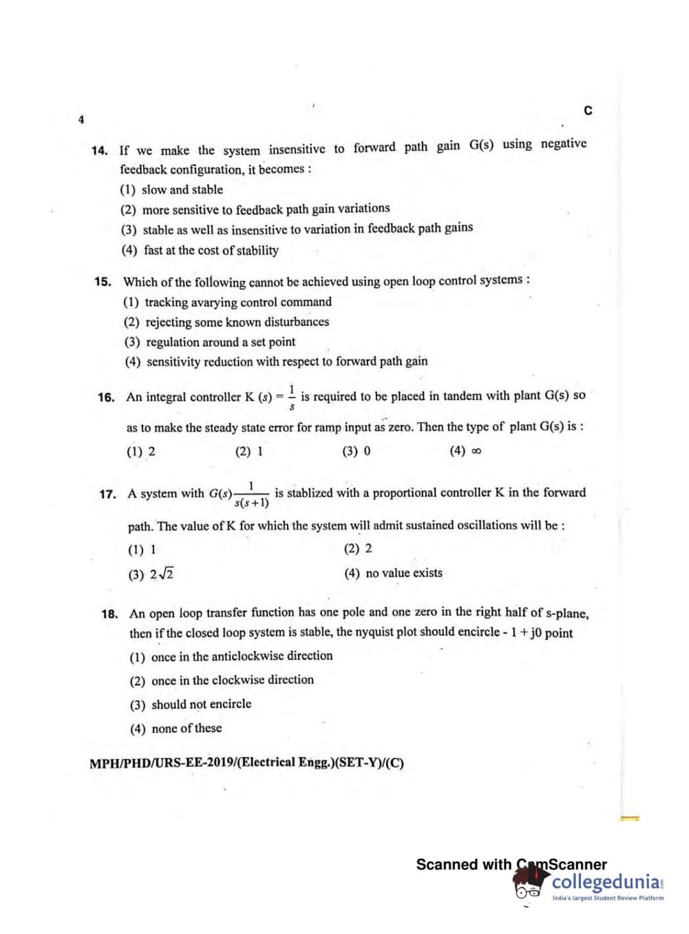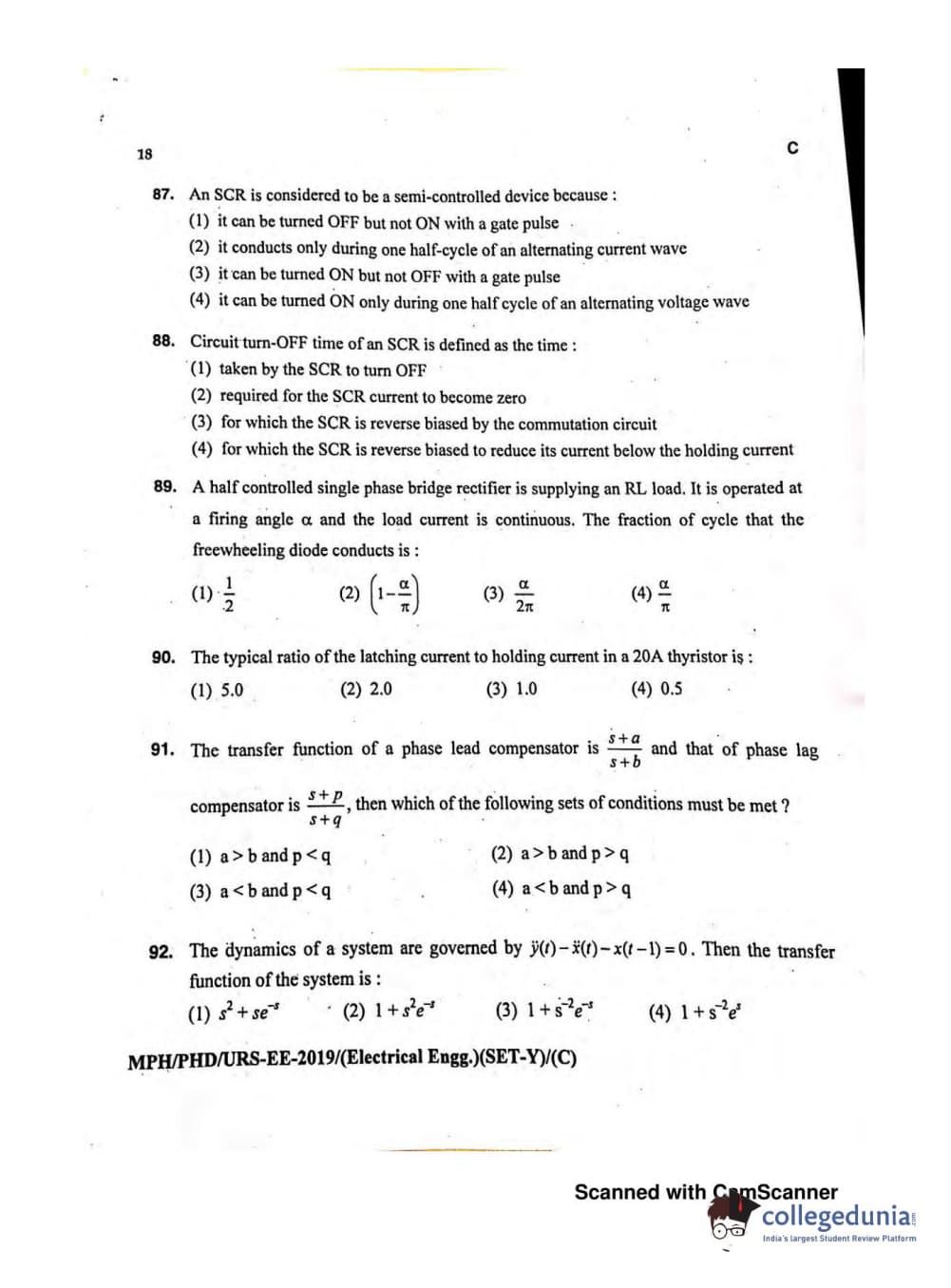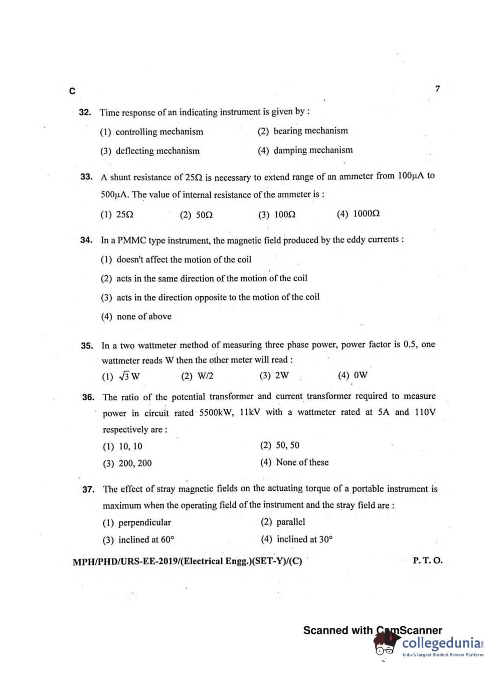 MDUCEE 2019 Ph.D./M.Phil./URS Electrical Engineering UIET Set C Question Paper with Answer Key PDFs