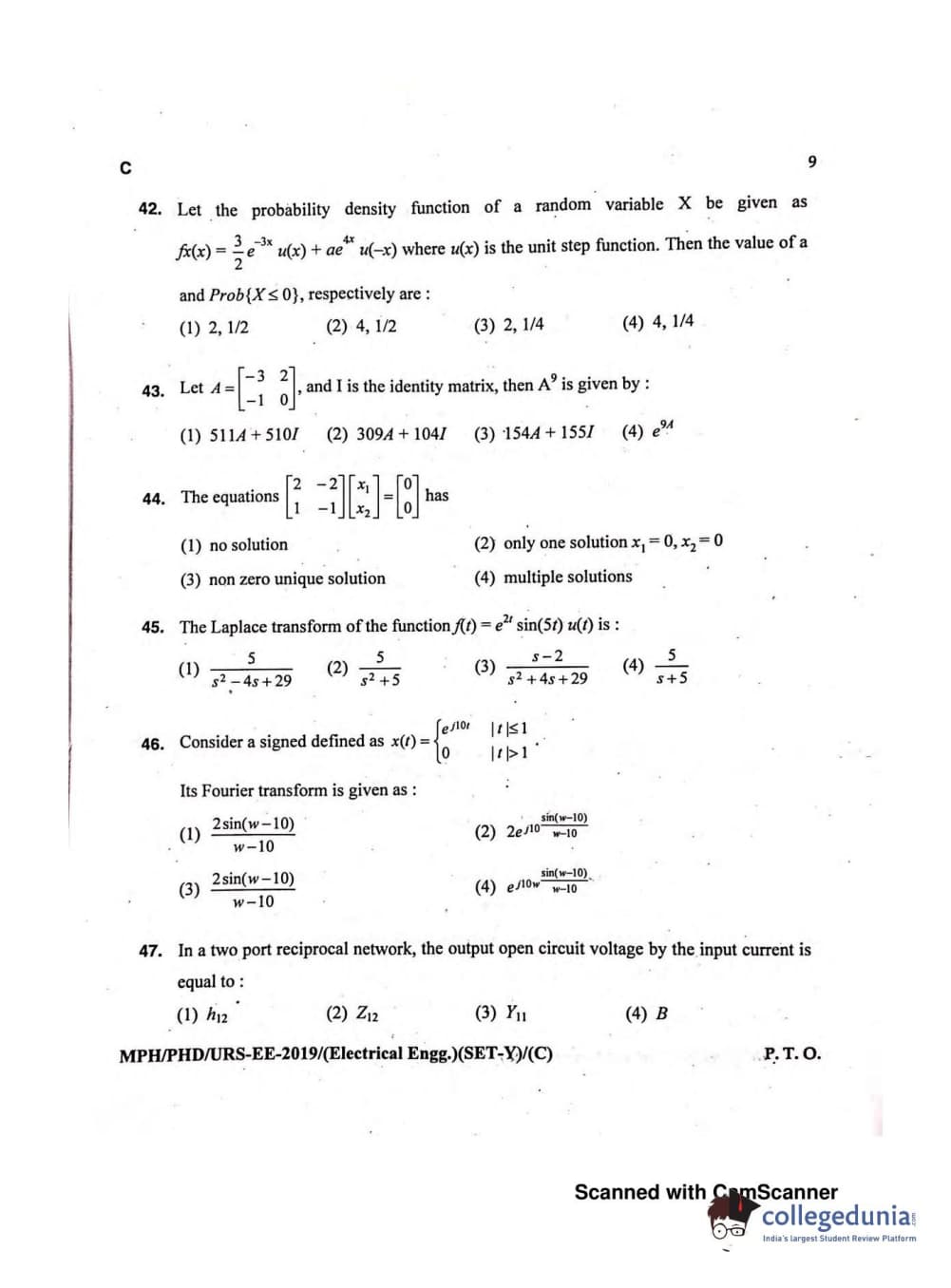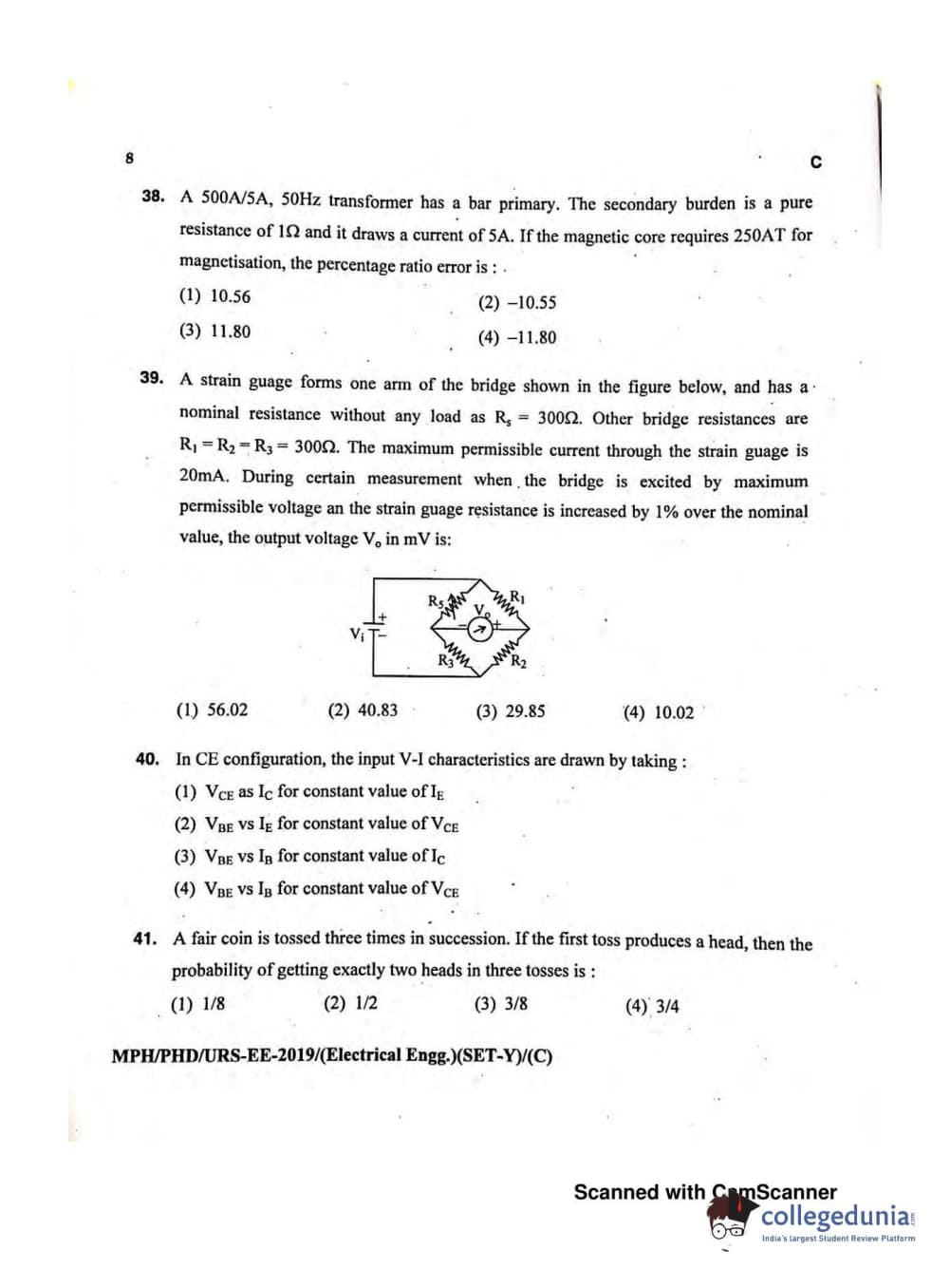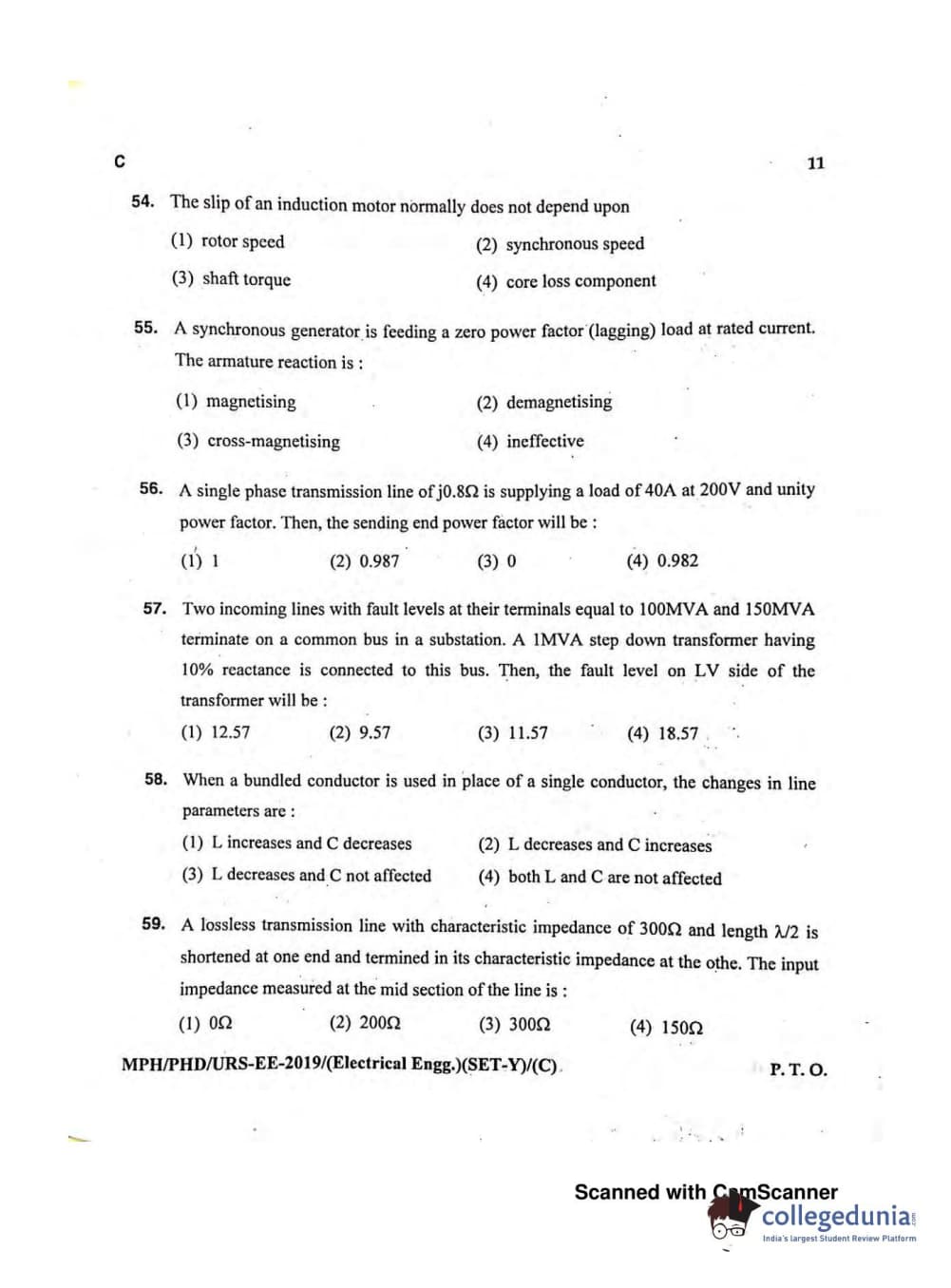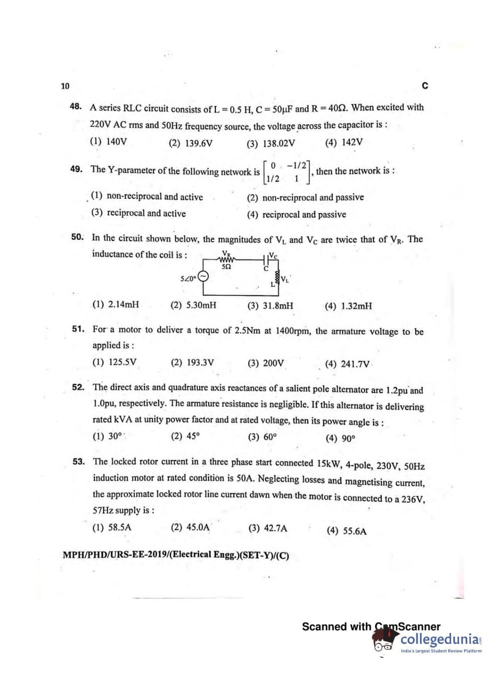 MDUCEE 2019 Ph.D./M.Phil./URS Electrical Engineering UIET Set C Question Paper with Answer Key PDFs