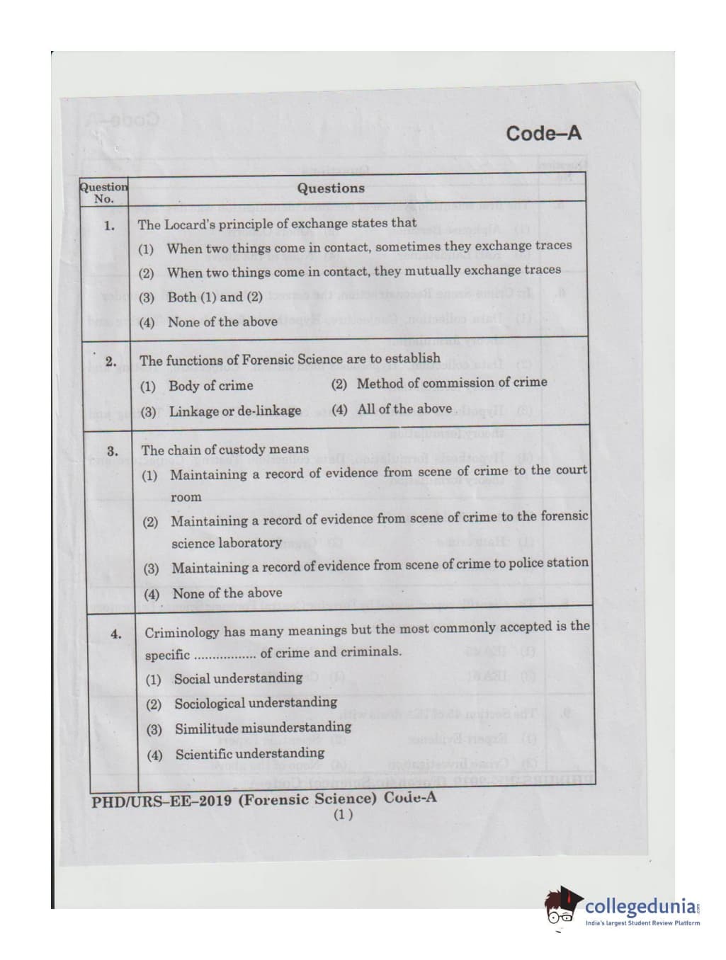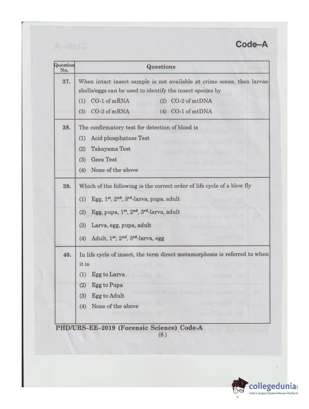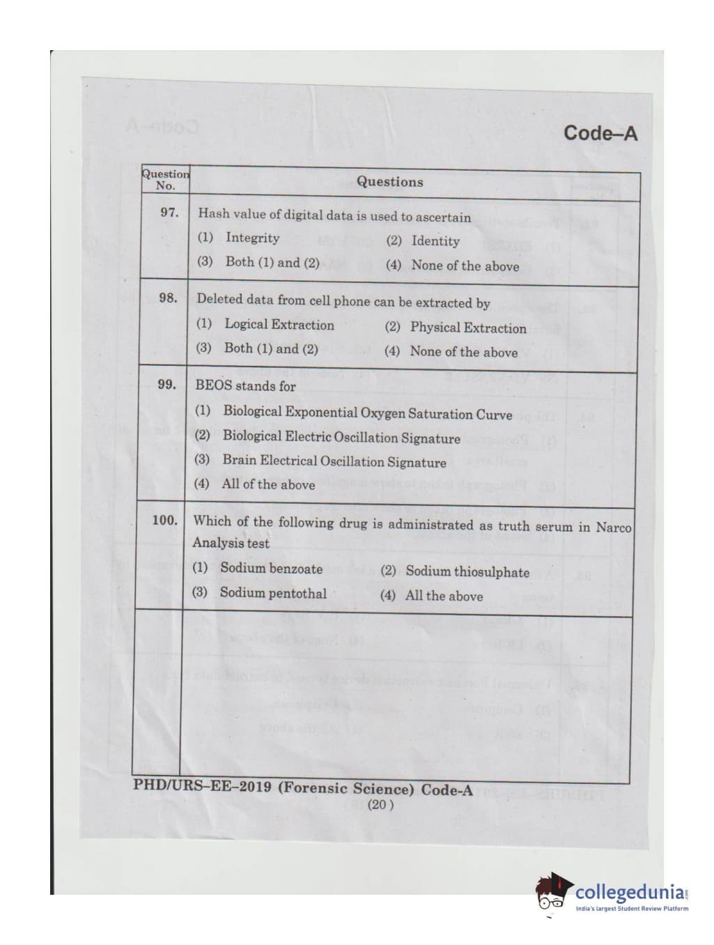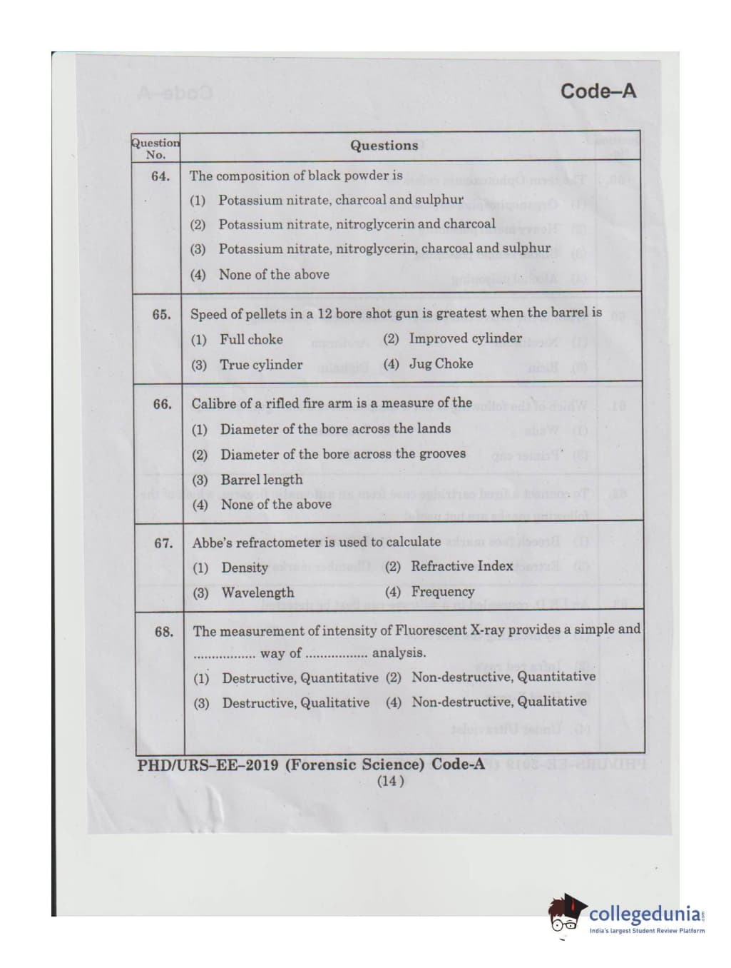 MDUCEE 2019 Ph.D./M.Phil./URS Forensic Science Set A Question Paper with Answer Key PDFs